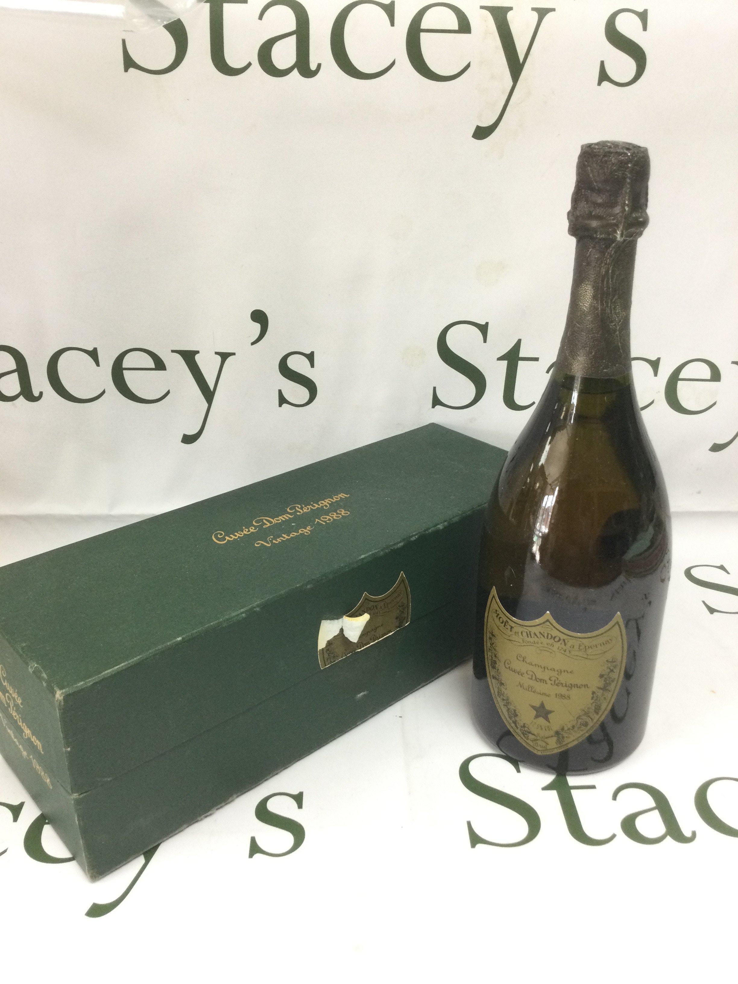 A boxed bottle of 1988 Dom Perignon. Shipping category D.