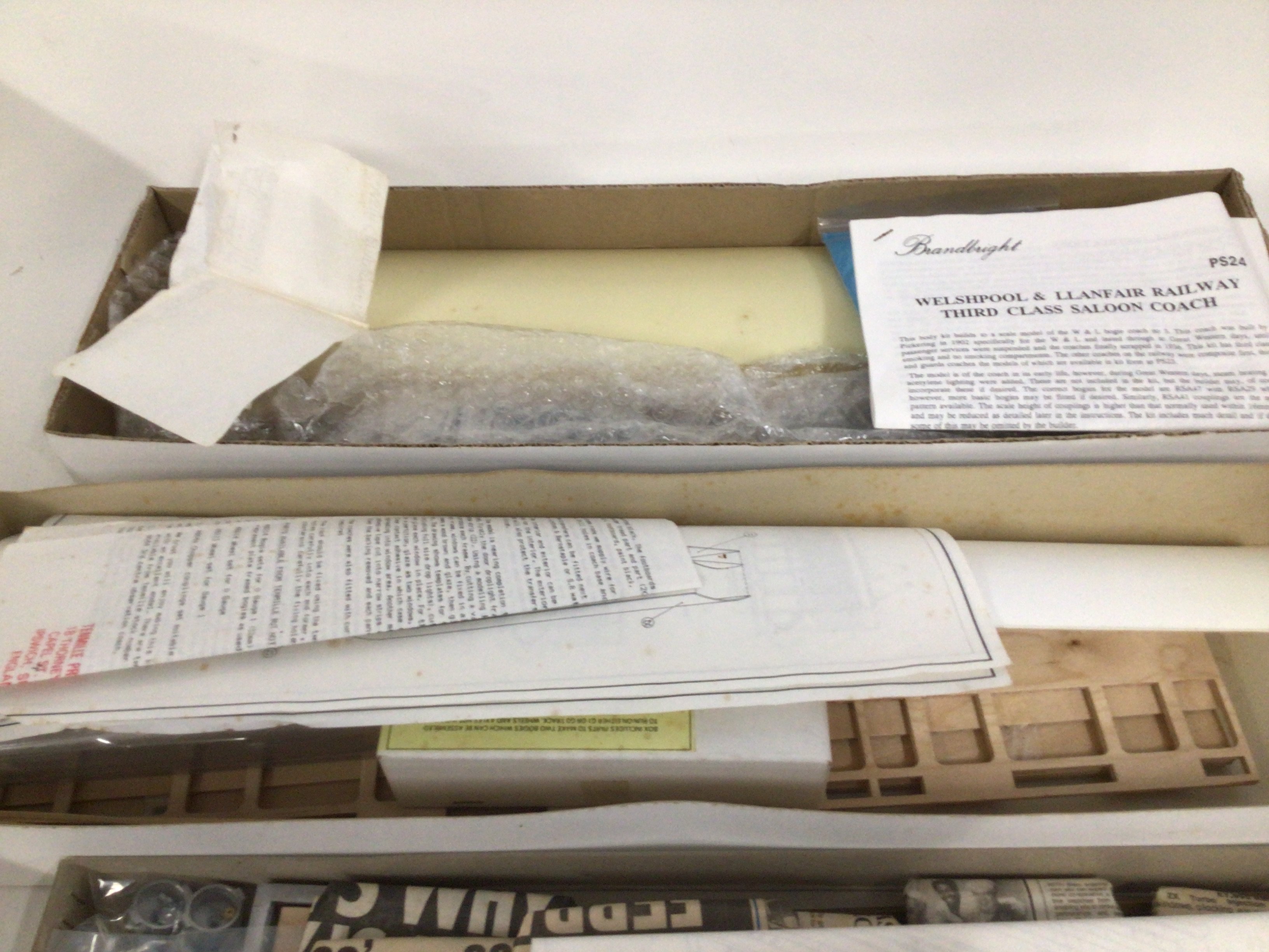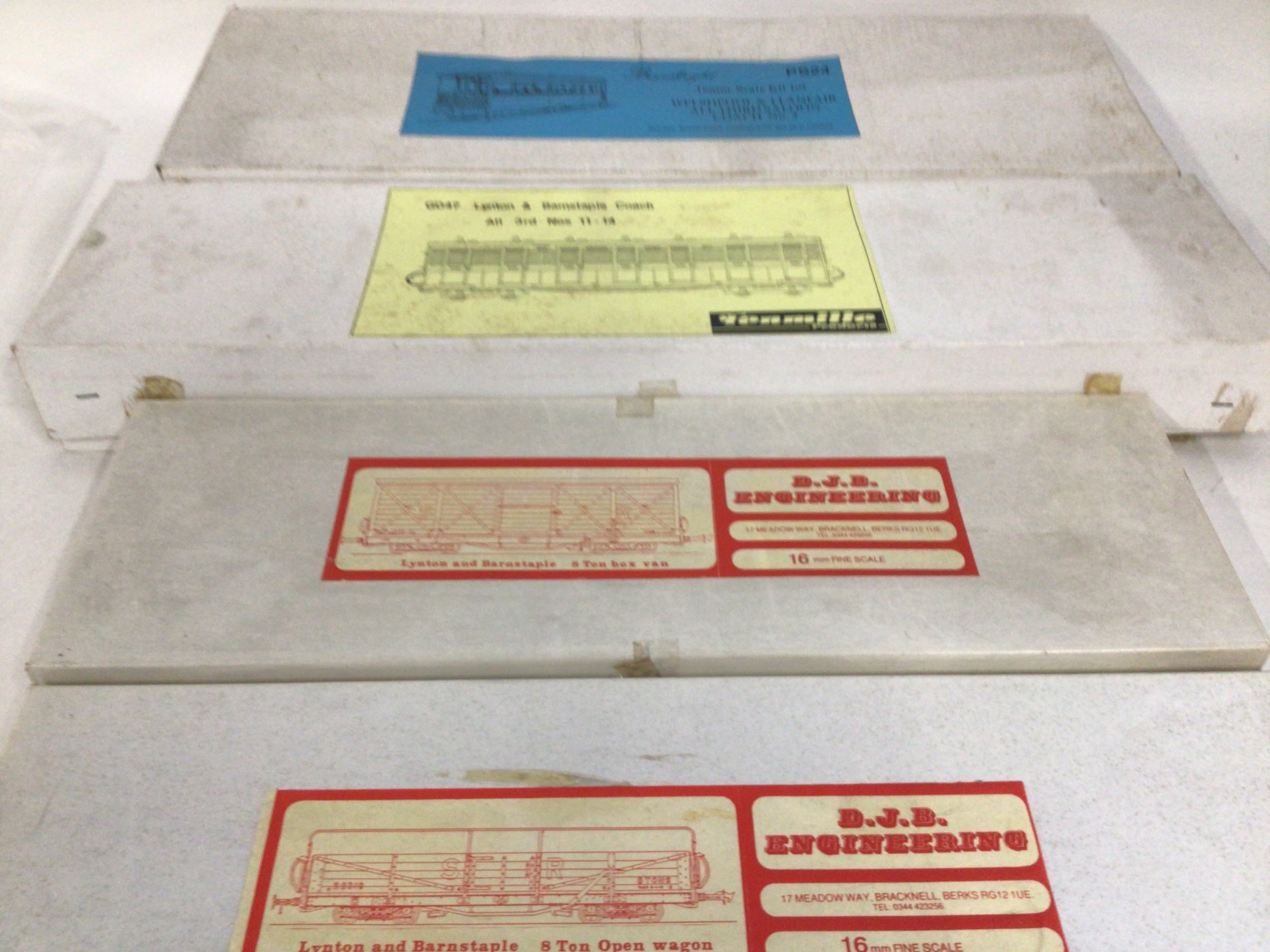 4x boxed wood plastic and metal model kits to make Railway Coaches and Wagons. Manufacturers are Tenmille..Bandlight D.J.B. All kits contain instructions. No reserve