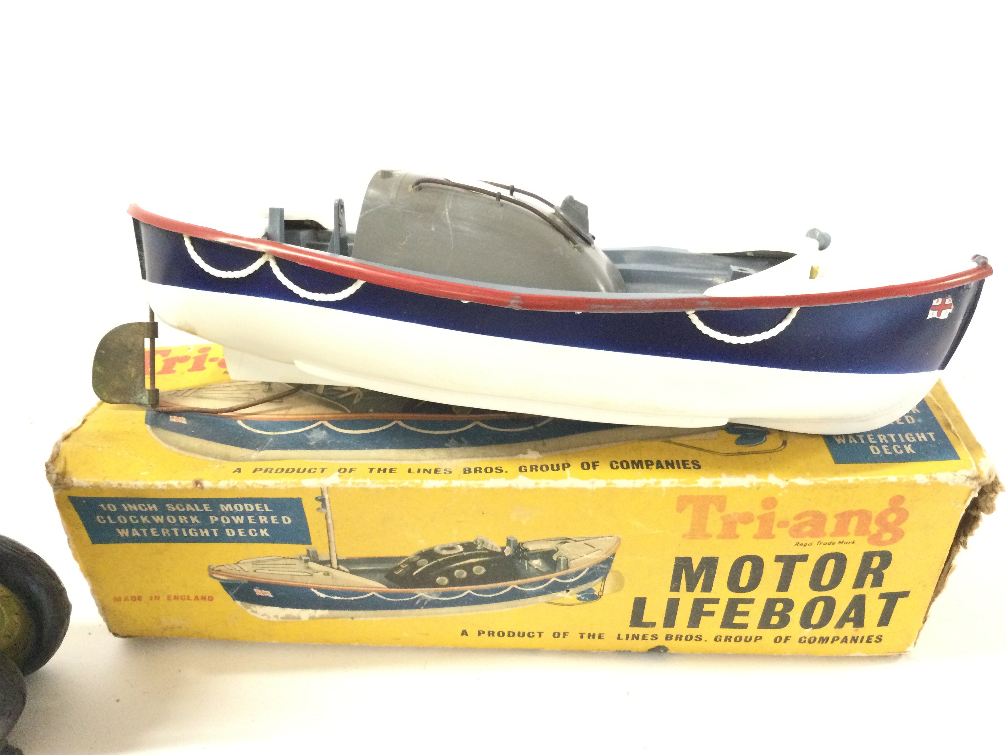 3 X Model Tractors And A Boxed Tri-Ang Lifeboat ( Parts Missing) No Reserve.