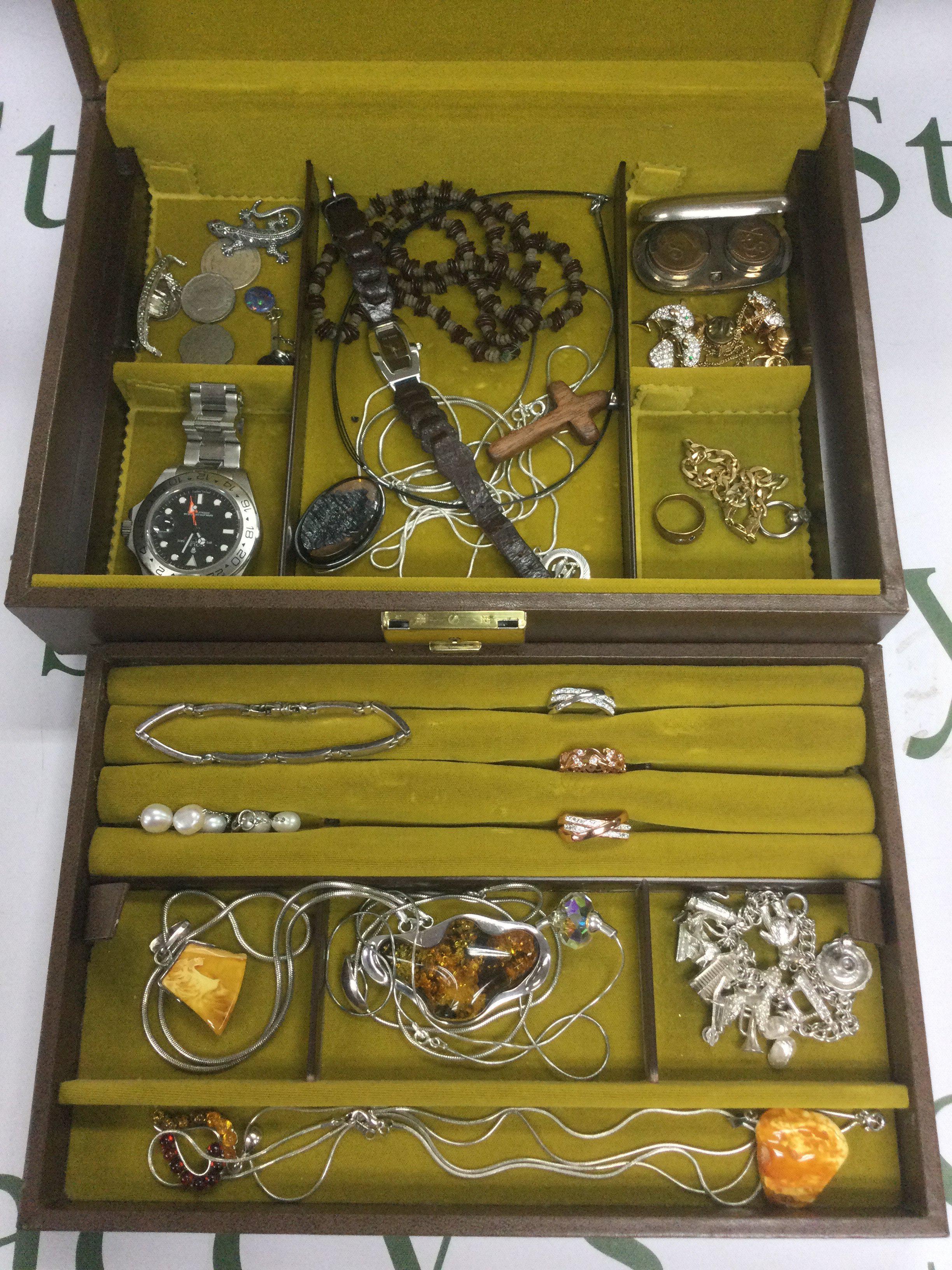 A jewellery box containing various costume jewellery items. Shipping category B.
