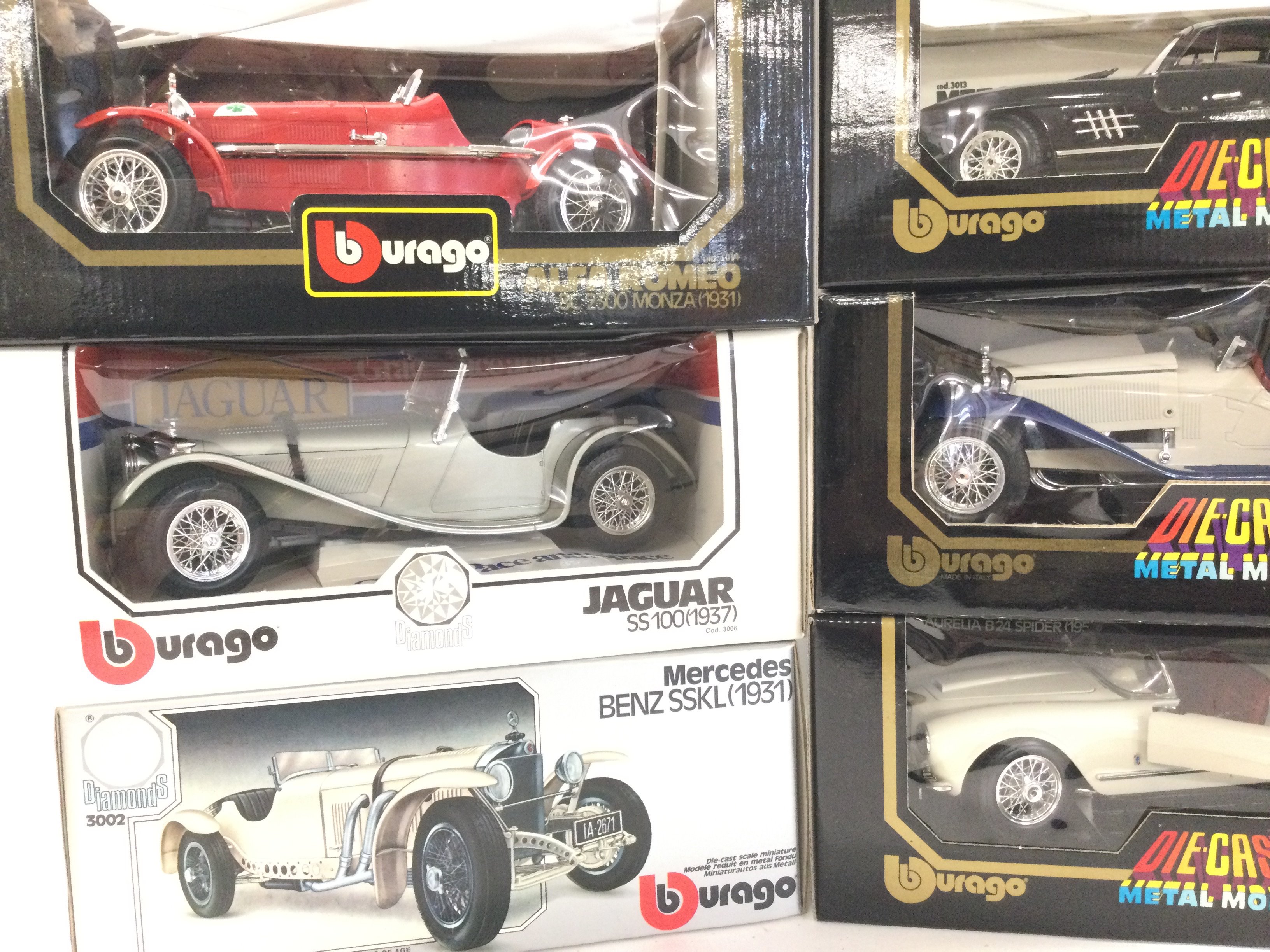 A Collection of 6 Boxed Burago Diecast Cars 1/18 Scale.