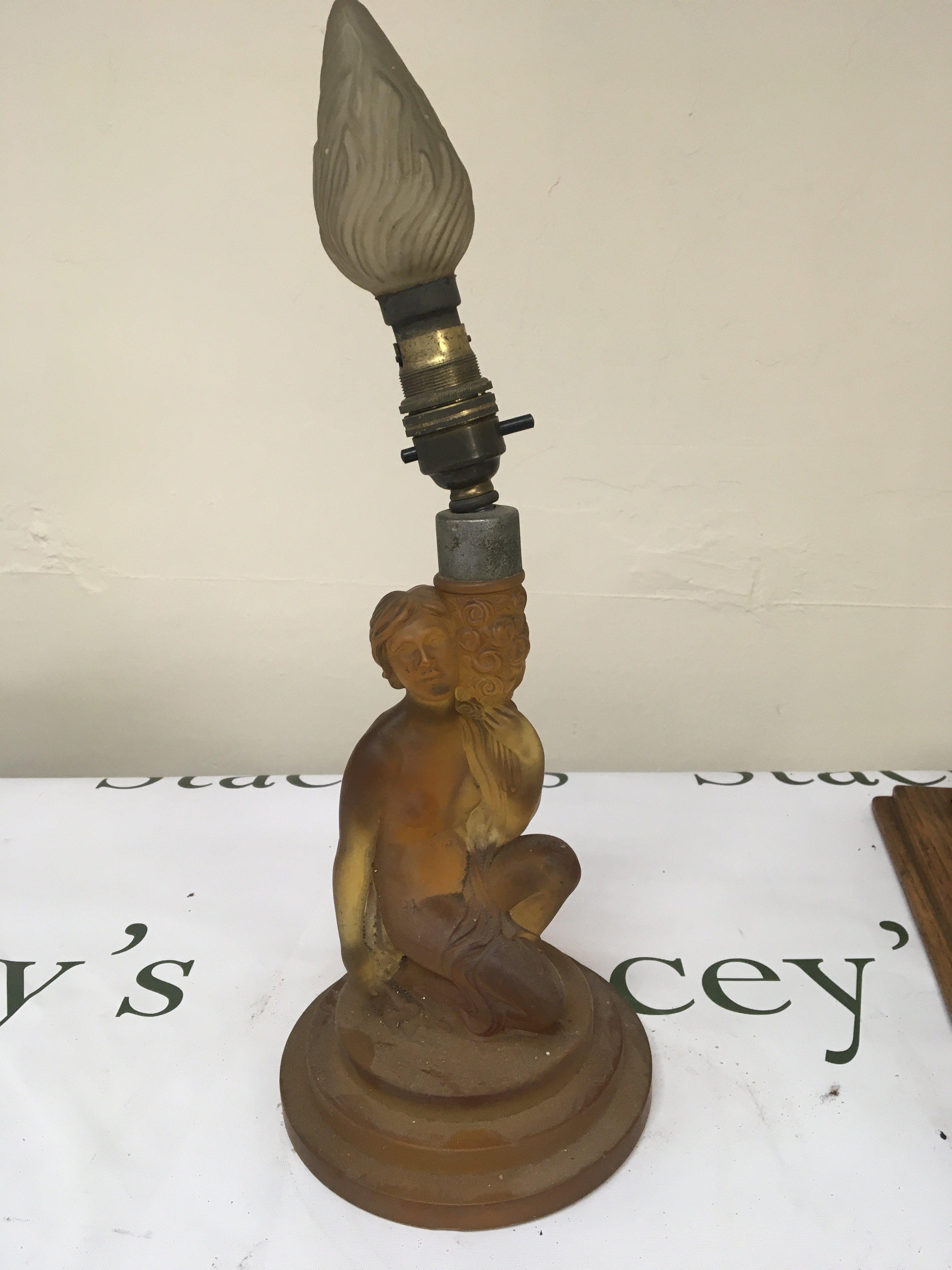 A moulded coloured glass table lamp in the form of a female figure Hight 40cm no shade.