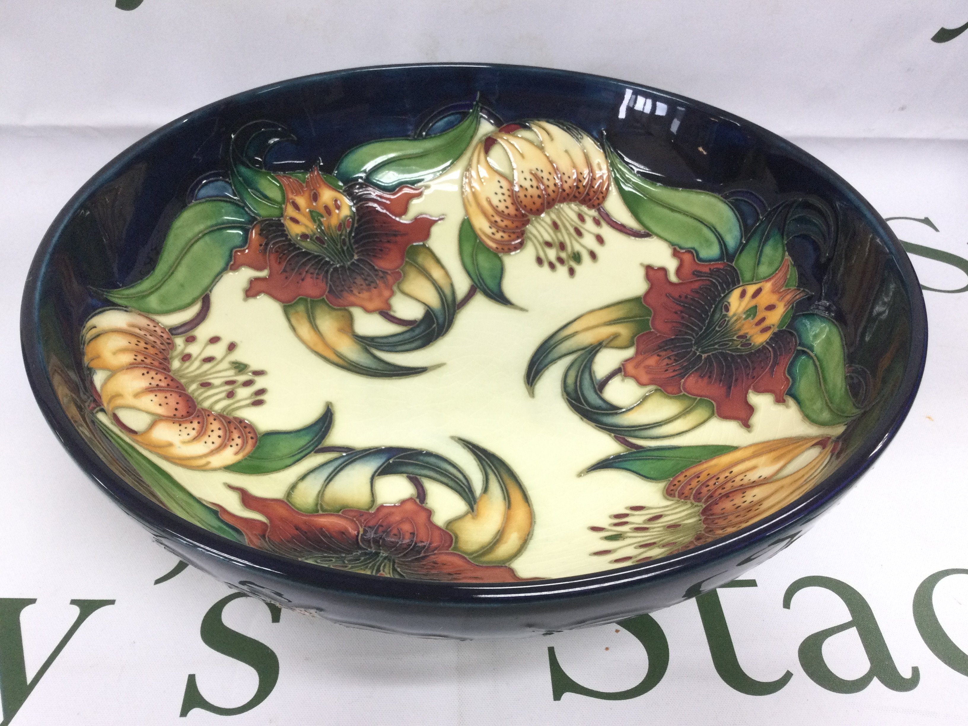 A Moorcroft bowl in Anna Lily pattern designed by Nicola Slaney, approx diameter 26cm. Shipping category D.