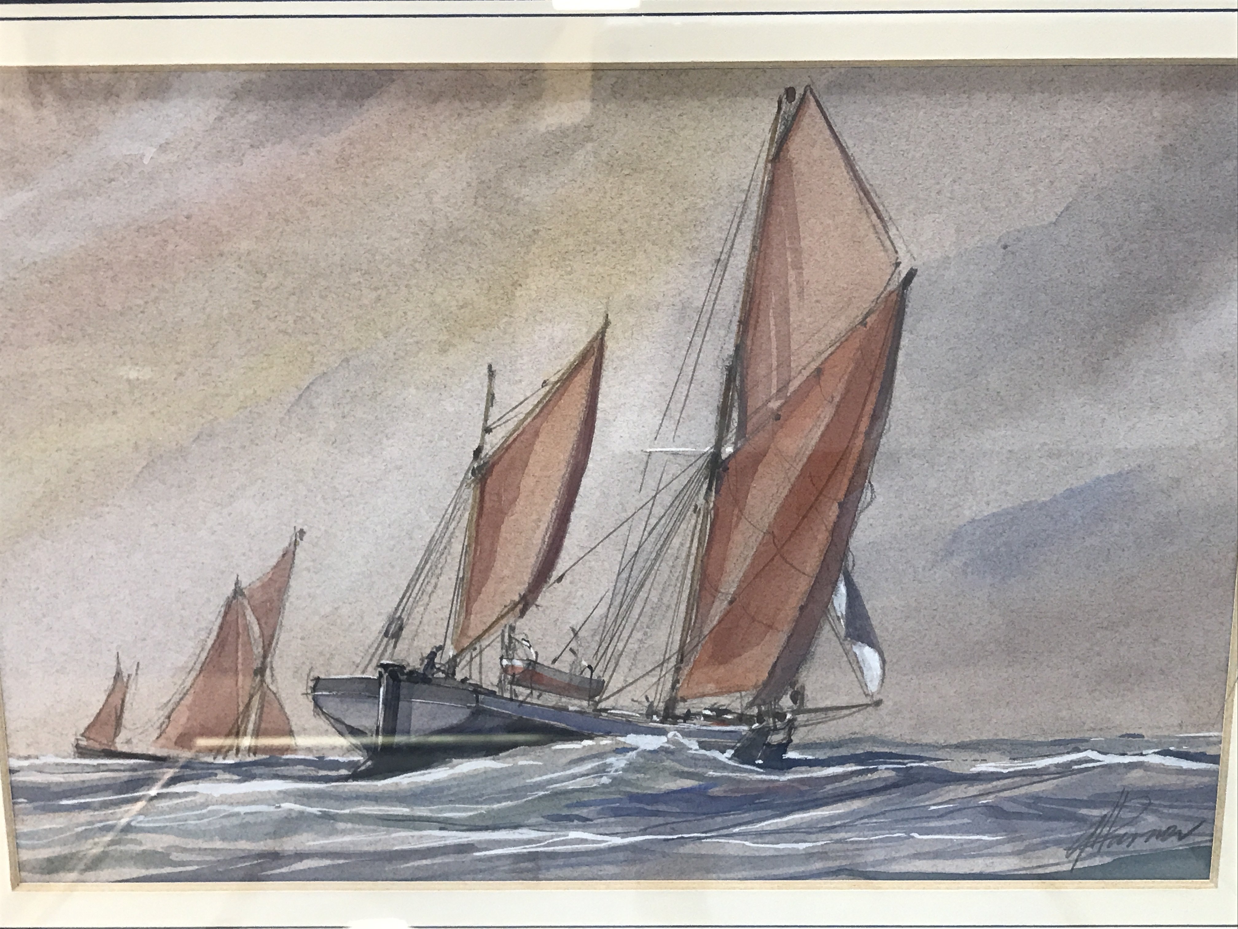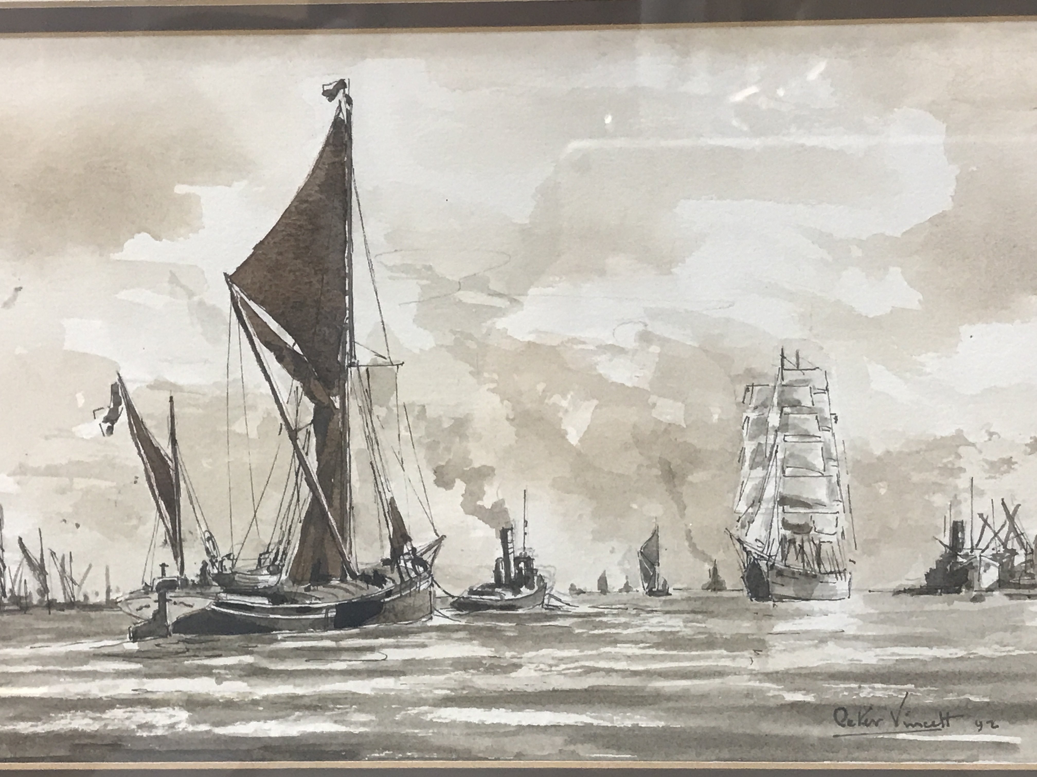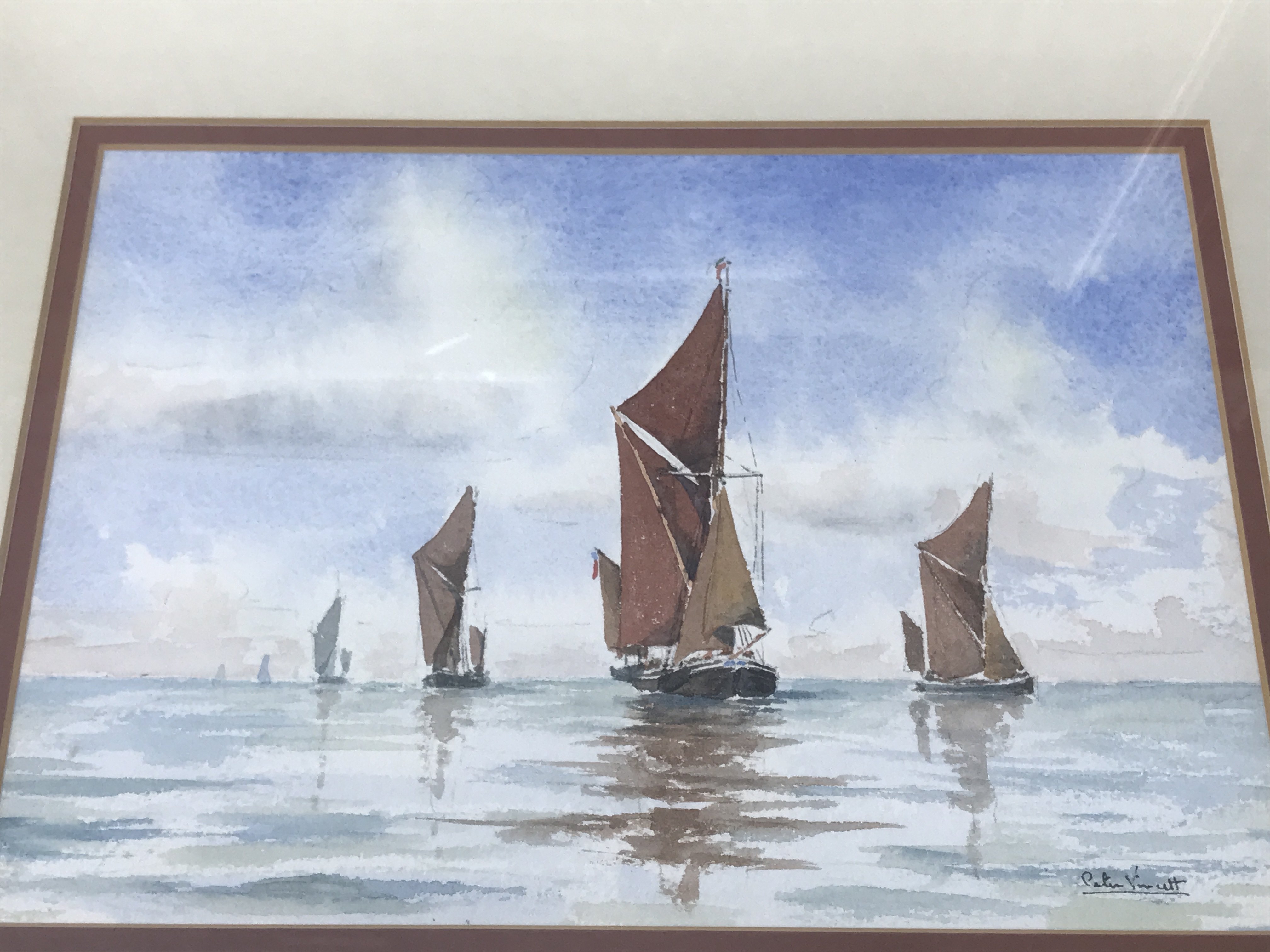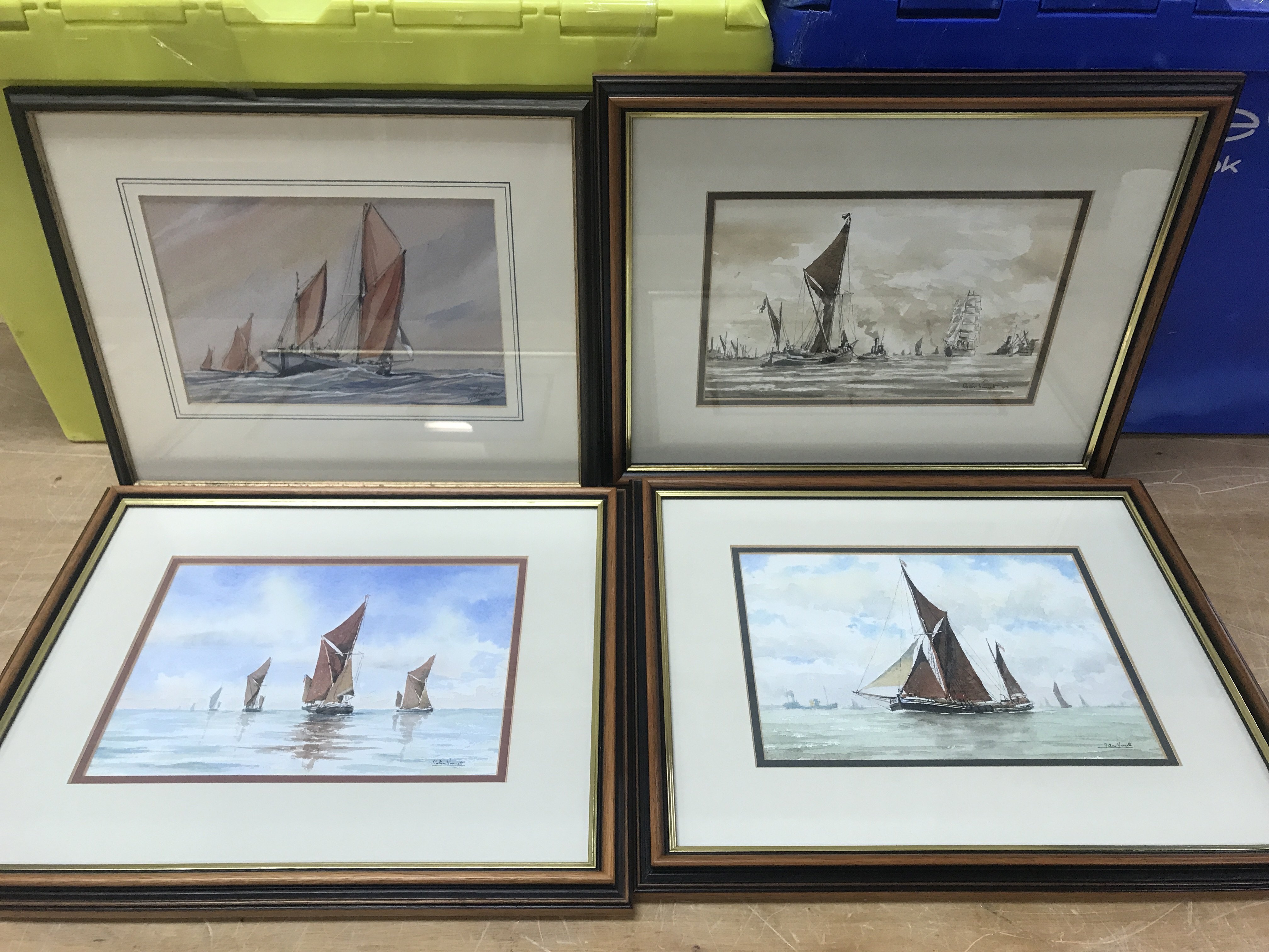 Four framed watercolours by local Essex artists Peter Vincent and others .