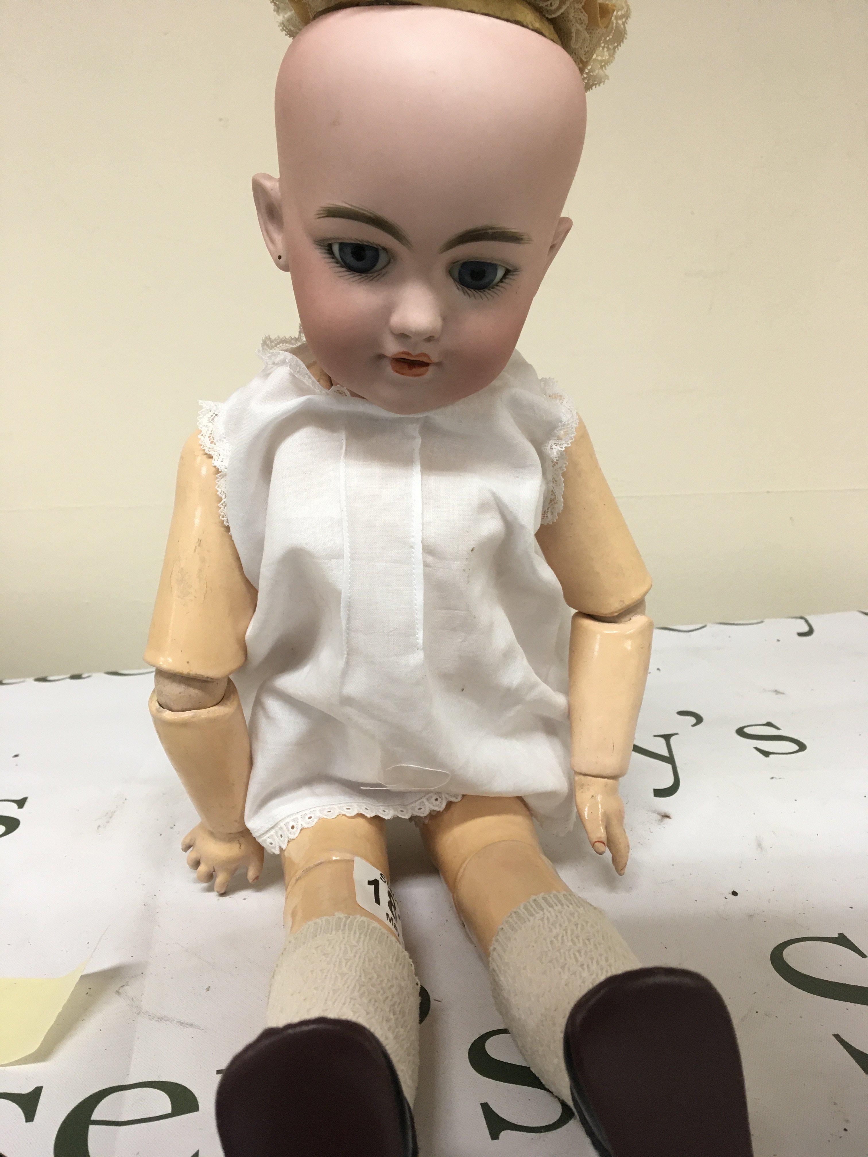 A German early 20th Century bisque head doll with double composition body maker Simon Halibig.