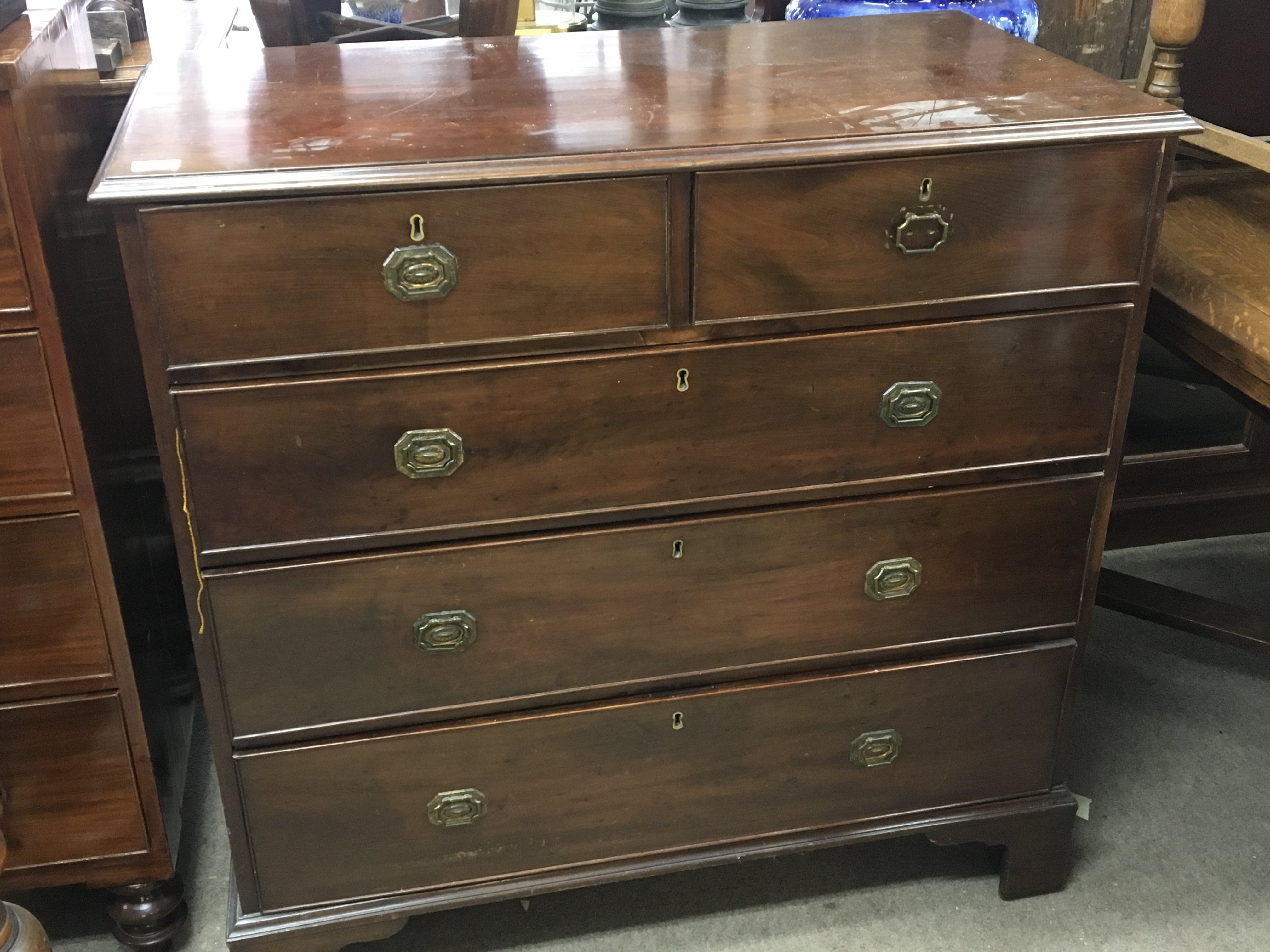 A late George III mahogany chest of drawers fitted with two short and three long drawers.