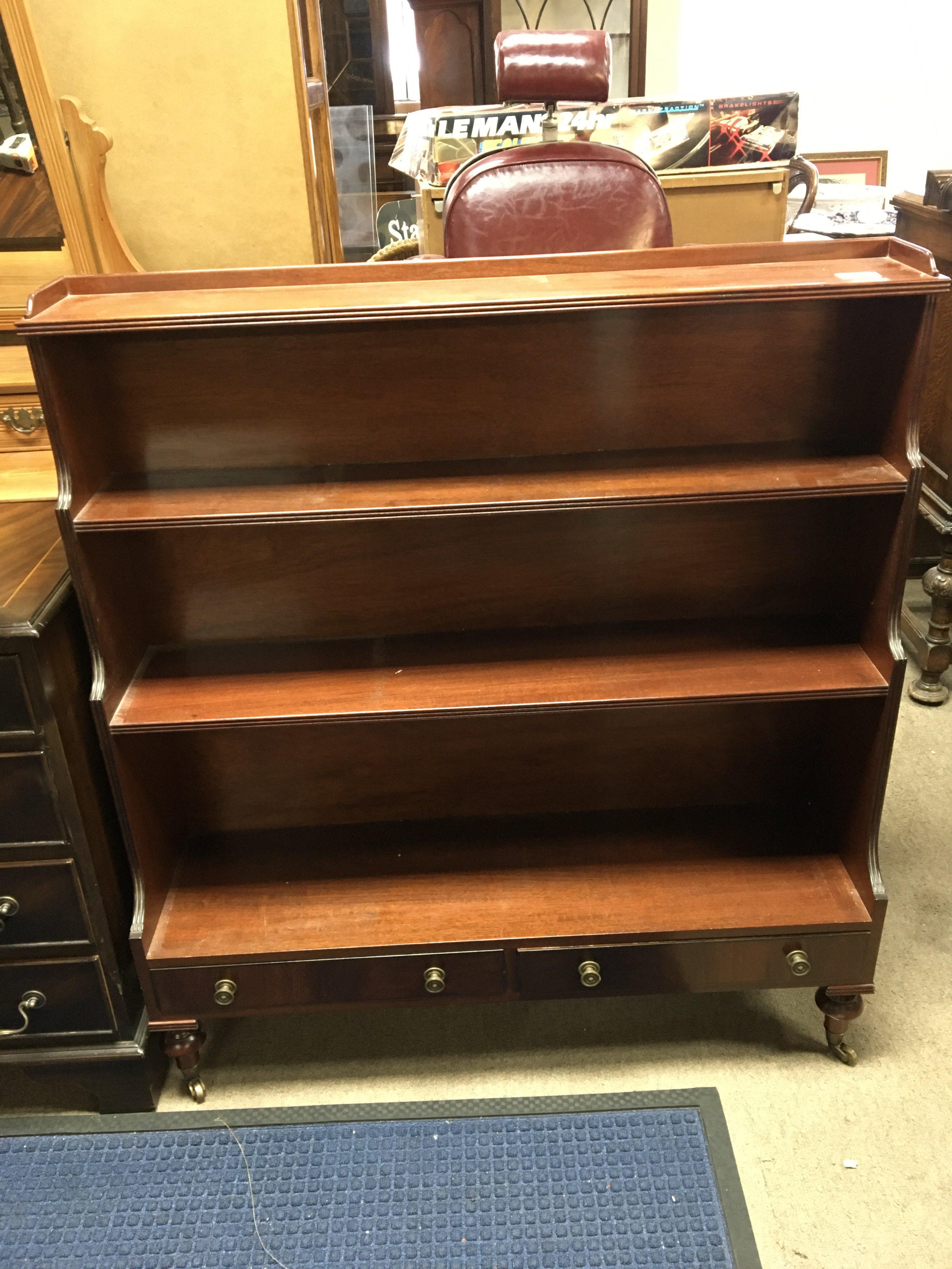A Mahogany bookcase with open shelves above two drawers. Width 95cm nice condition.