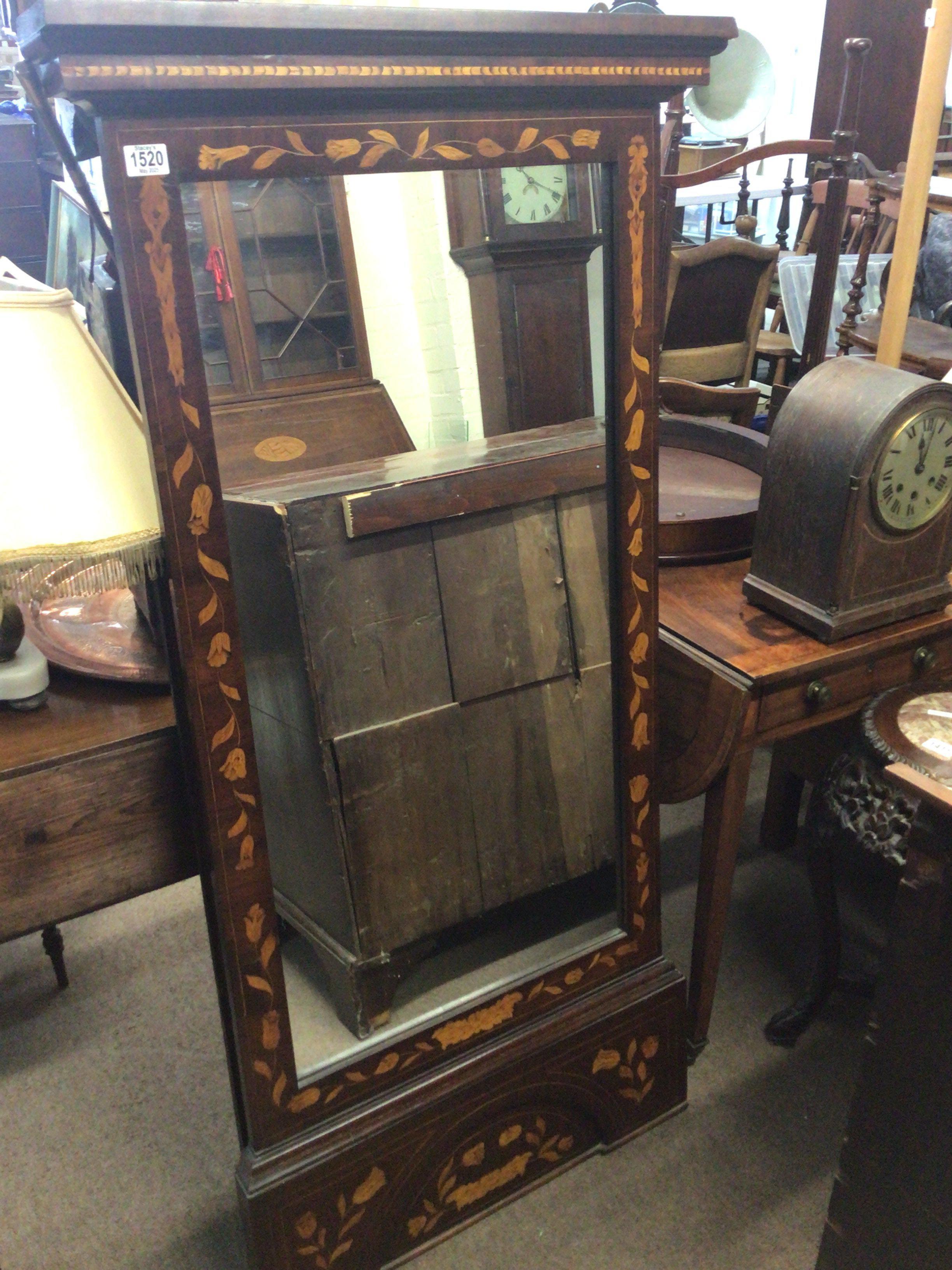 A late 19th century wall mirror with satin wood inlaid floral pattern. 74x 148cm