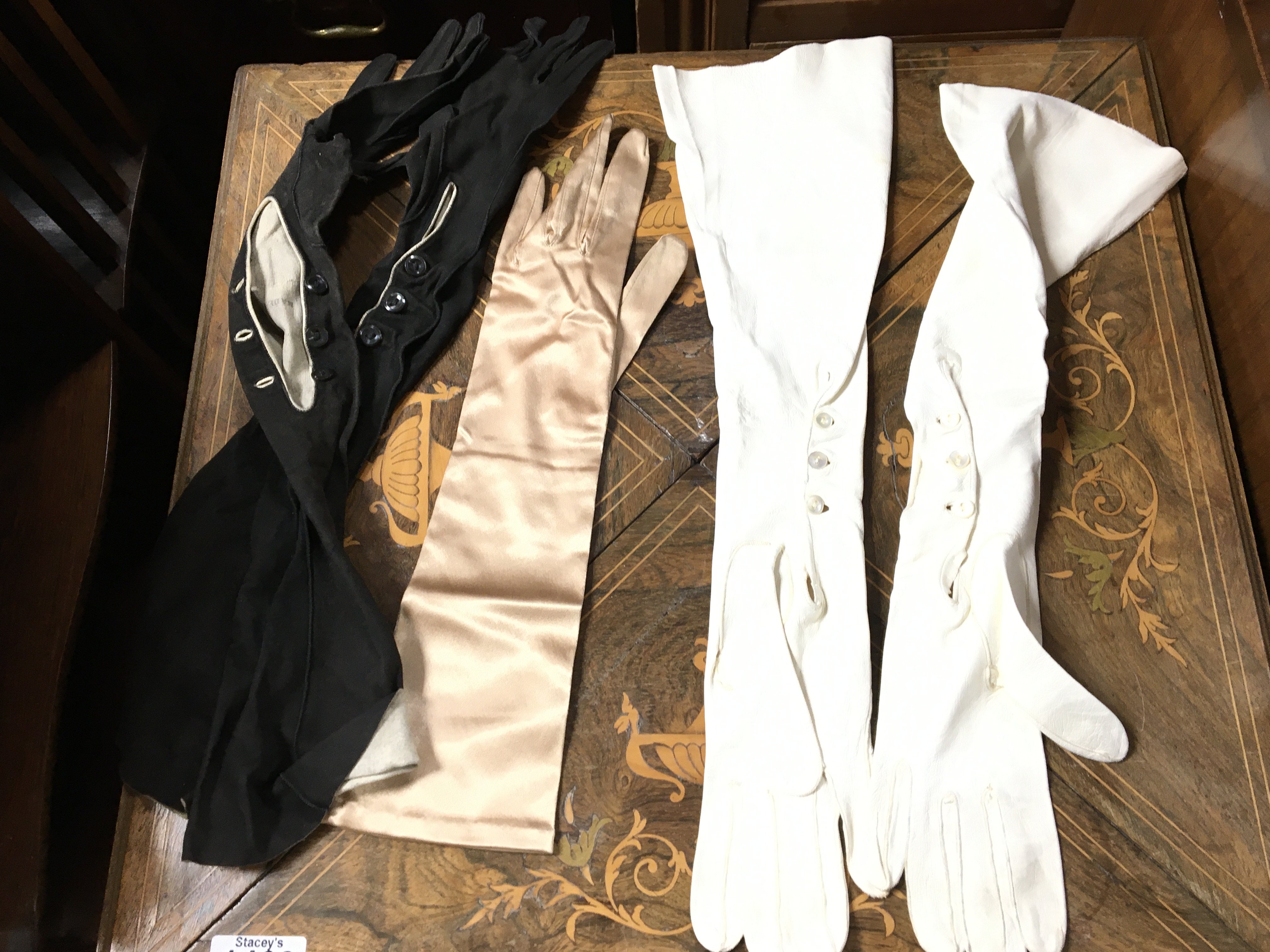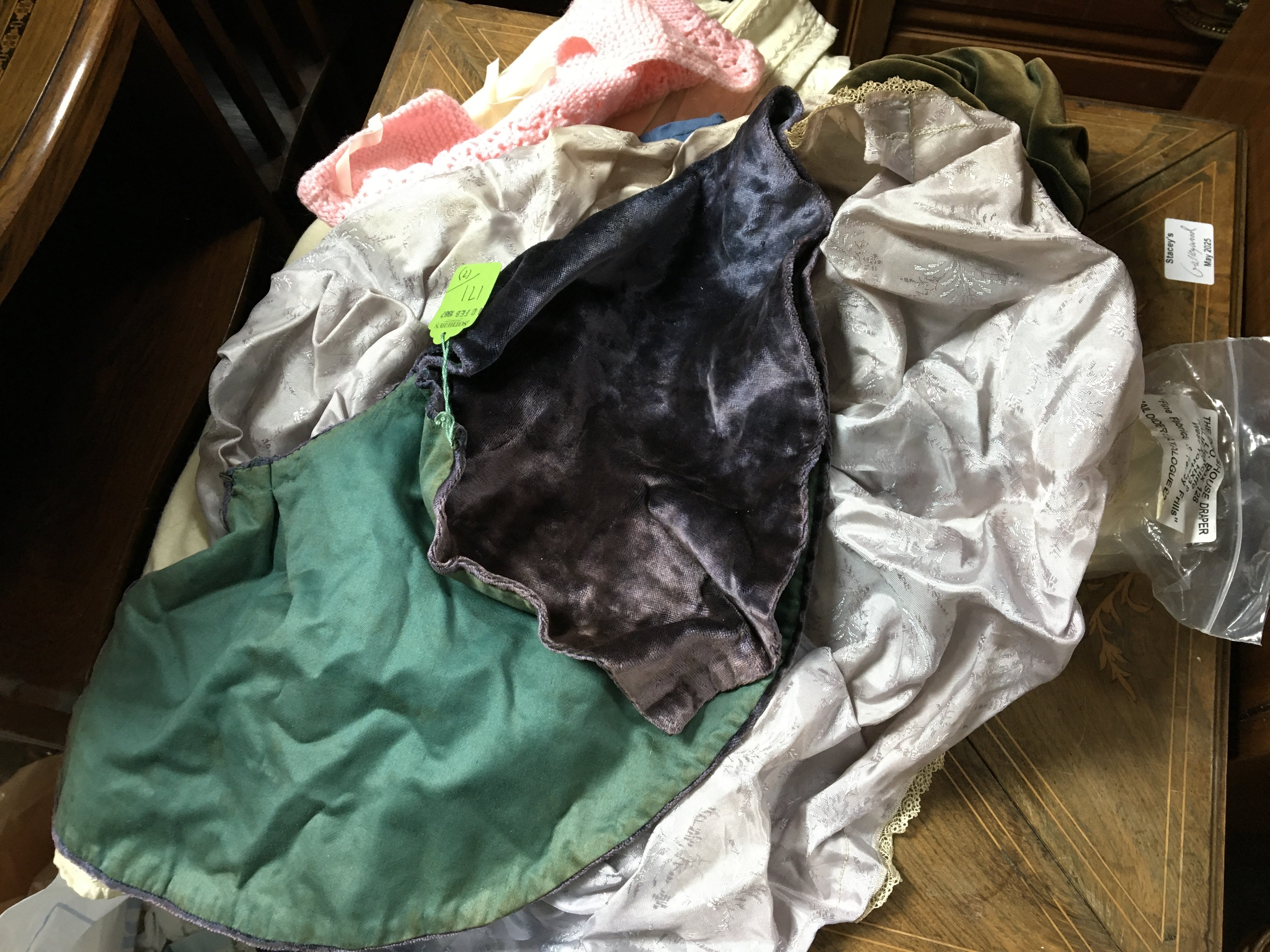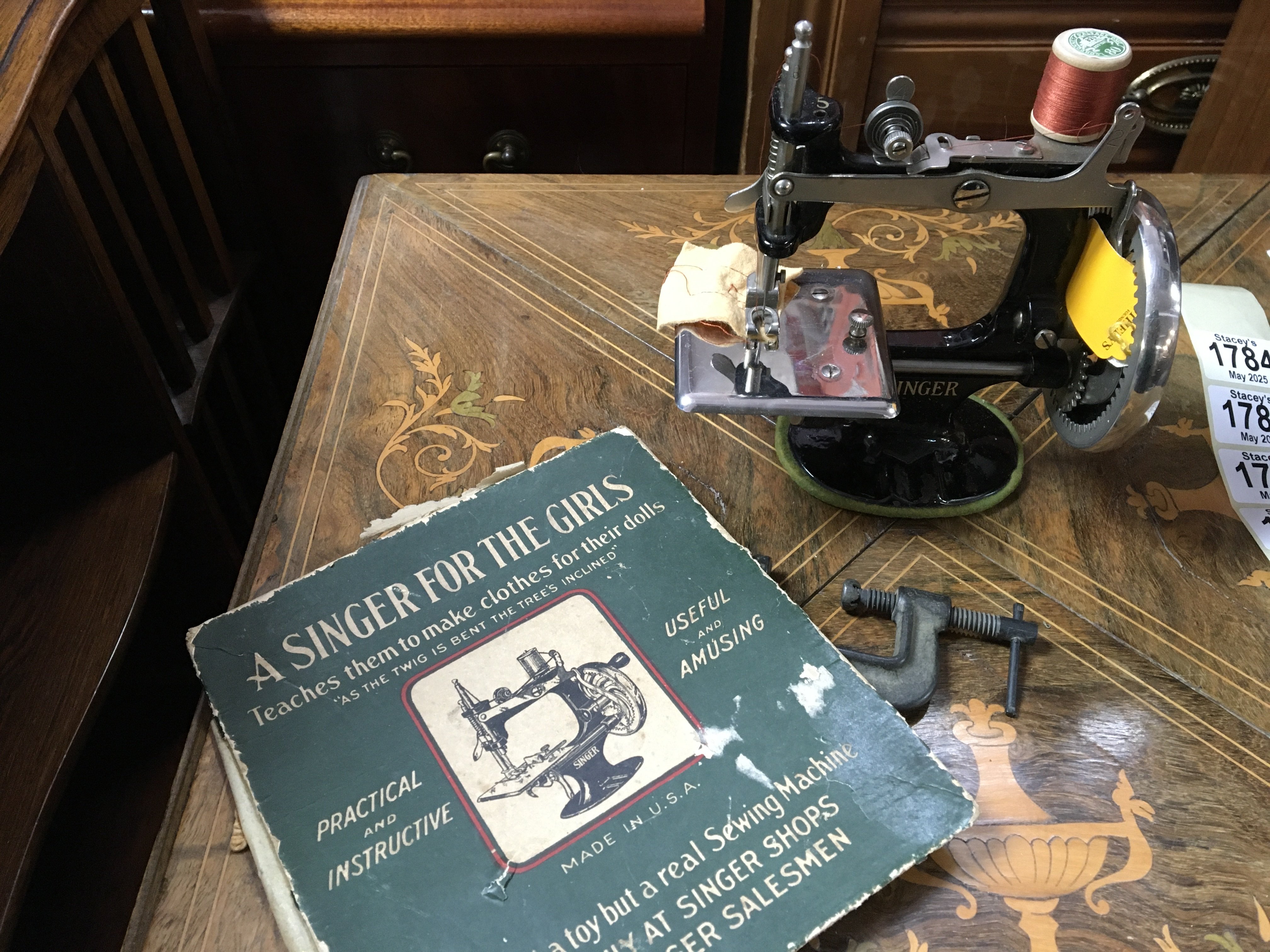 A collection of assorted vintage items including Kaiser Carol singer figures, miniature singer sewing machine, vintage childrens clothes, gloves etc. Postage category C