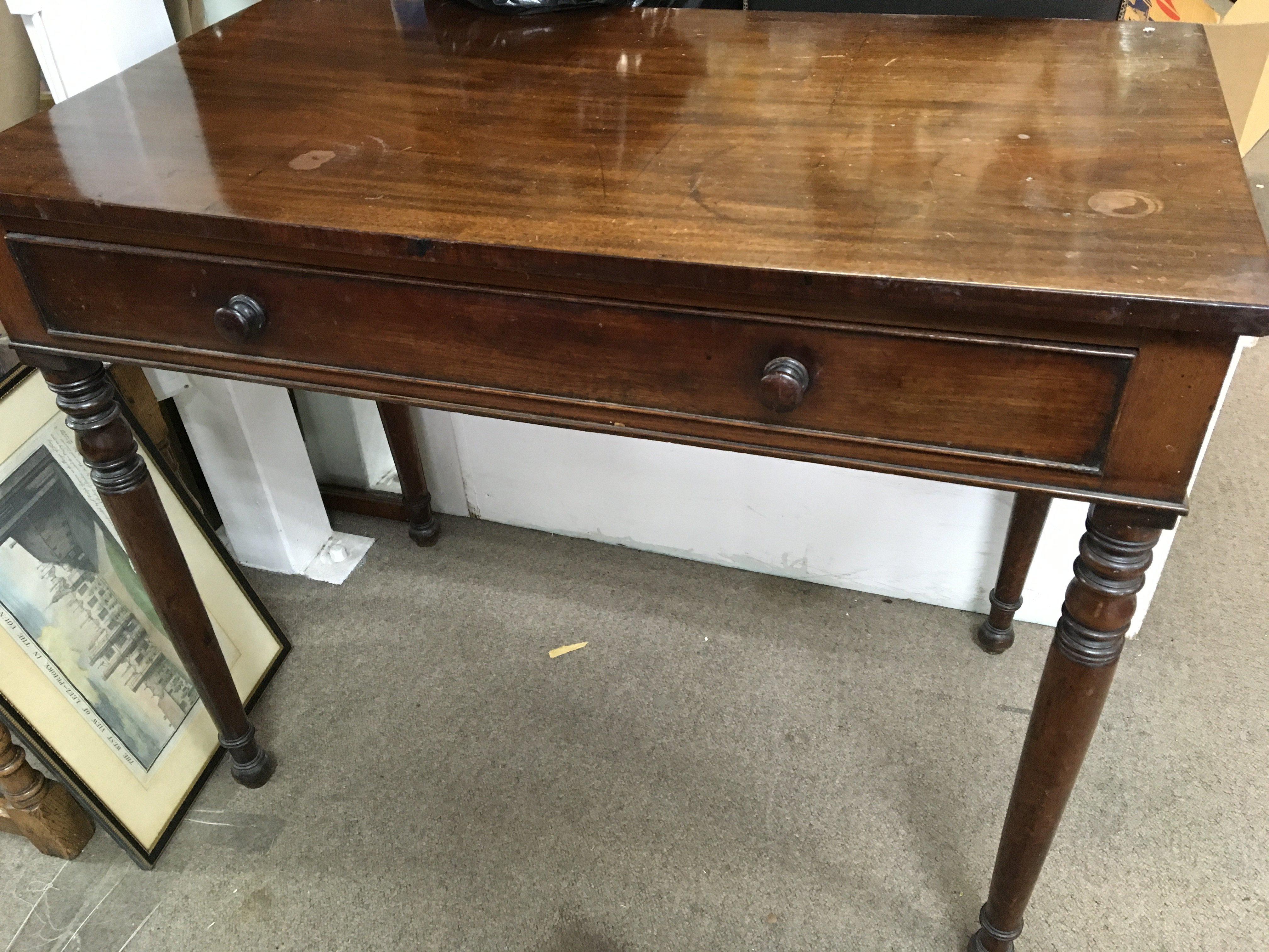 An Early Victorian Mahogany side table the rectangular top above a single drawer on turned legs.