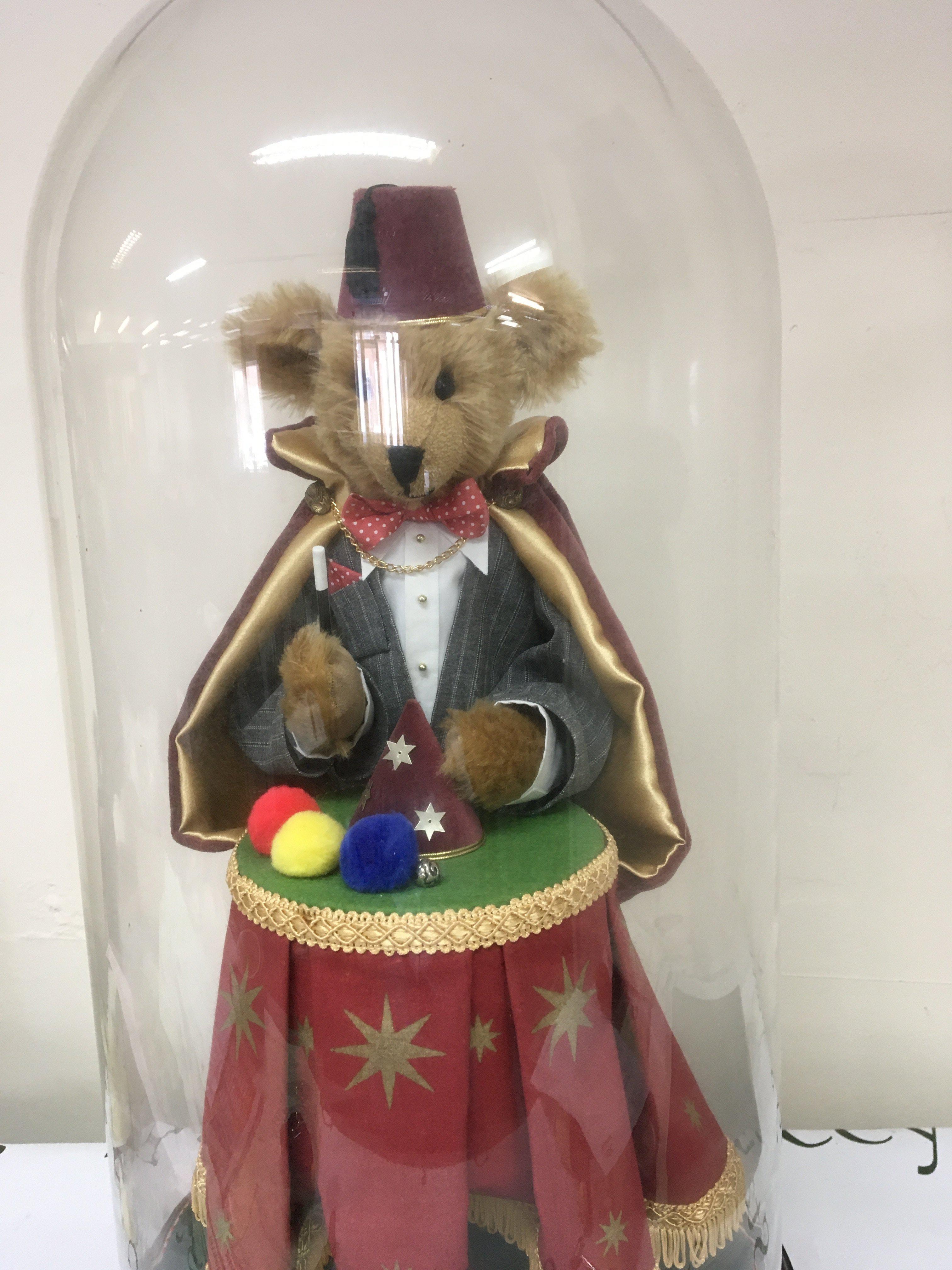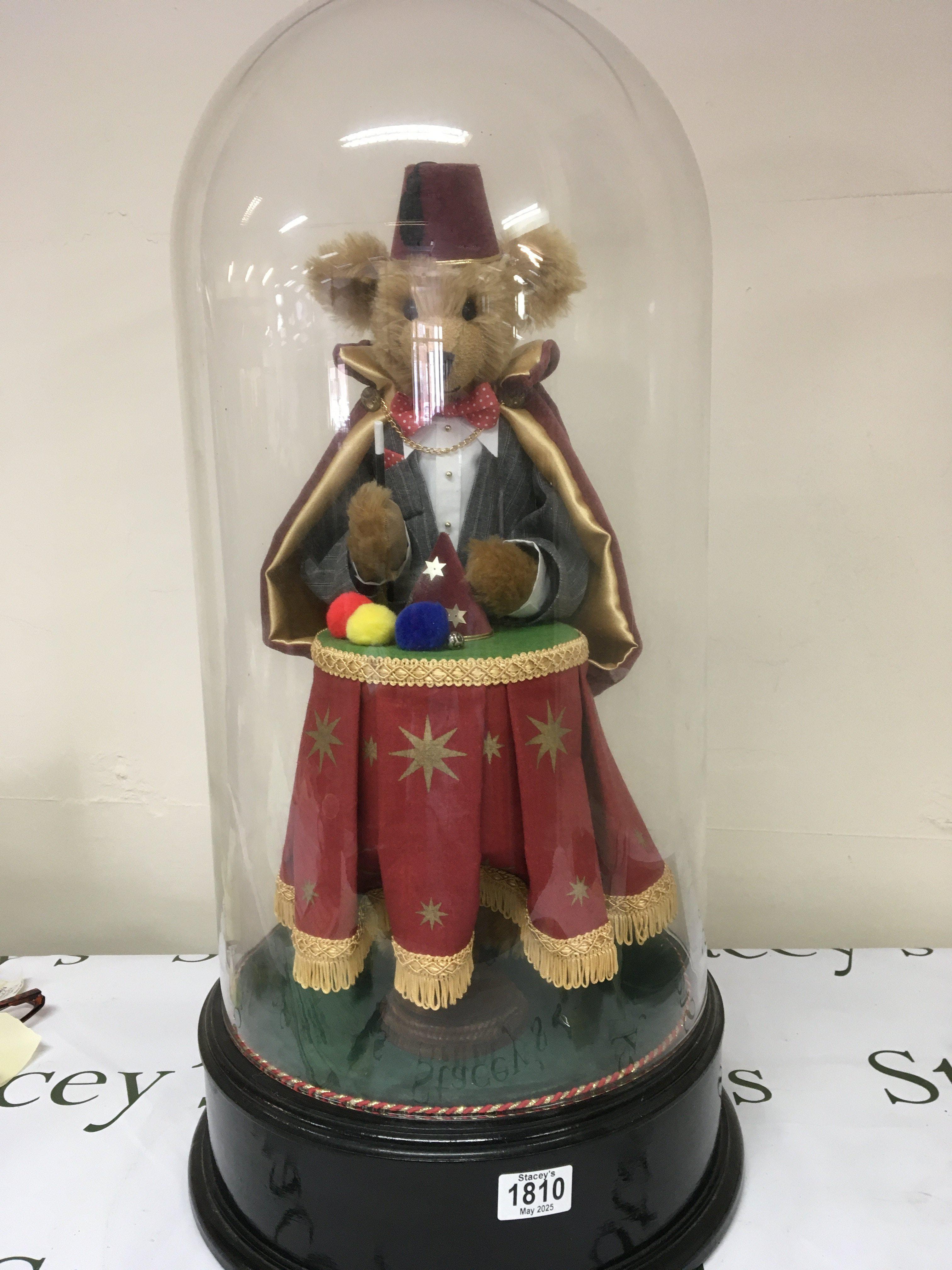 A large 20th Century Automata the bear magician under a glass dome. Height 70cm
