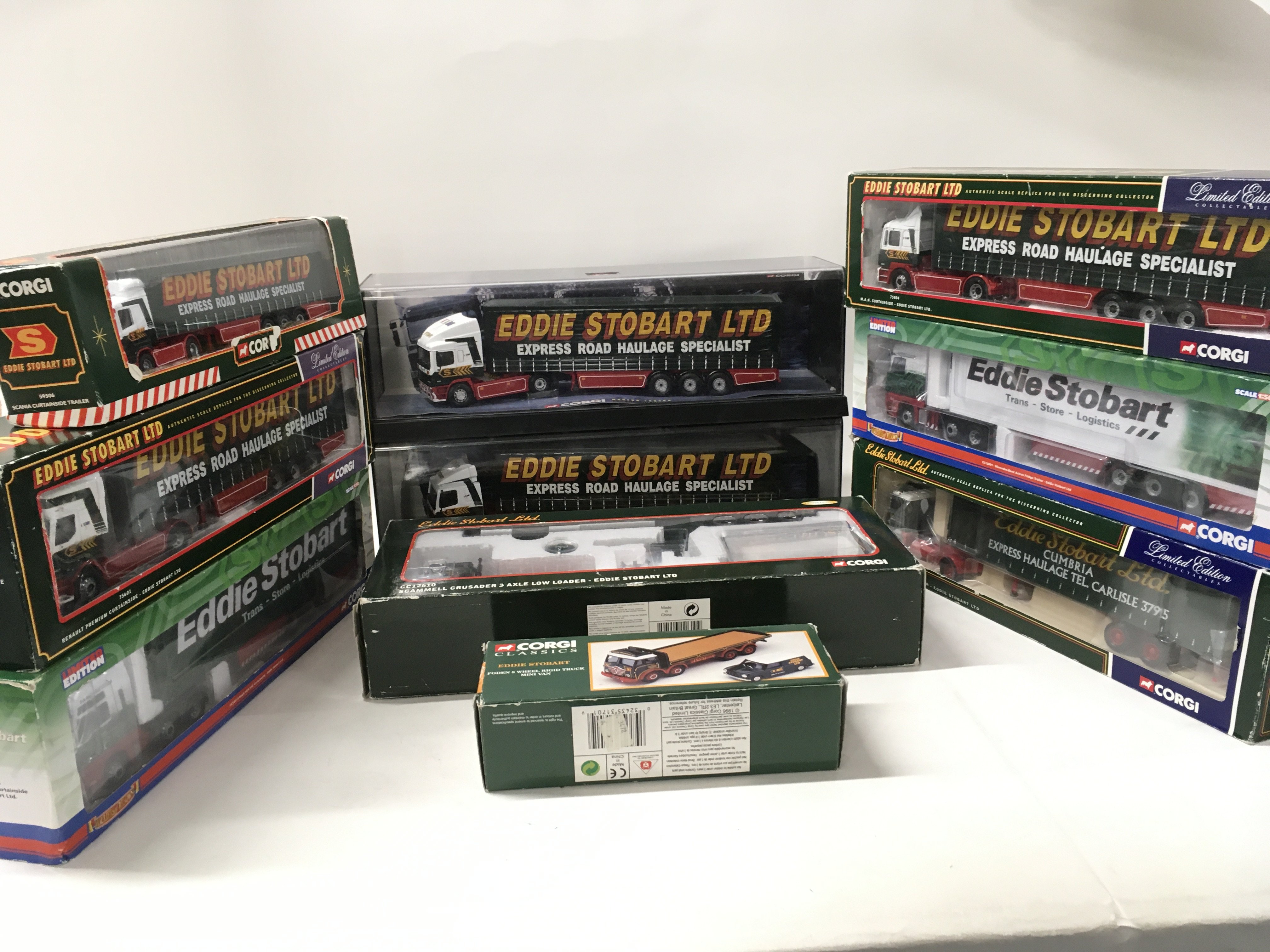 A collection of 10 boxed Corgi diecast commercial vehicles all themed with Eddie Stobart. Includes some limited edition models.