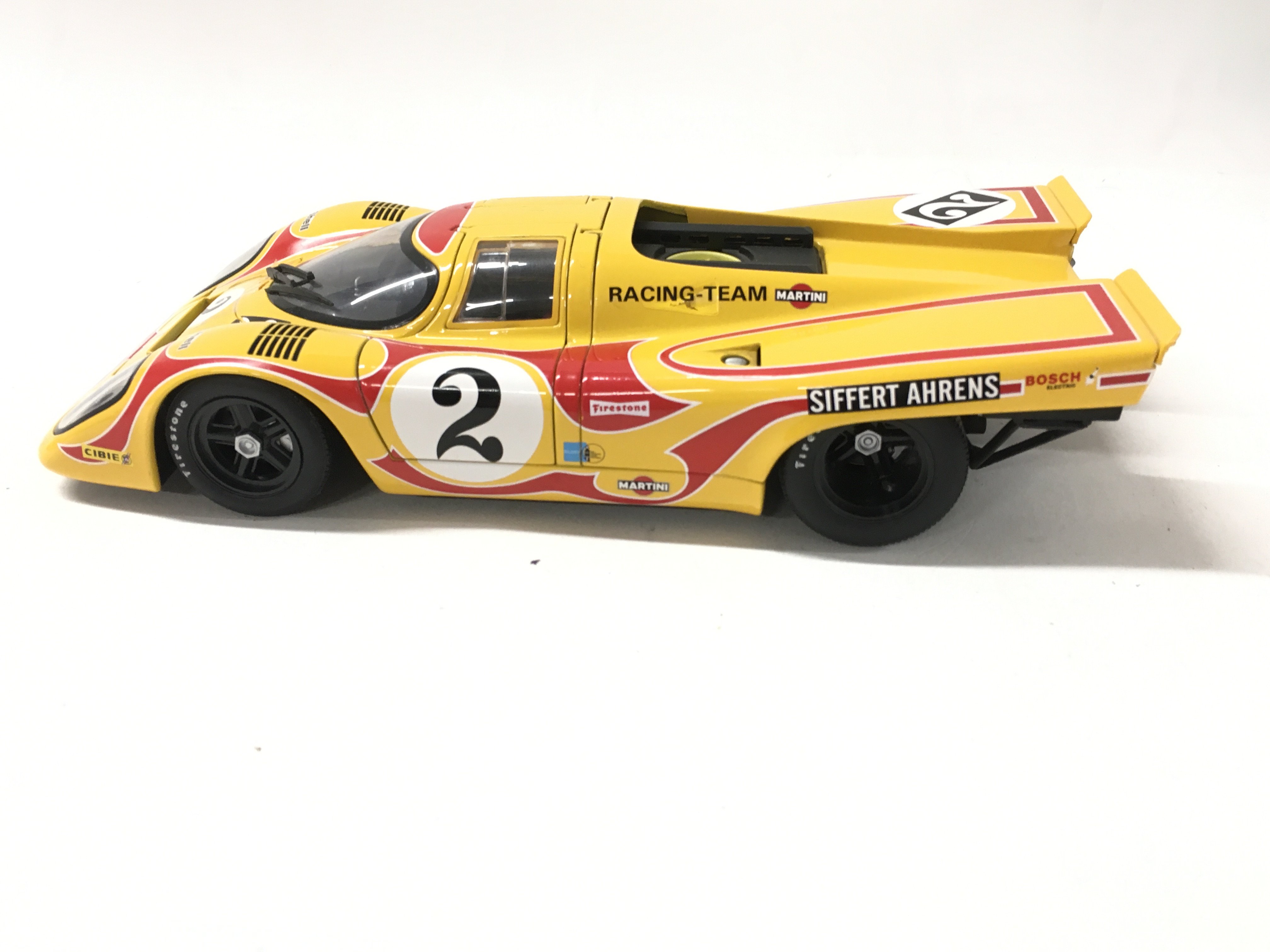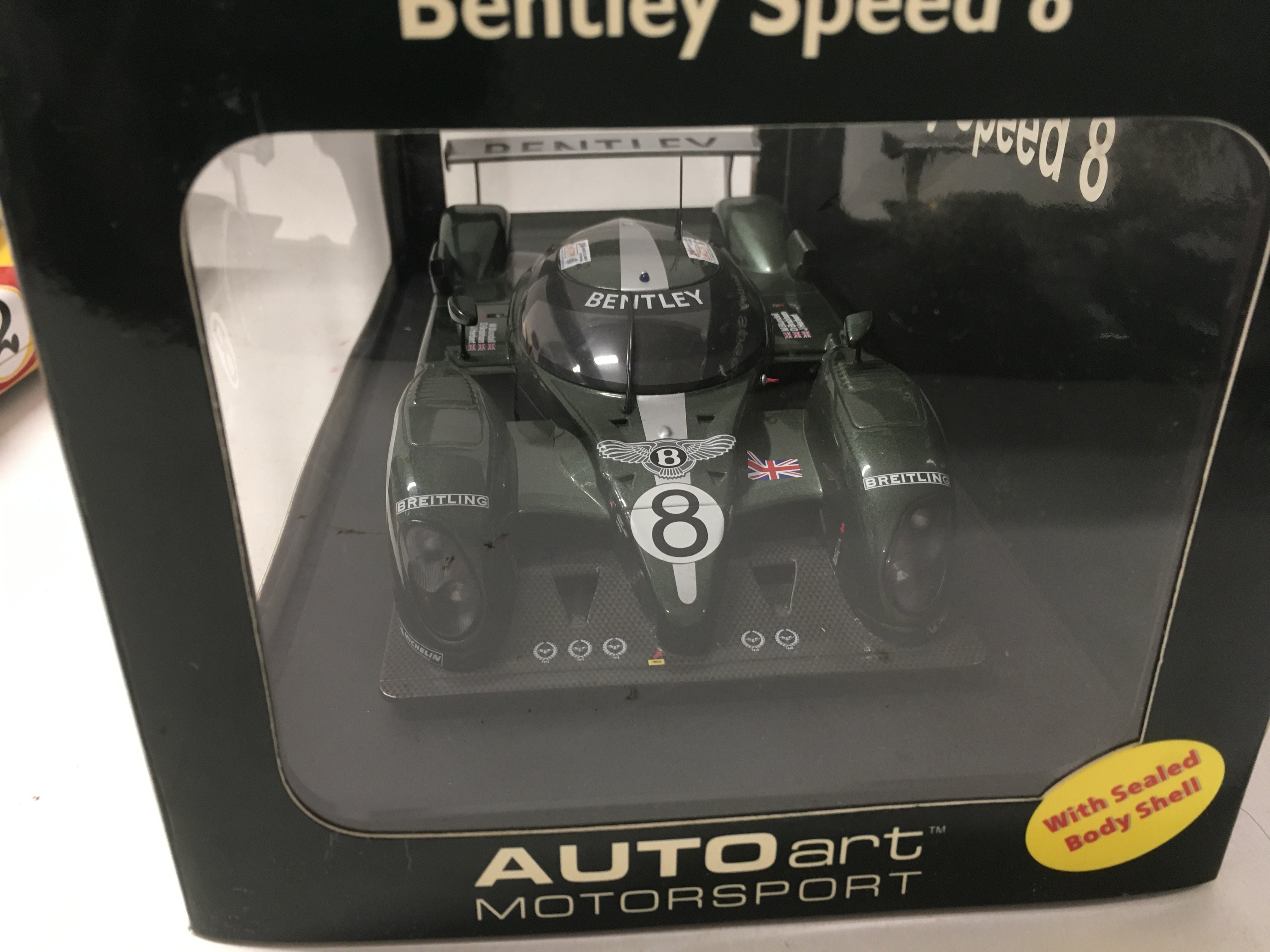2x Autoart motorsport models includes boxed Bentley Speed 8 Le Mans 2003 with green livery.. Also unboxed Porsche 917K Martini Kyayami no2 in vivid yellow livery. No reserve