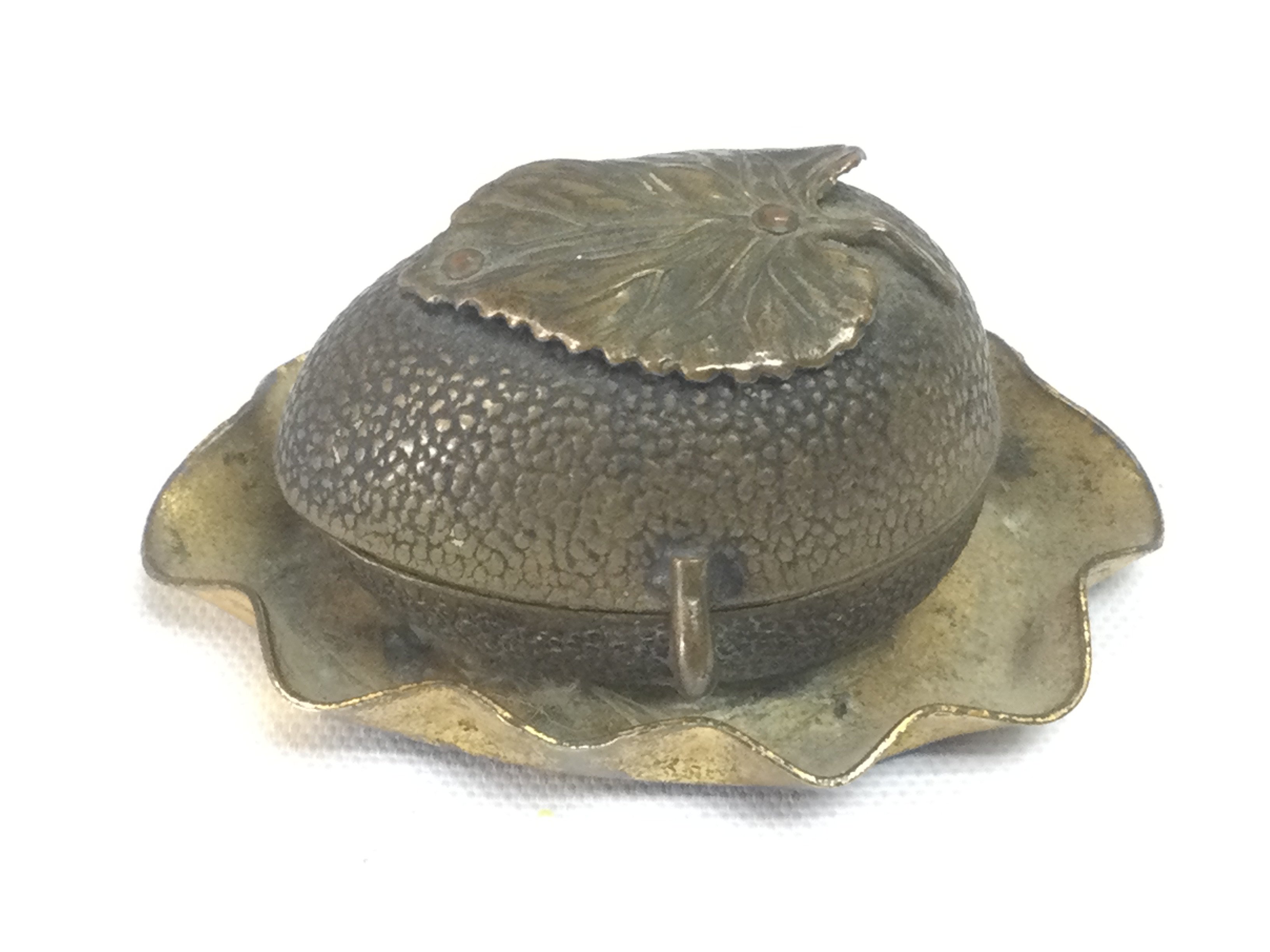 A small brass thimble case in the form of a nut, approx length 4.5cm. Shipping category A.