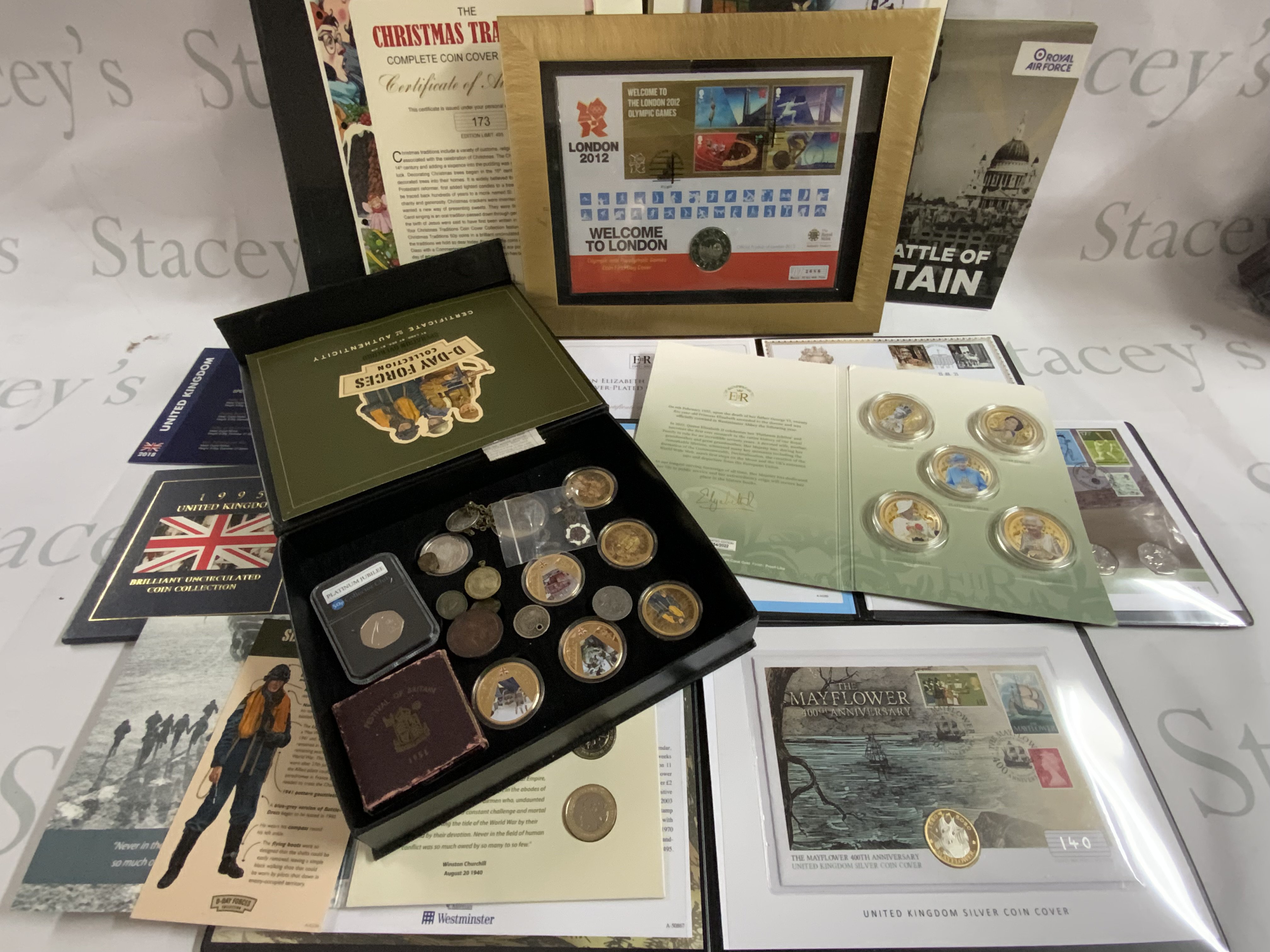 A varied collection of modern uncirculated coinage together with some additional loose coinage.