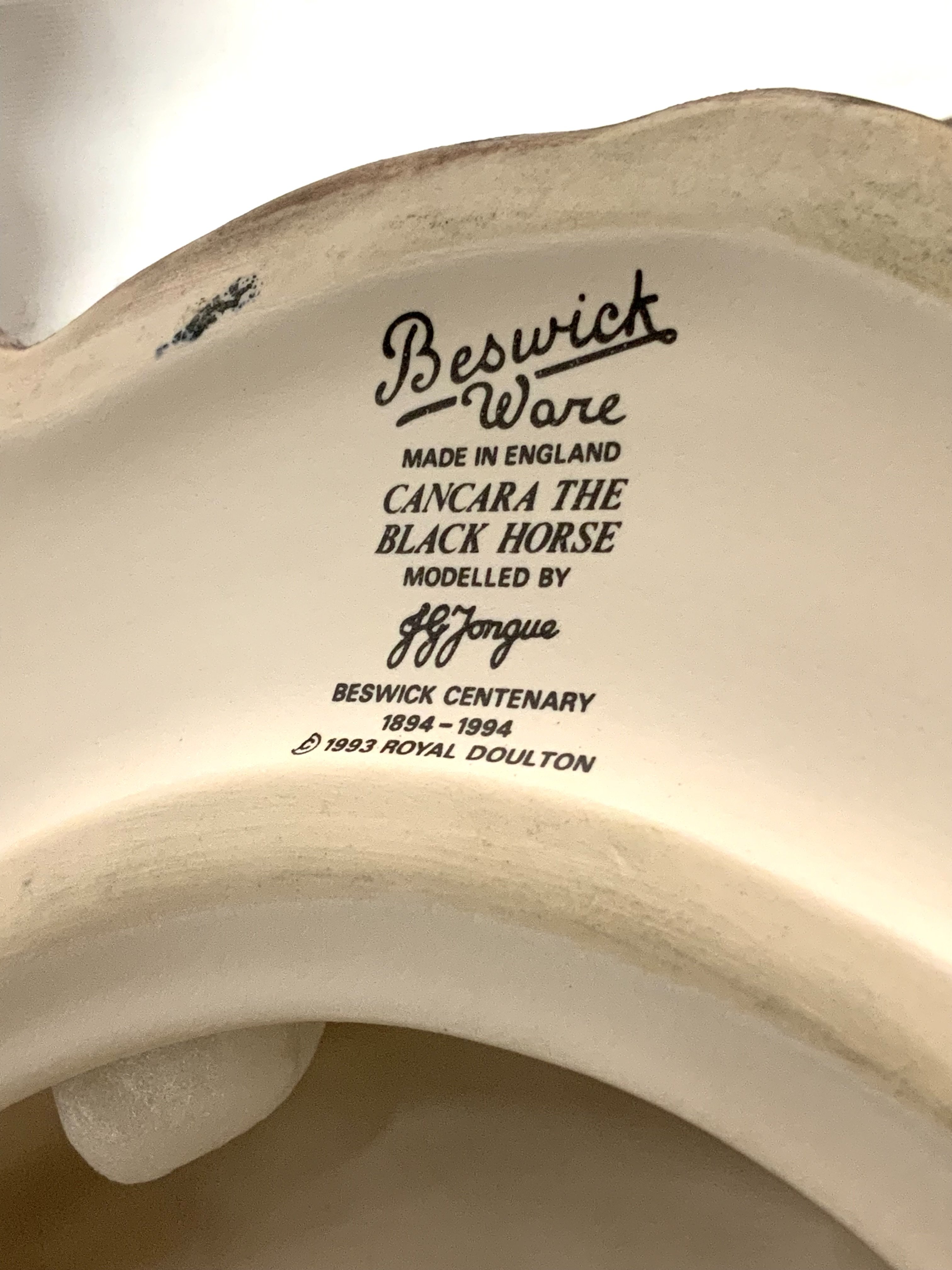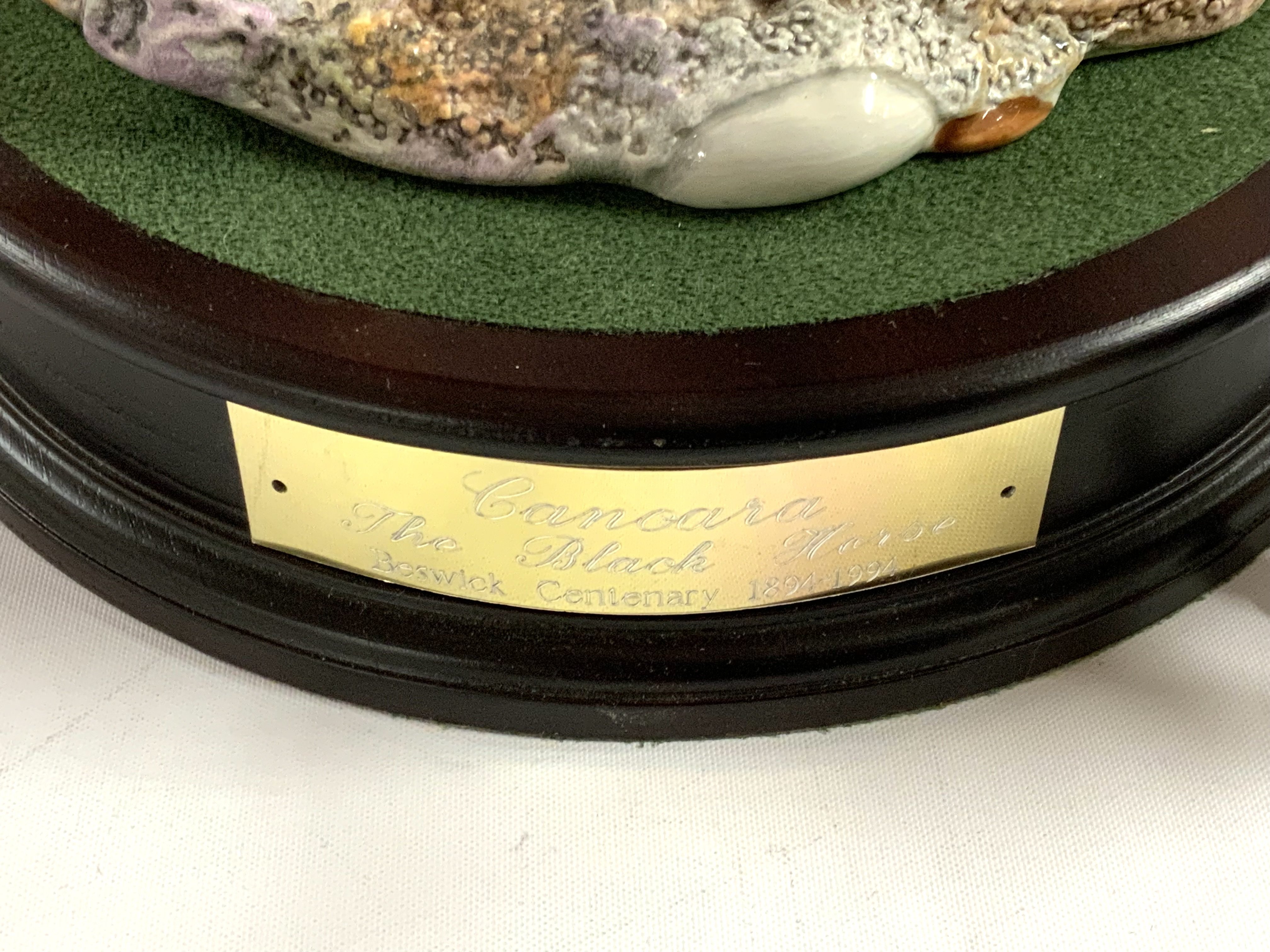 A large Beswick rearing horse named Cancara The Black Horse, Centenary 1894-1994, with base (2 boxes) additional small beswick horse. (D)