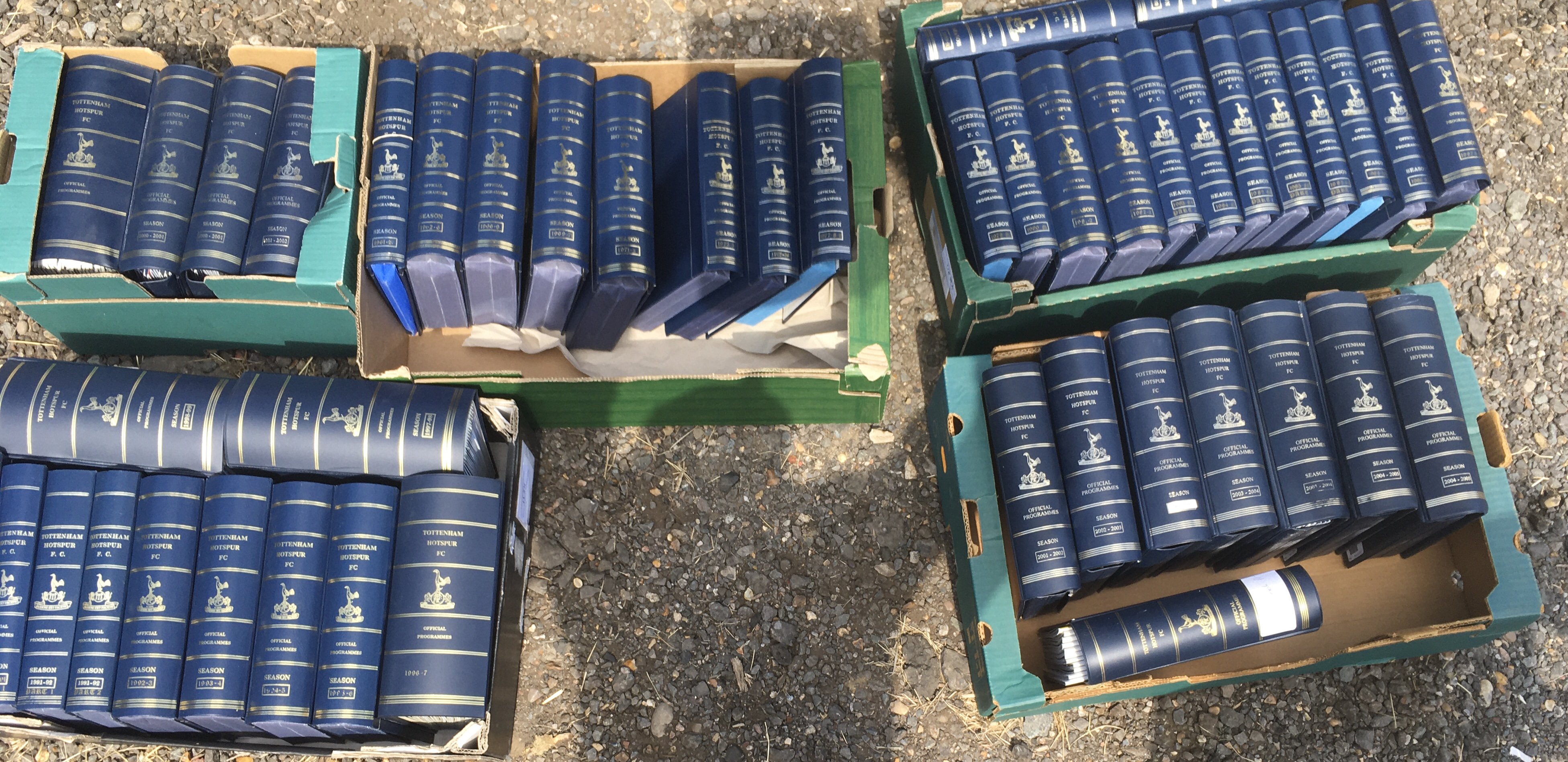 Tottenham Complete In Binders Football Programmes: Complete run of first team homes in official binders from 61/62 to 2006 - 2007. Tick lists inside and although from a deceased estate we believe they are all there. (47 binders)