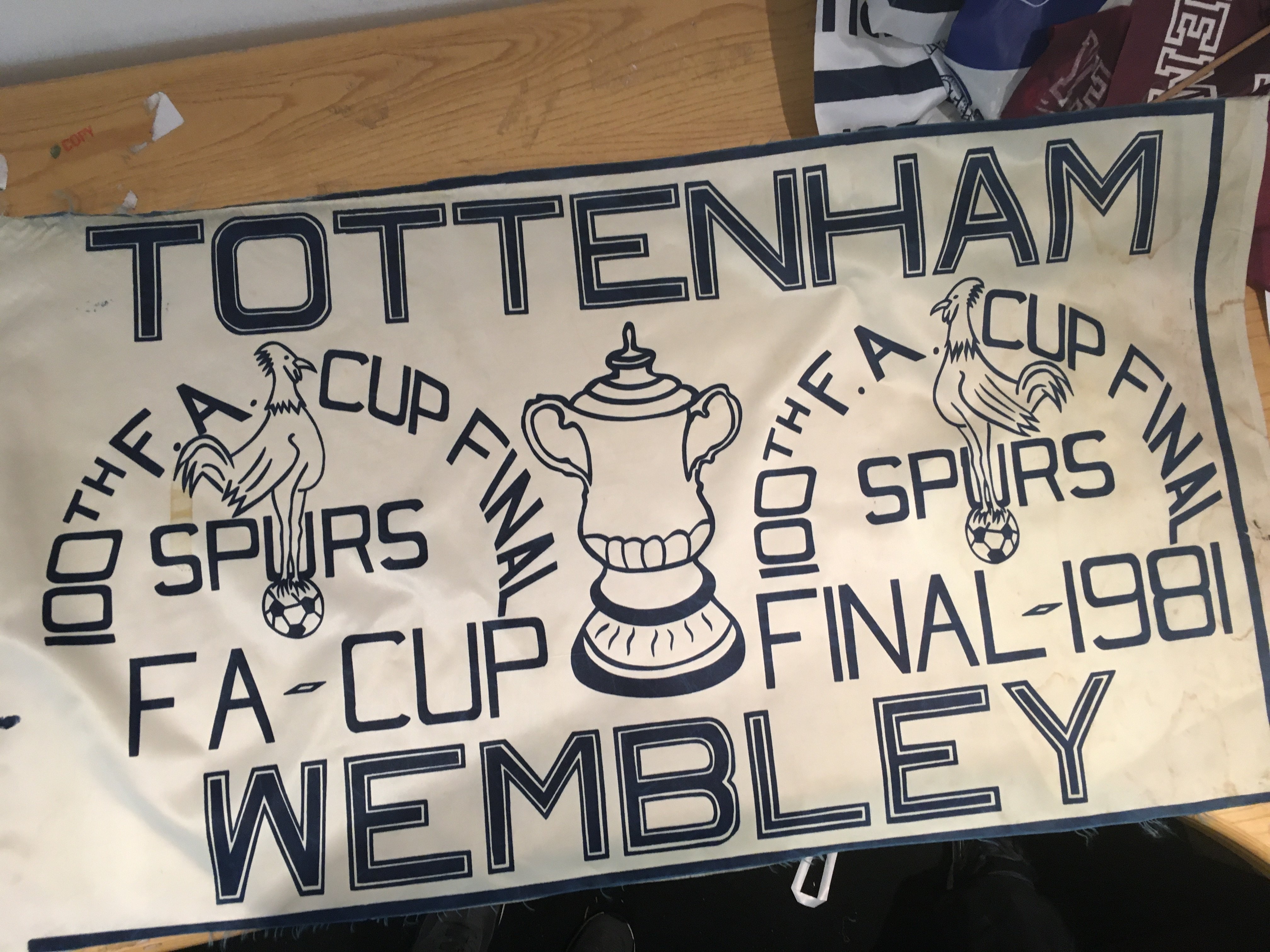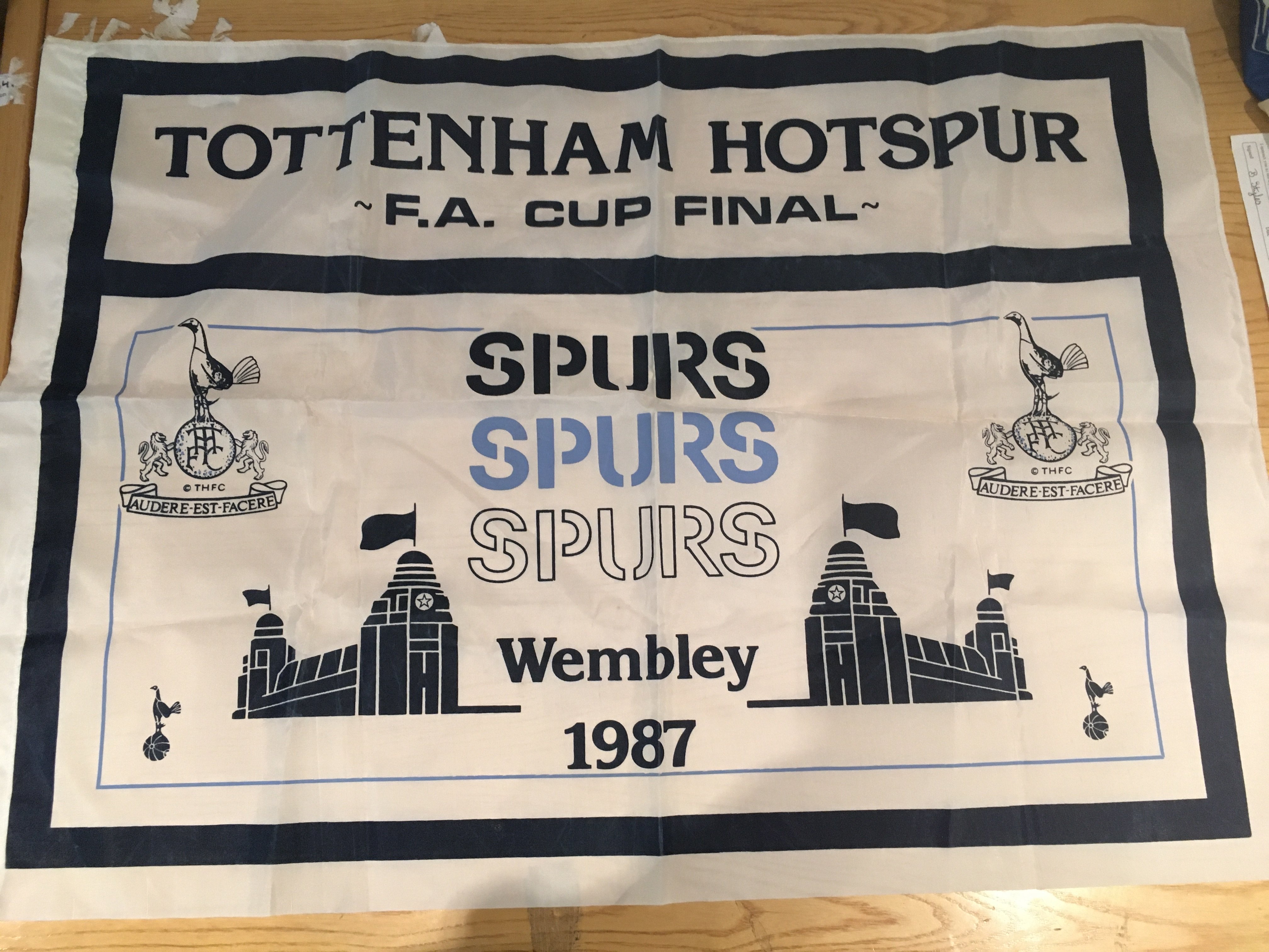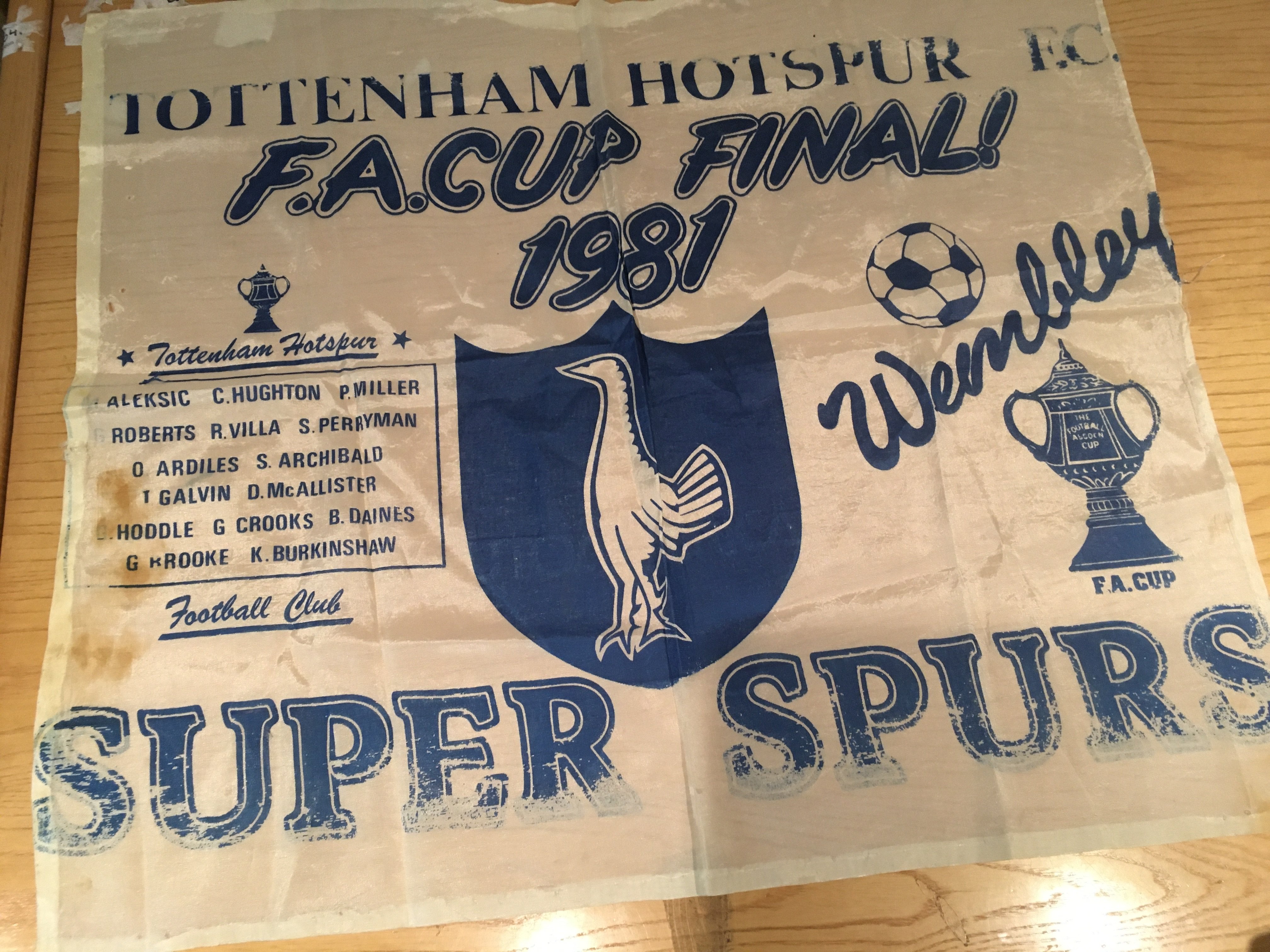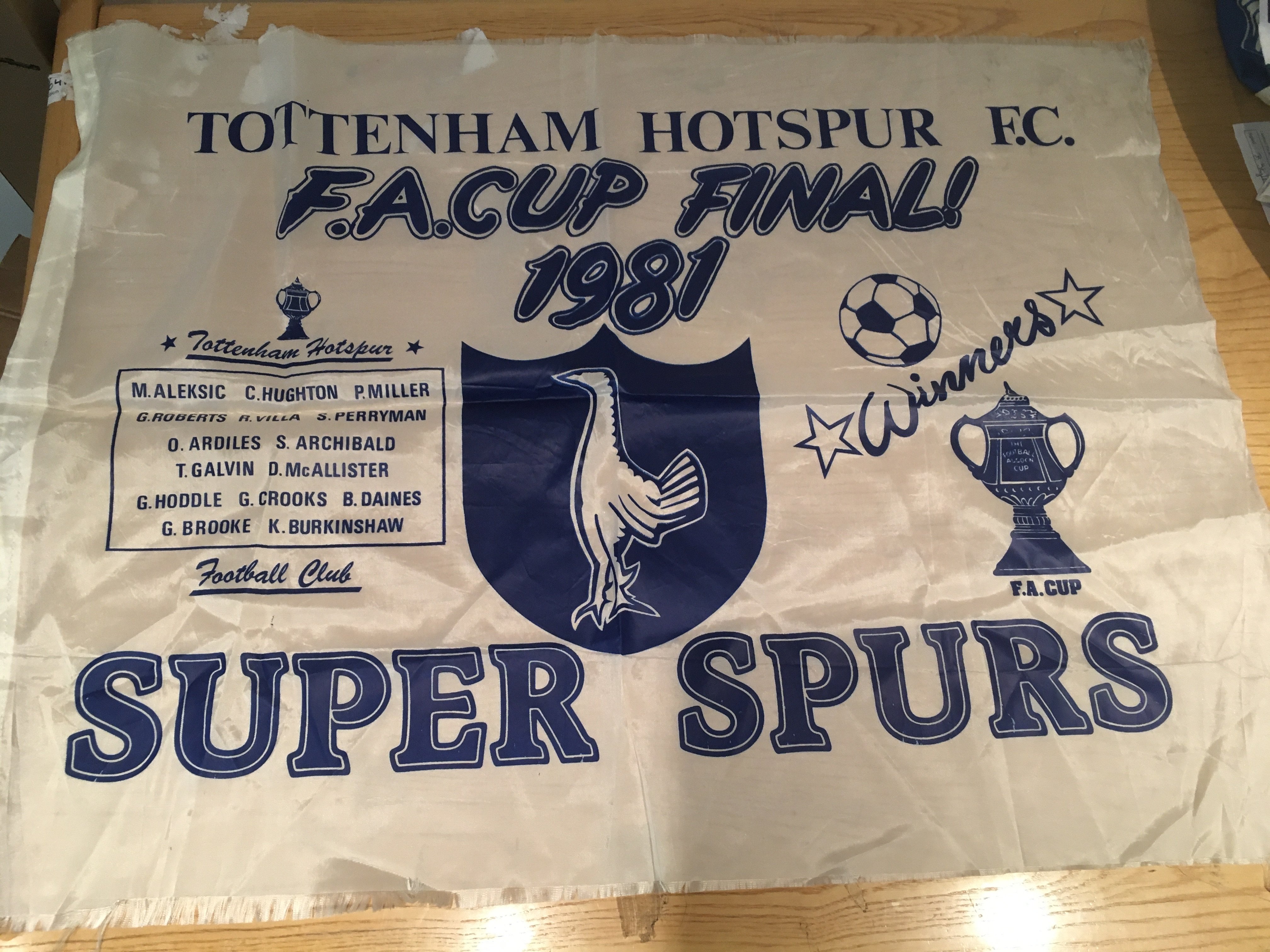 Tottenham Original FA Cup Final Football Flags: Large flags taken to Wembley including two still with sticks. Three different 1981 Cup Finals plus a 1987 and a 1991. (5)