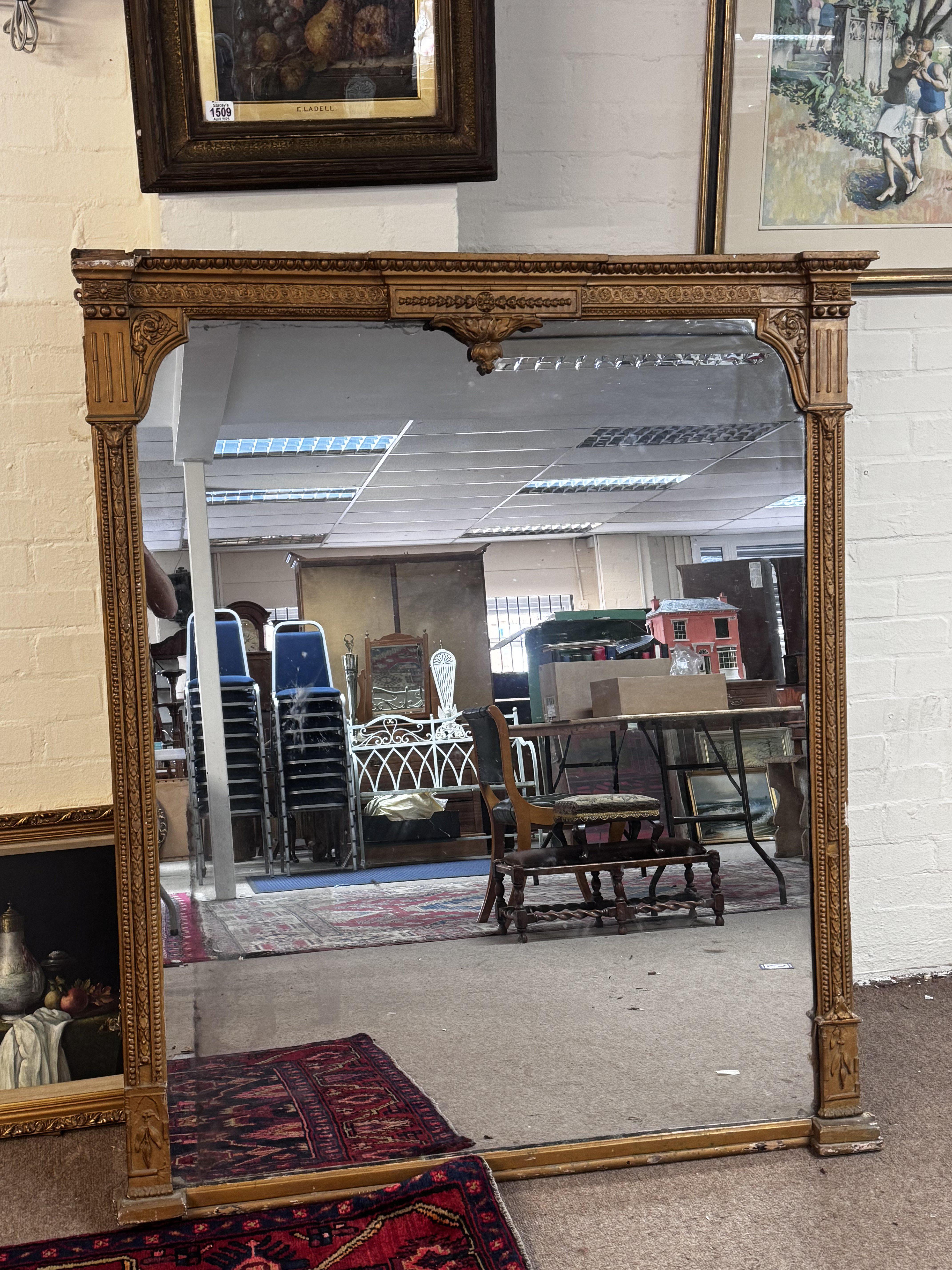 A large gilt framed Victorian over mantle mirror. 146.5 x 124cm (A)