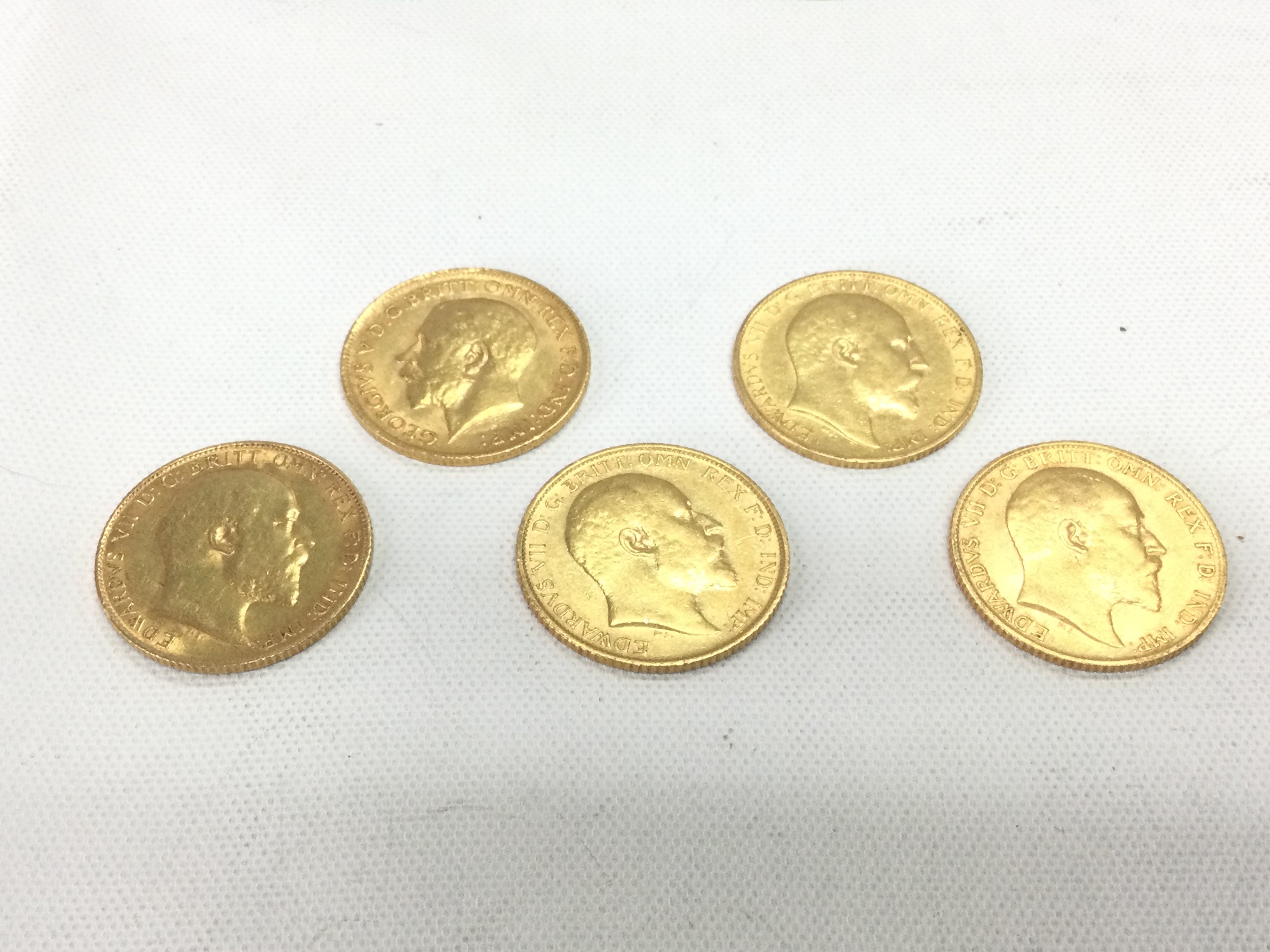 Five gold 1/2 sovereigns comprising the following years; 1906. 1907, 1909, 1910 and 1914. Shipping category A.