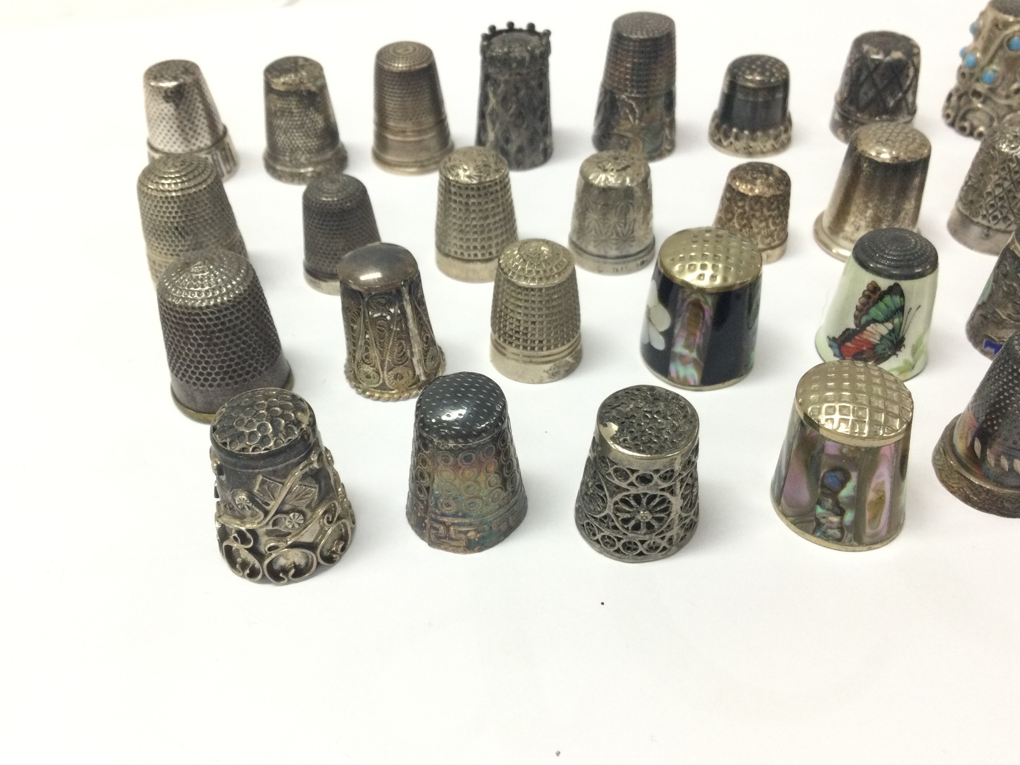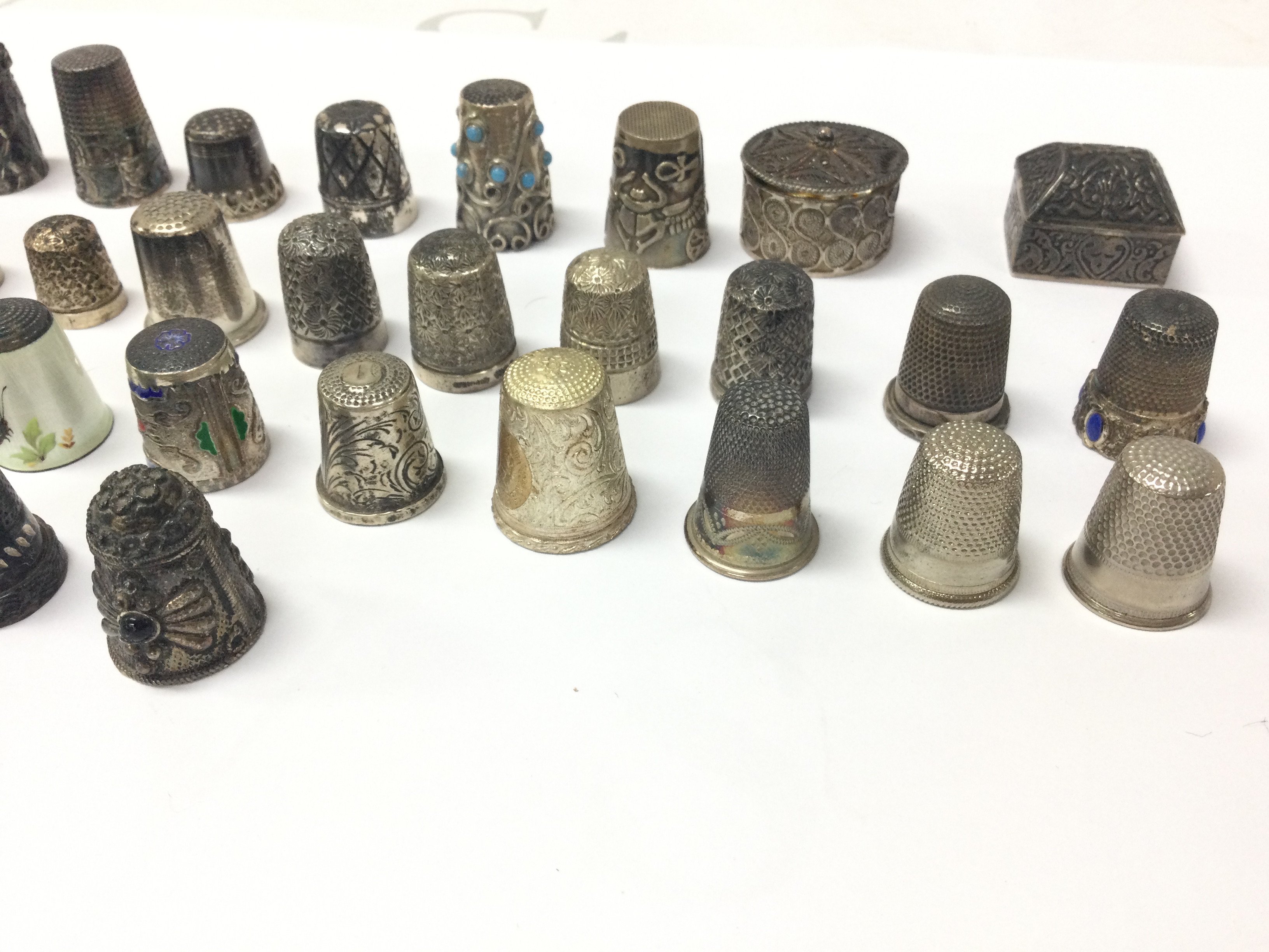A collection of assorted thimbles including numerous silver examples. Postage B