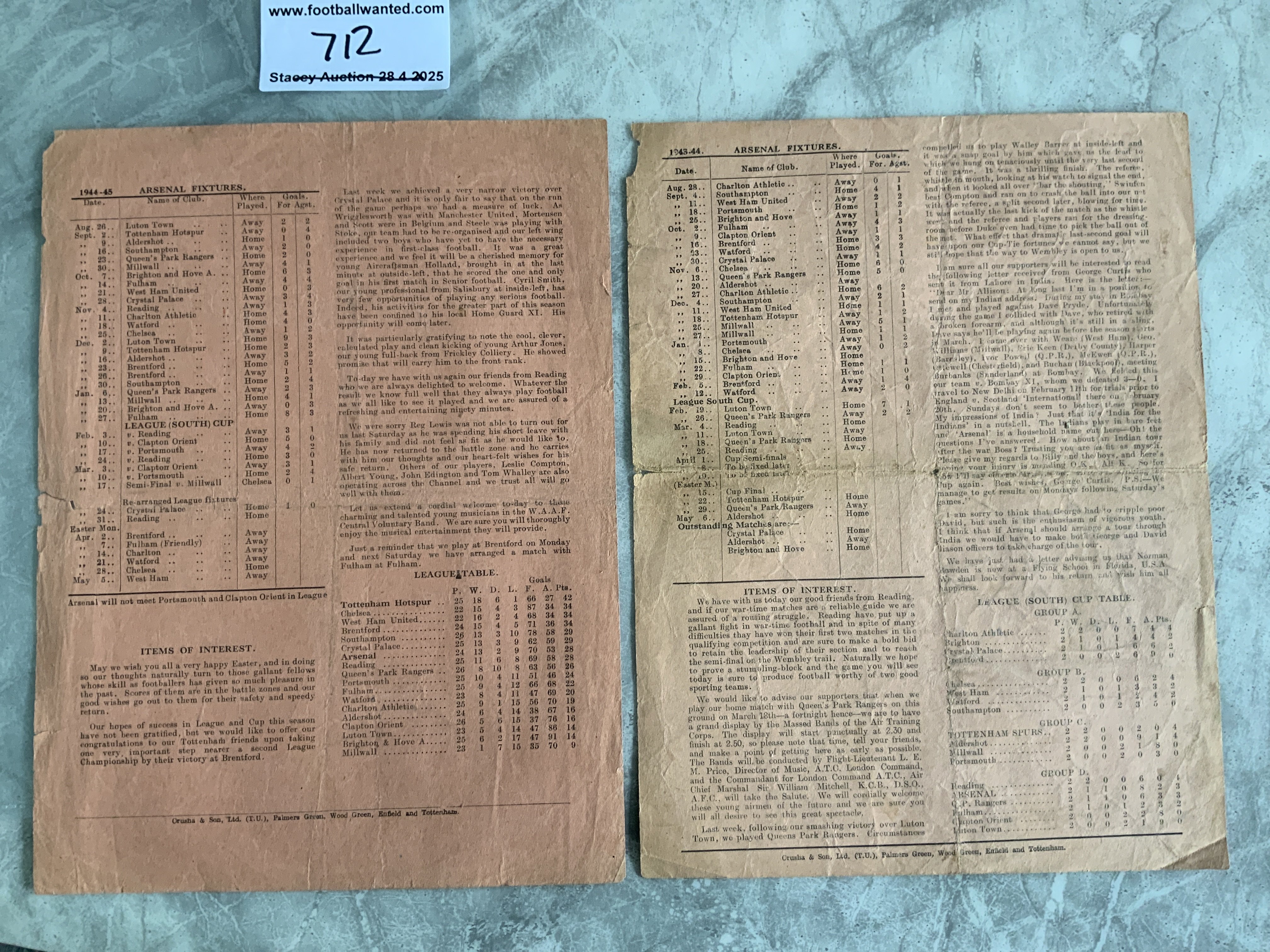 Arsenal v Reading Football Programmes: 43/44 Cup + 44/45 League both in fair condition. (2)