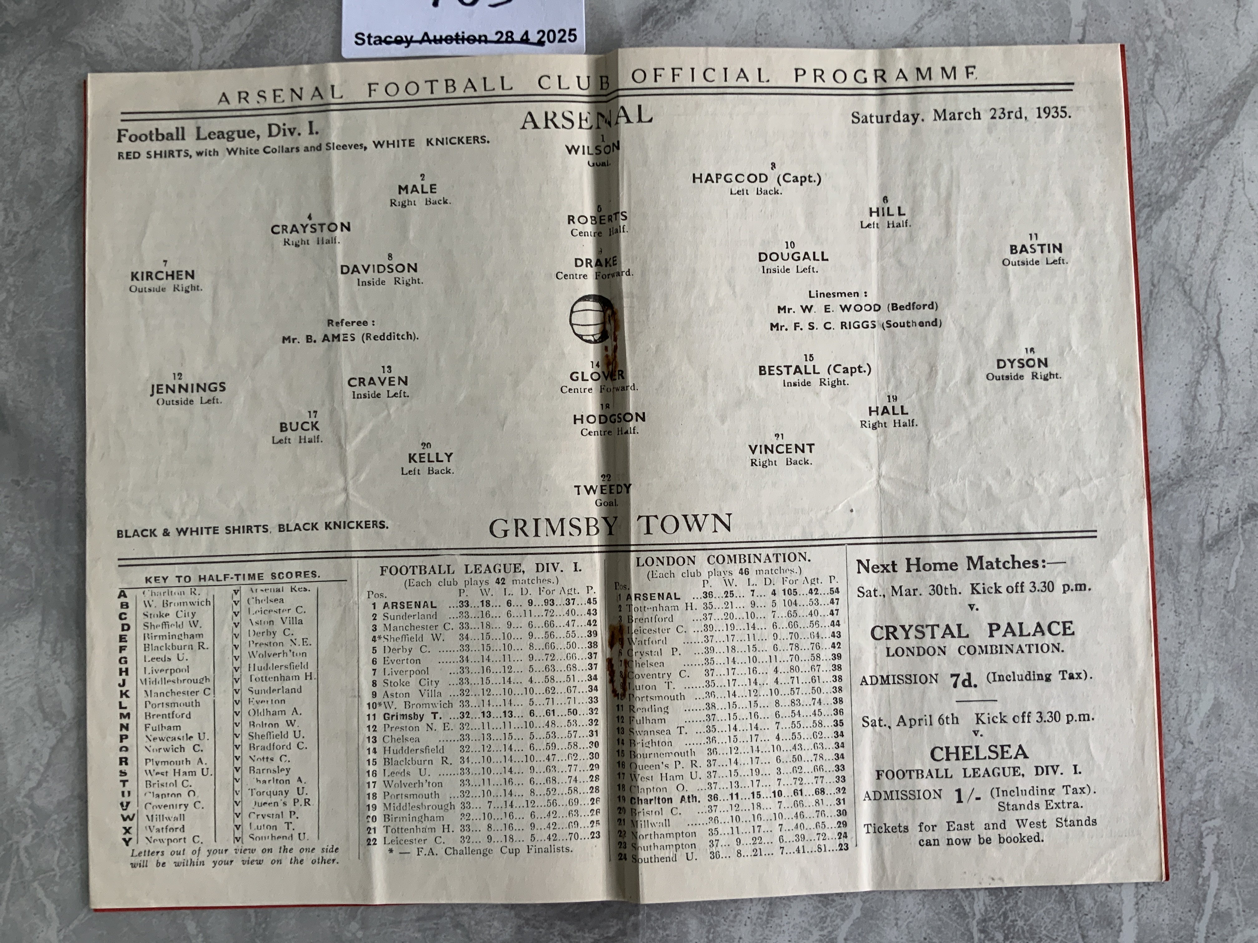 34/35 Arsenal v Grimsby Football Programme: Good condition with no team changes. Staples removed not rotted away.