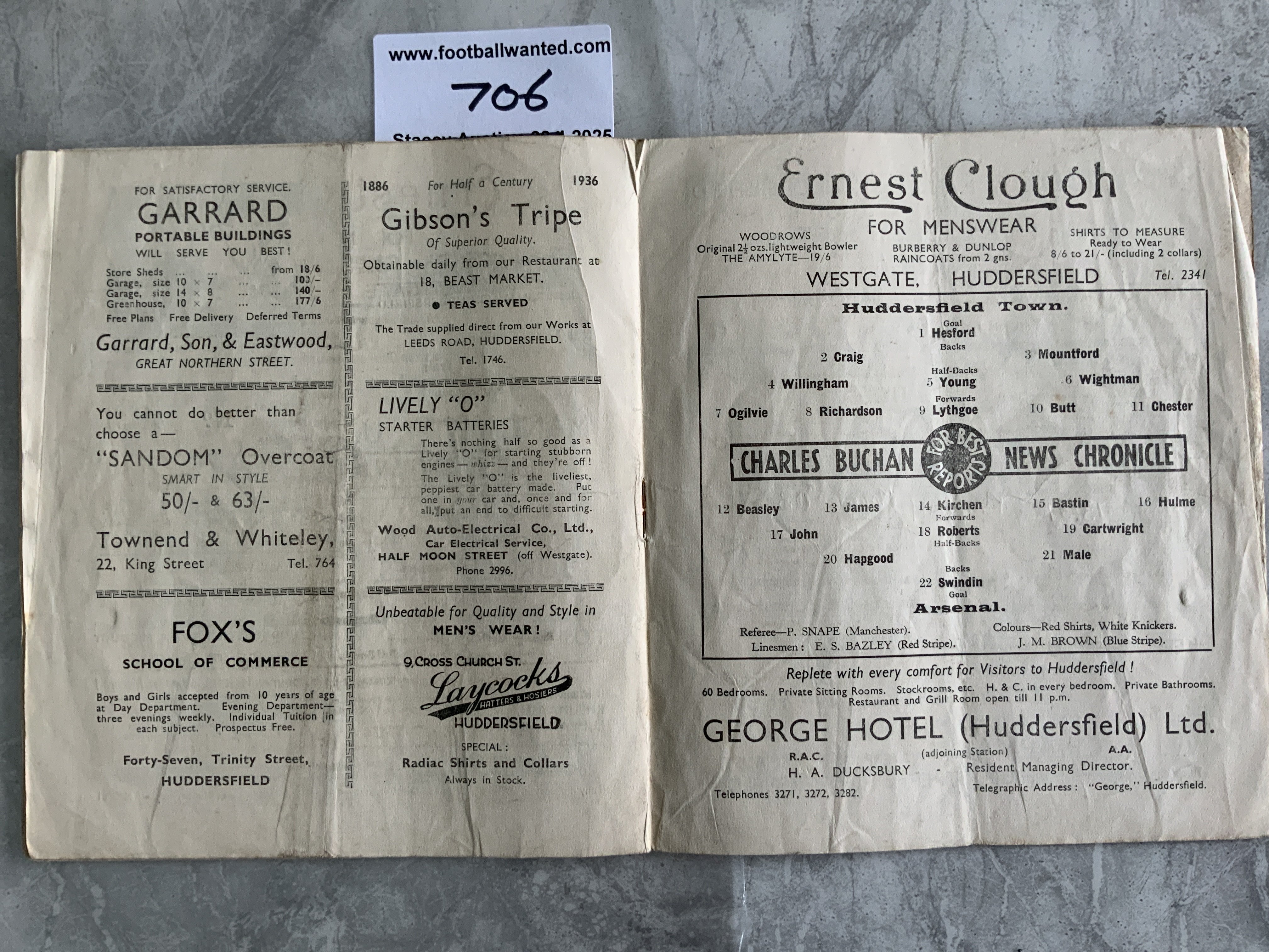 36/37 Huddersfield v Arsenal Football Programme: Fair condition league match with no team changes. Fold and creasing.