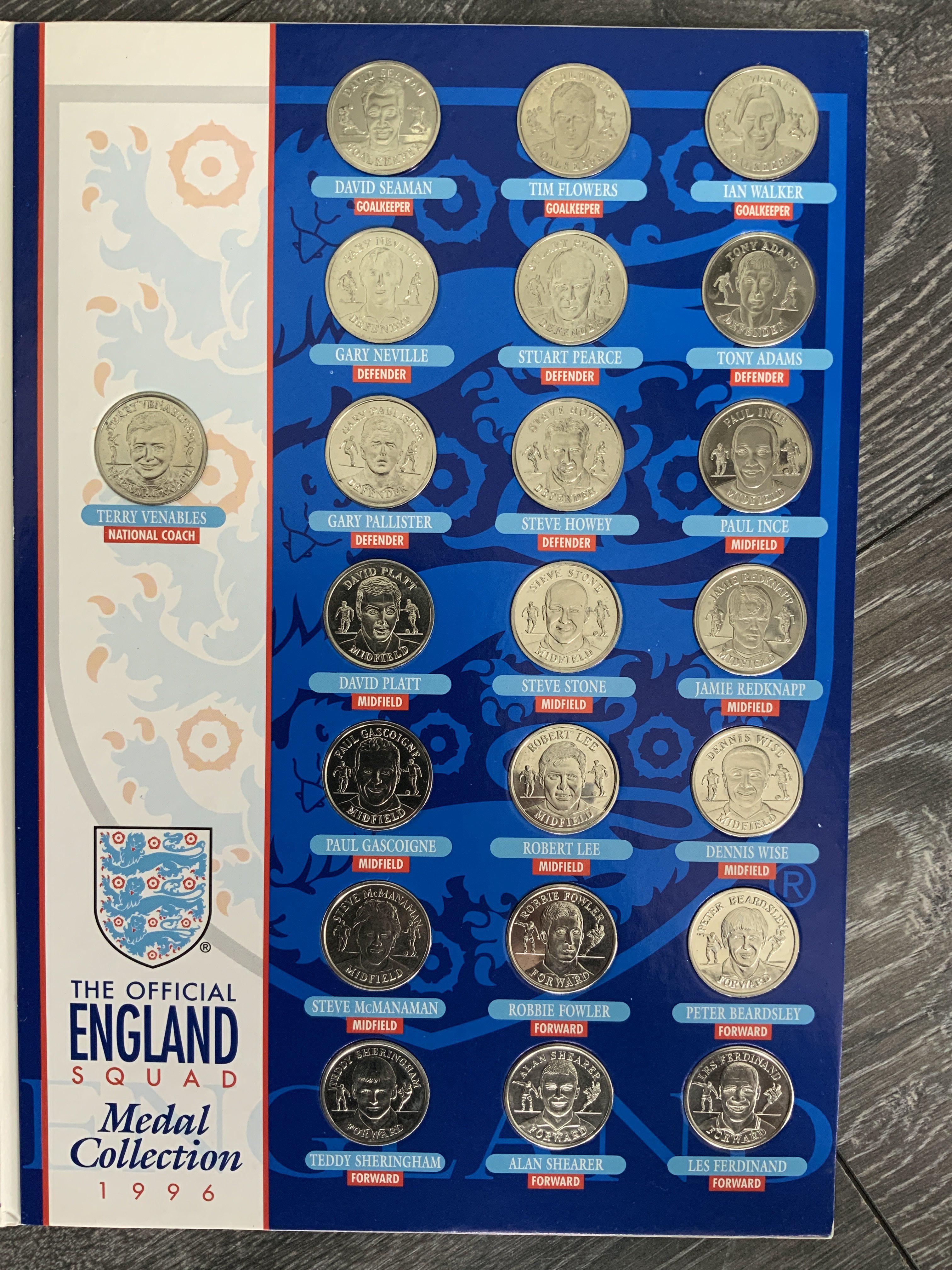 Football Memorabilia: 1960s original keyring almost certainly Bobby Moore, Euro 96 complete England squad coin set and more. Instructions to sell.