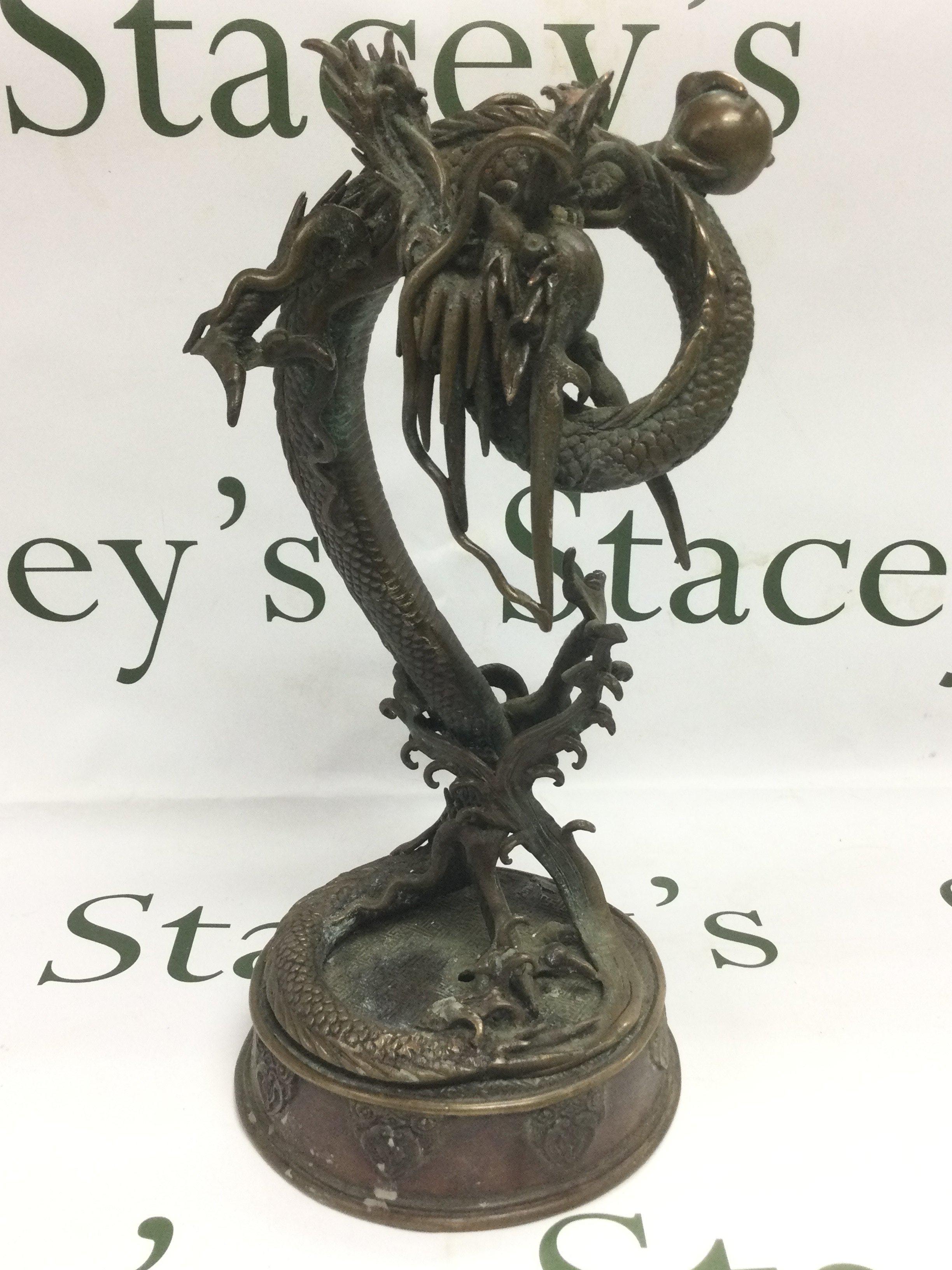 A Chinese bronze dragon figure, approx height 32cm. Shipping category D.