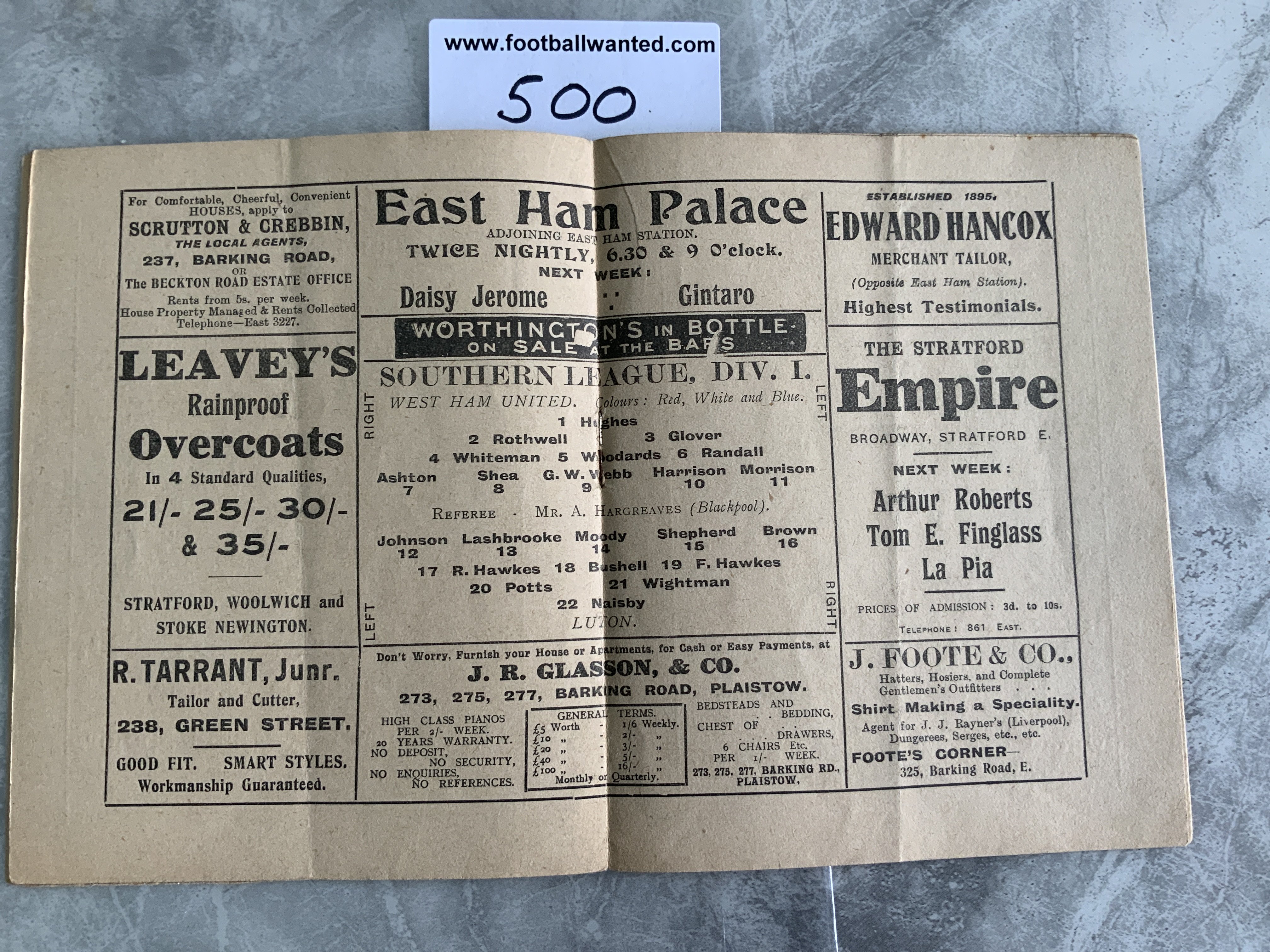 1911 - 1912 West Ham v Luton Football Programme: Excellent condition rare pre 1st World War programme with no team changes. Incredible date of 11 11 11 and programme number 11. Superb local adverts in this 16 pager.