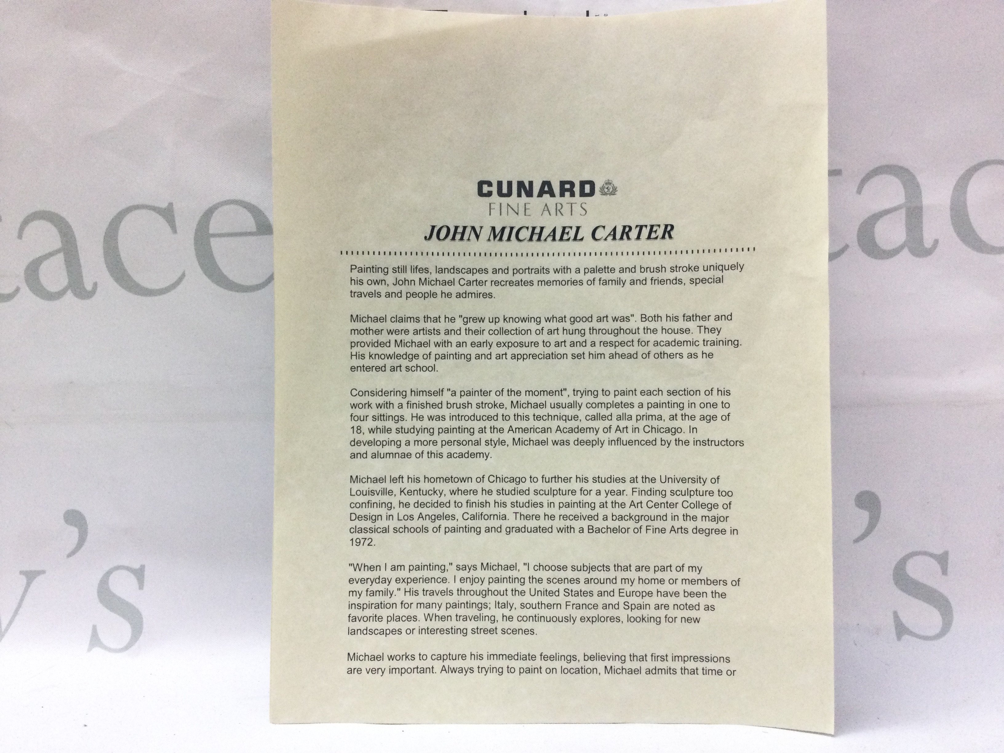A framed John Carter still life watercolour with certificate of authenticity . Frame dimensions 114x92cm