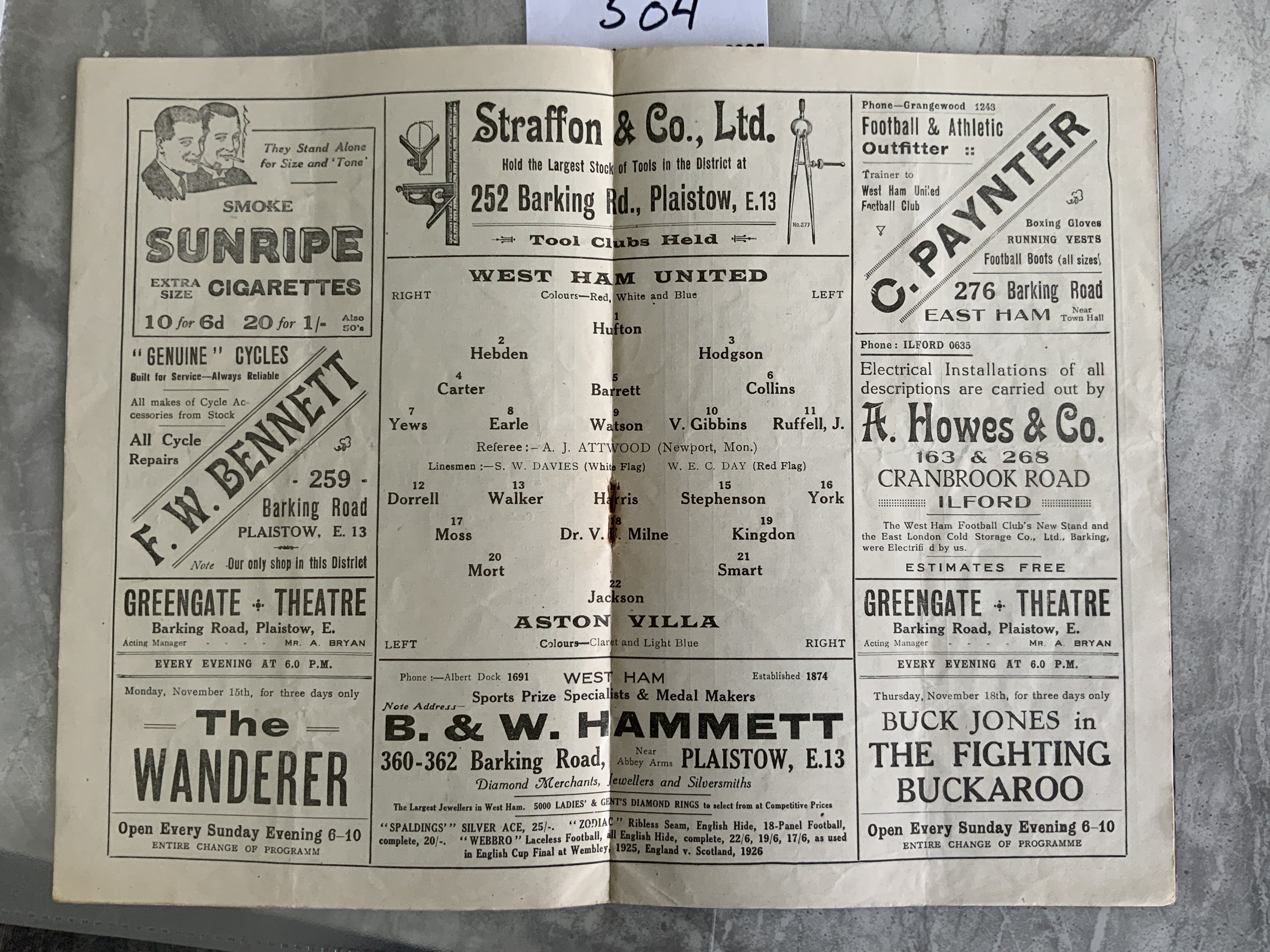 1926 - 1927 West Ham v Aston Villa Football Programme: Excellent condition division one programme with no team changes.