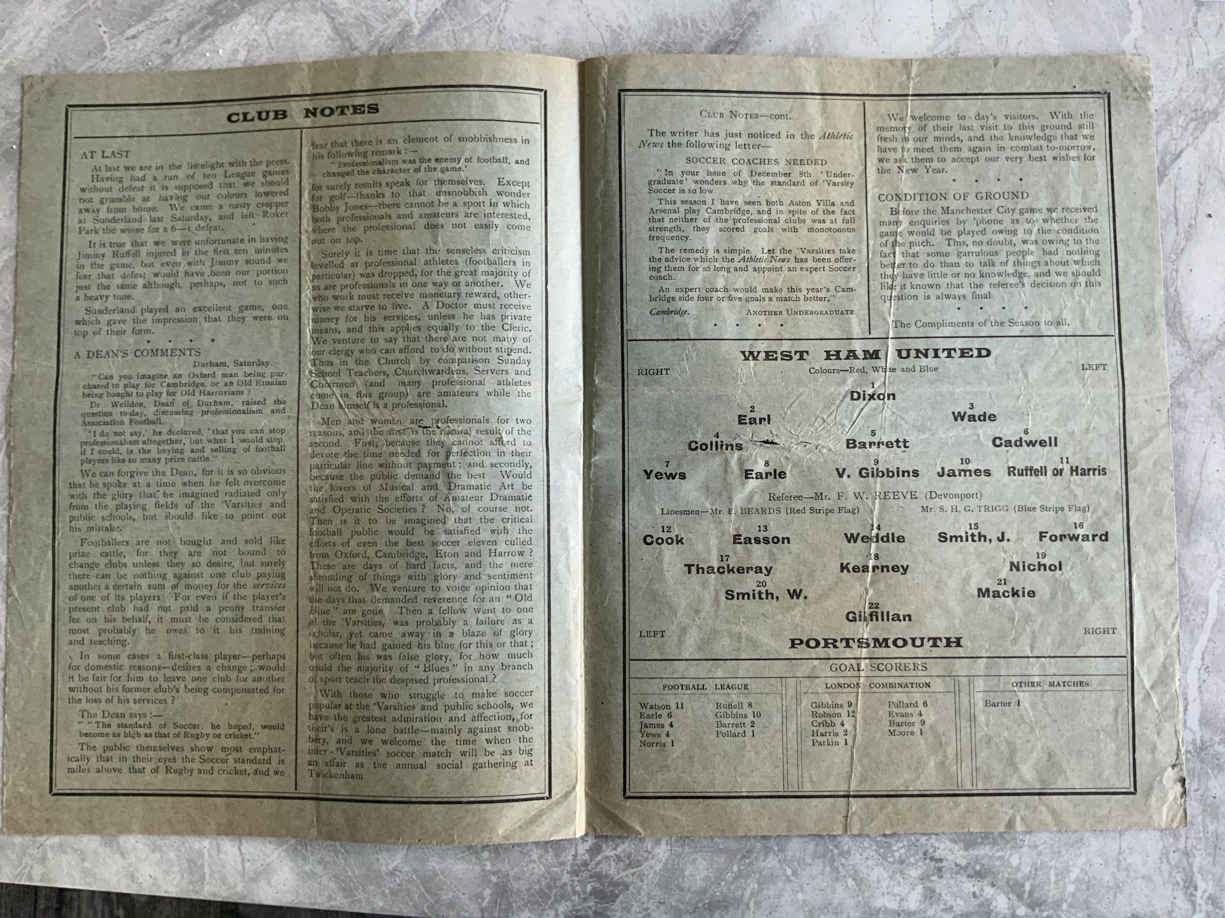 1930 - 1931 West Ham v Portsmouth Football Programme: Good condition division one programme with no team changes. Folding.
