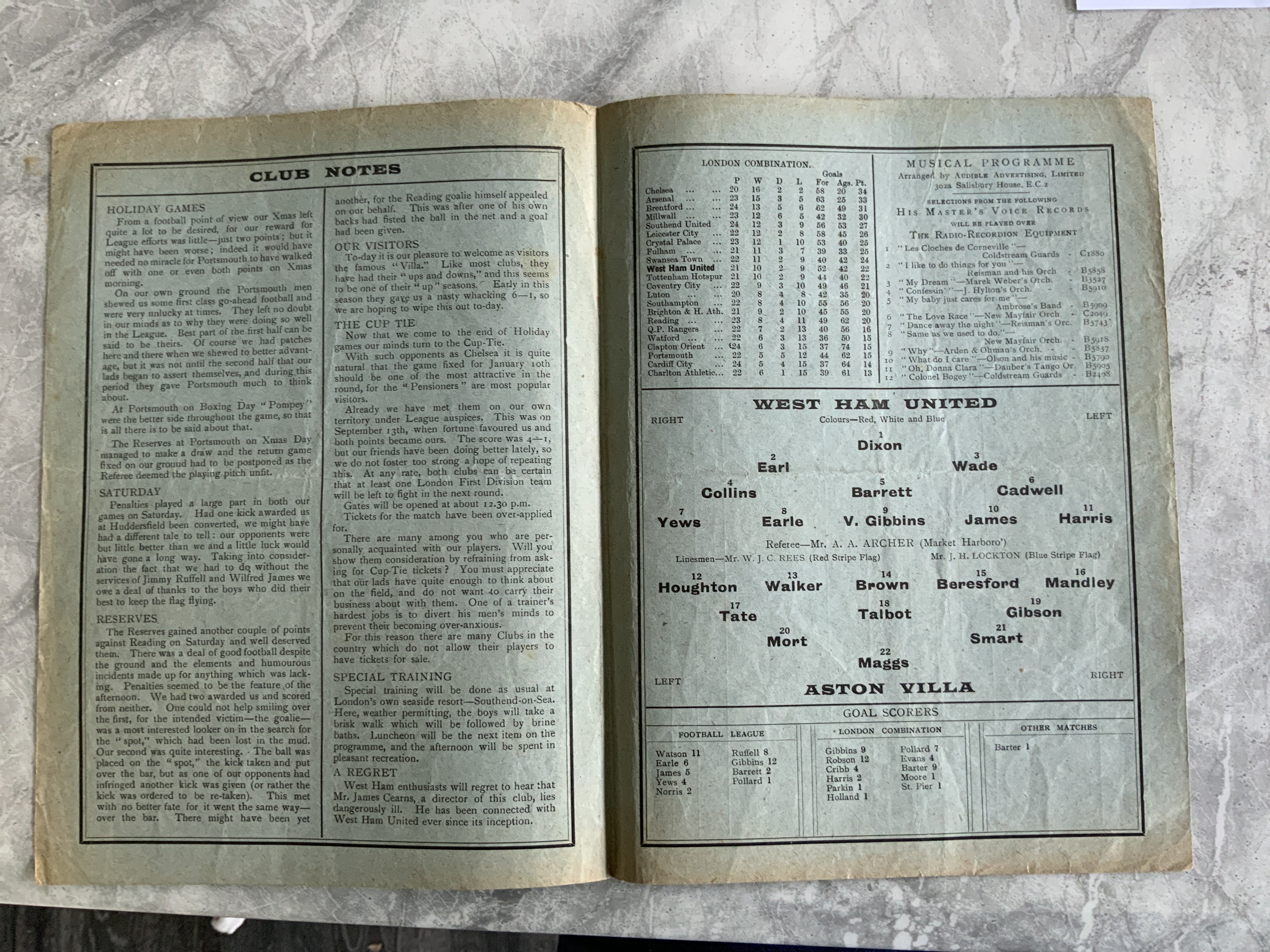 1930 - 1931 West Ham v Aston Villa Football Programme: Good condition division one programme with no team changes. Light fold.