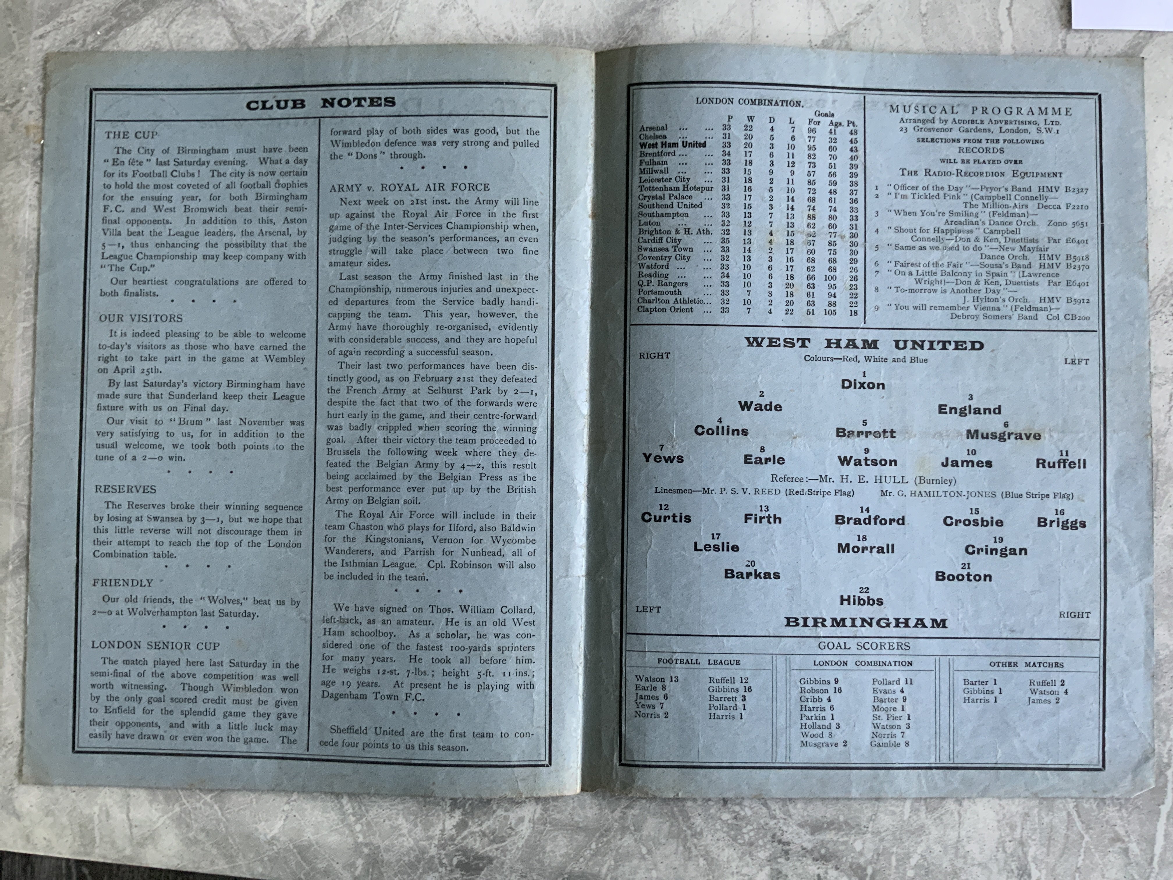 1930 - 1931 West Ham v Birmingham Football Programme: Very good condition division one programme with no team changes. Light fold.