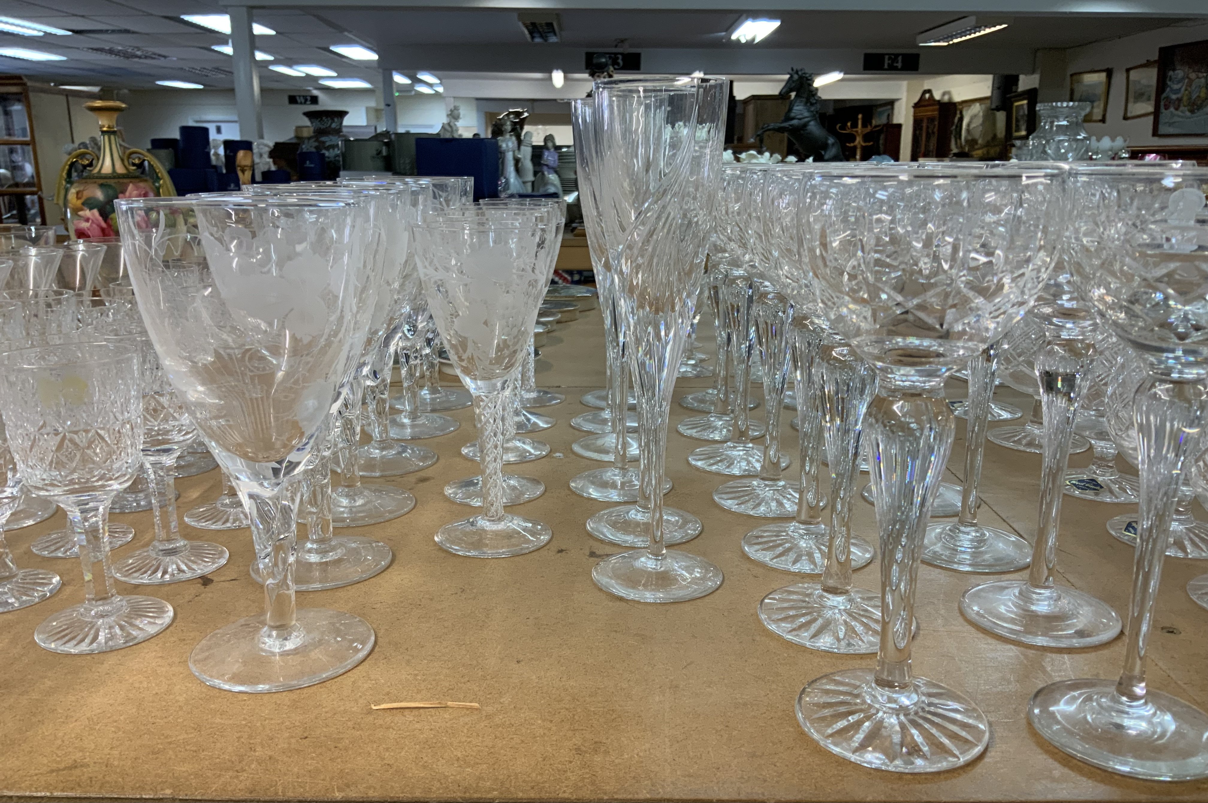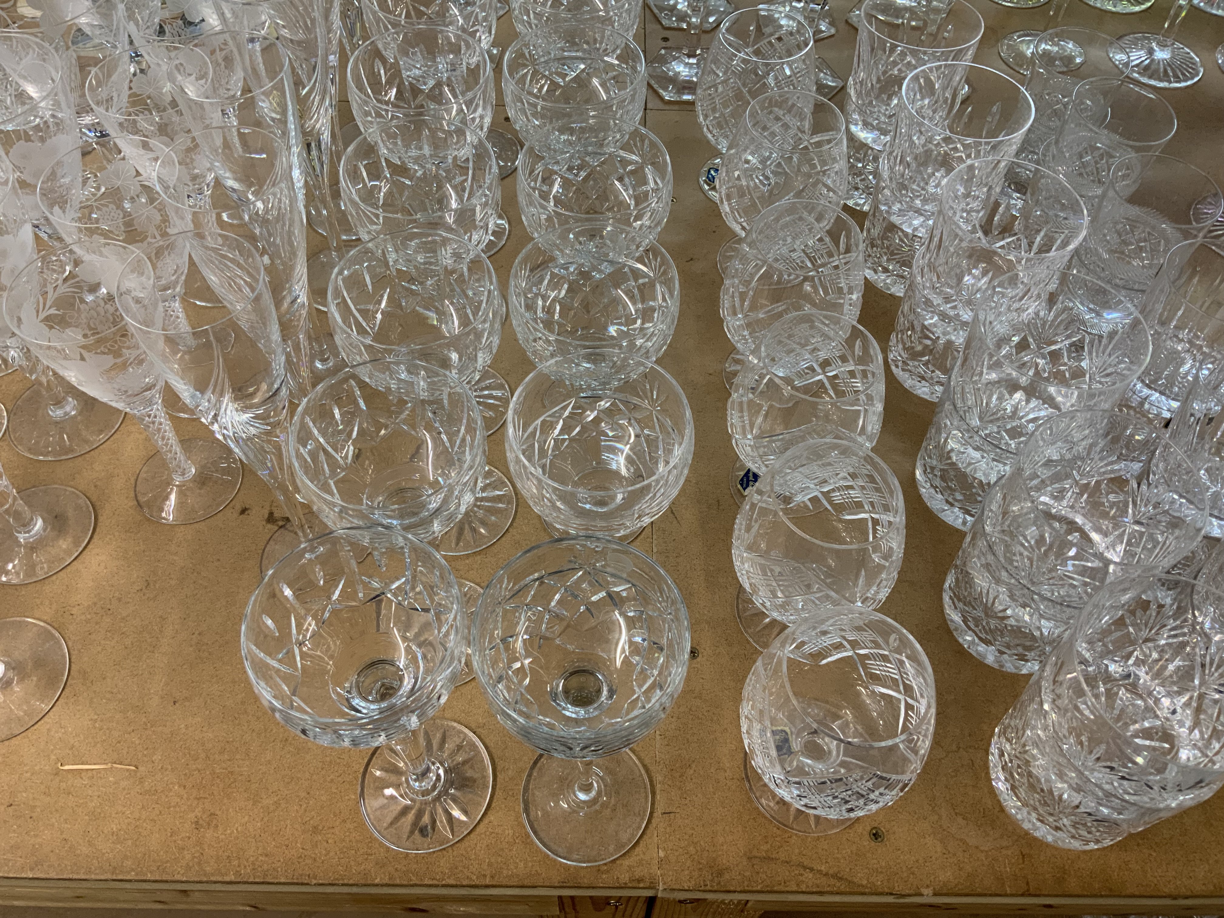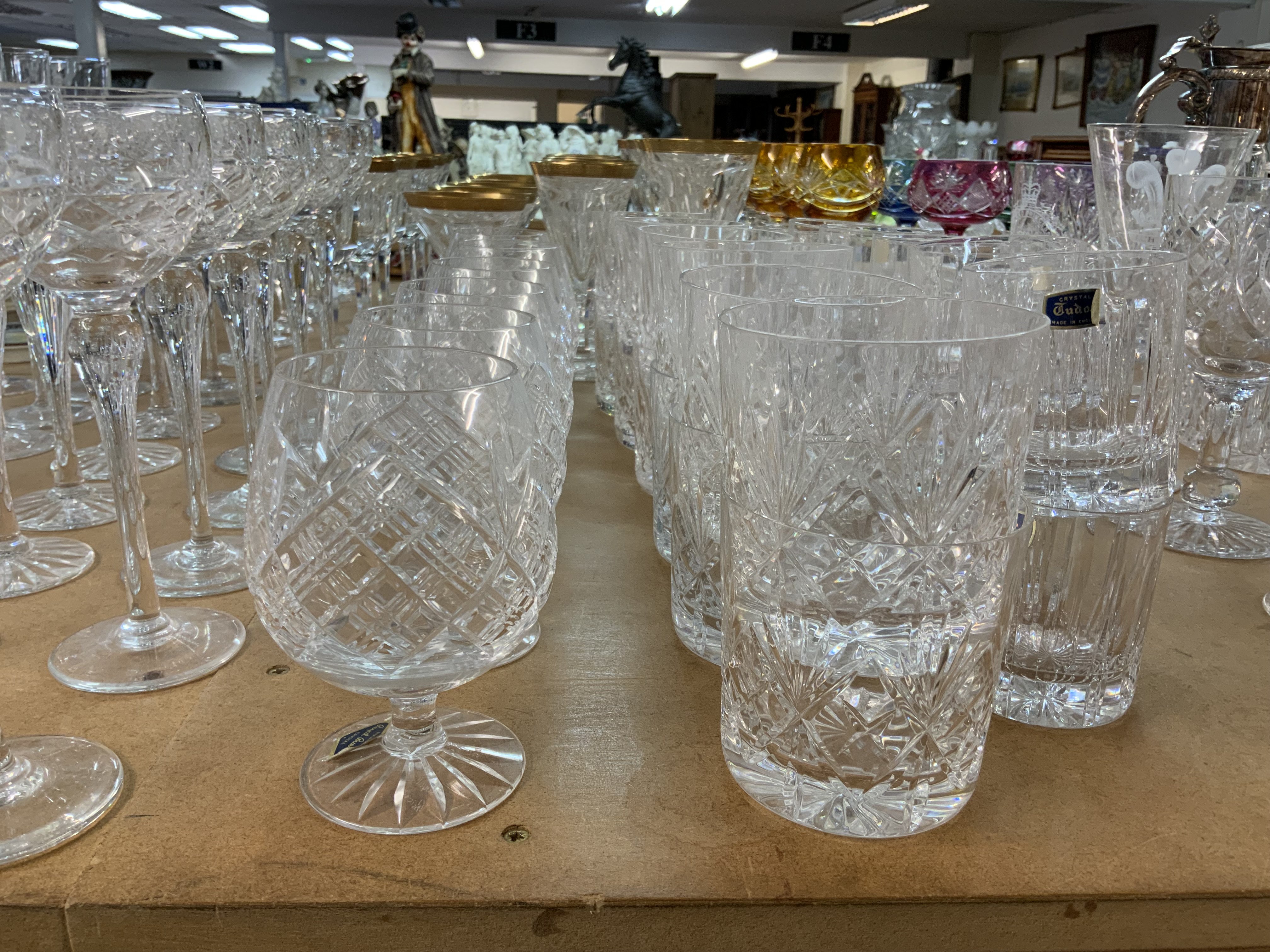 An extensive collection of good crystal glassware. To included Baccarat, Tudor, Webb, etc. 15 sets of 6 and 1 part set 5. (D - postage not avaliable for this lot)