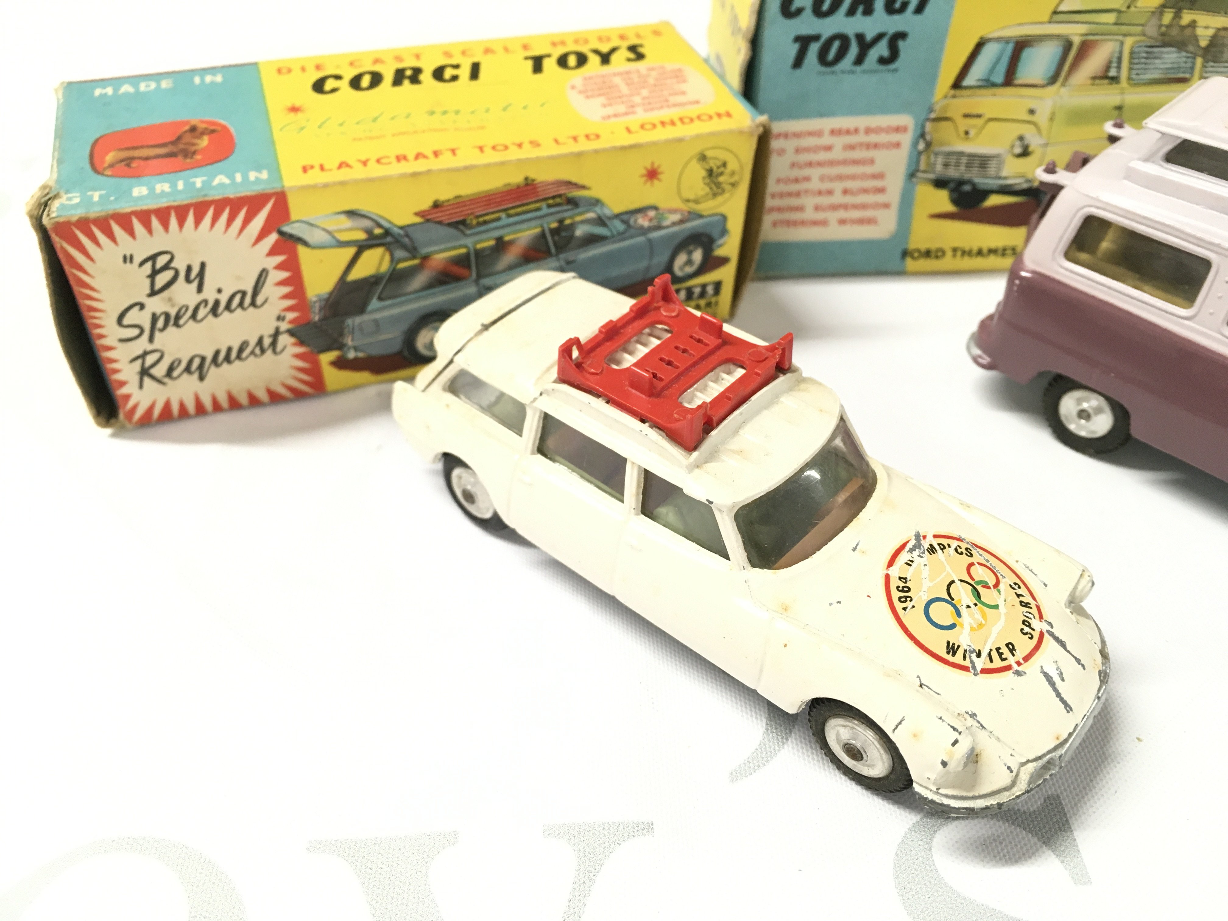 4 X Boxed Corgi Vehicles. A Citron Safari #475. A Ford Thames Caravan #426. A Hillman Imp #328. And A B.M.C. Mini Countryman #485.