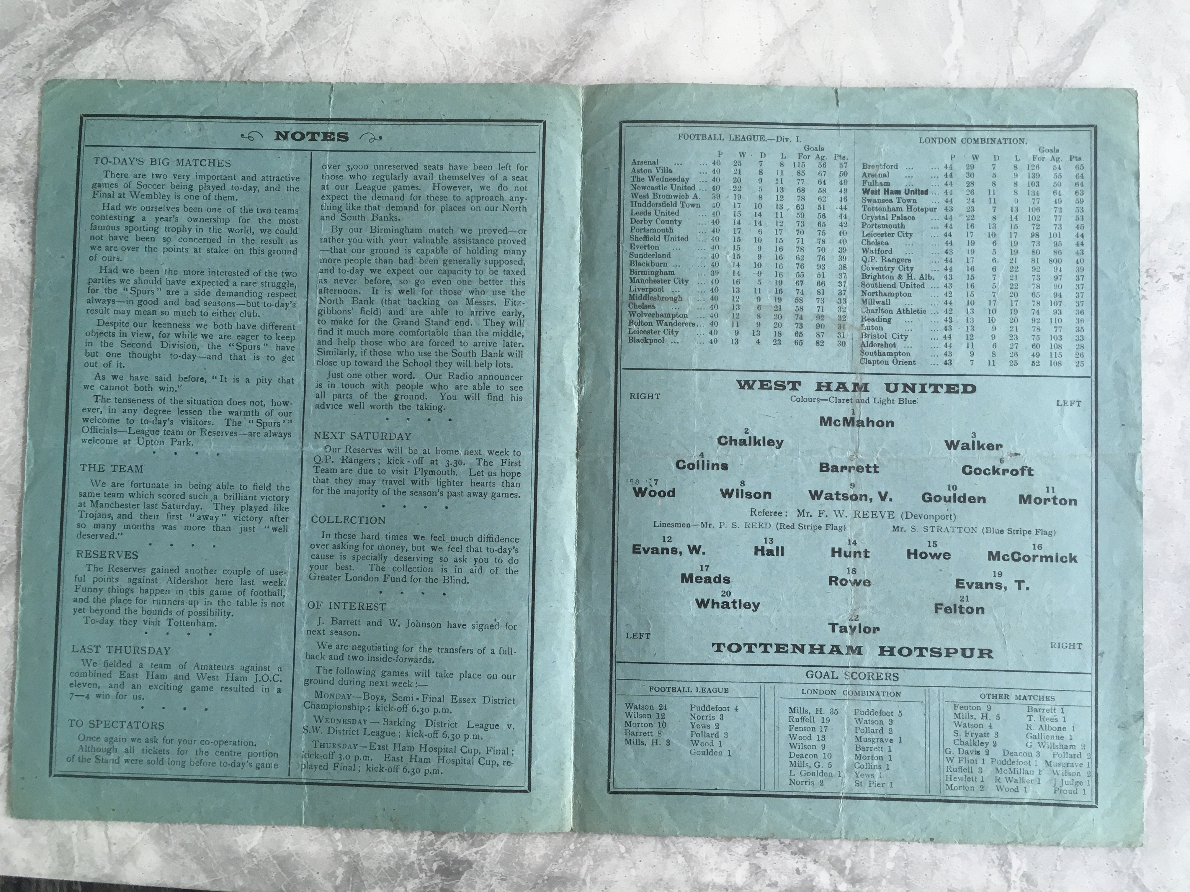 1932 - 1933 West Ham v Tottenham Football Programme: Very good condition division two programme with no team changes.