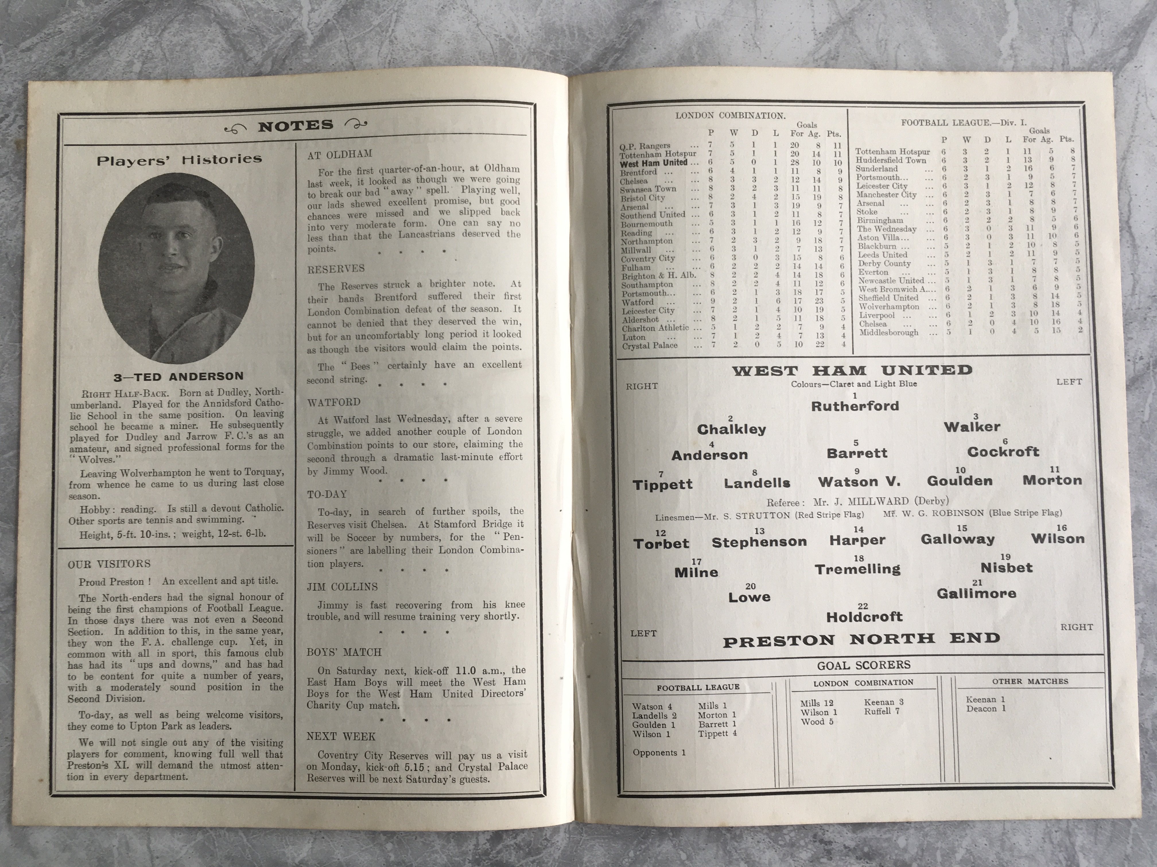 1933 - 1934 West Ham v Preston Football Programme: Excellent condition ex bound white division two programme with no team changes.