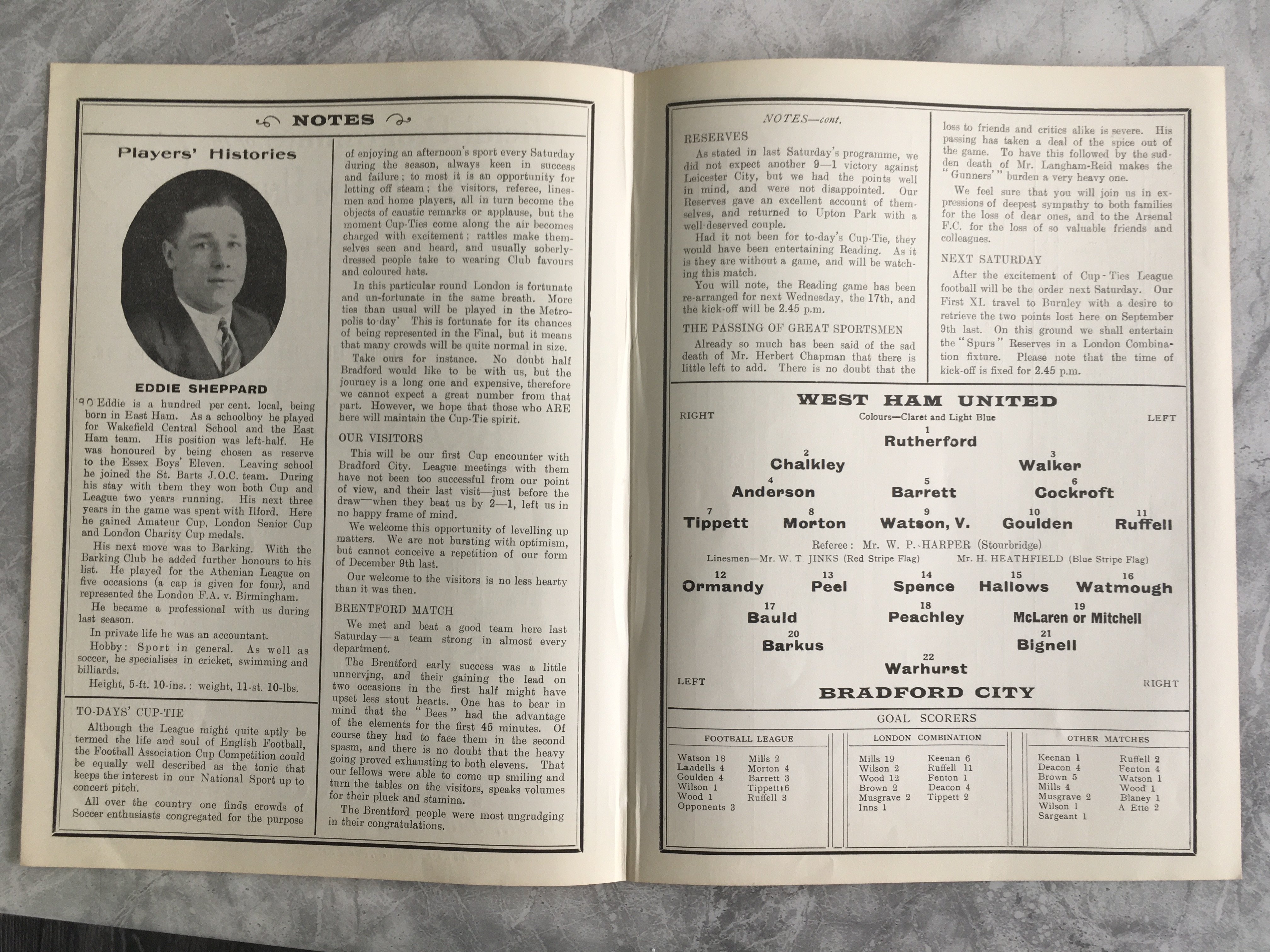 1933 - 1934 West Ham v Bradford City Football Programme: Excellent condition ex bound white FA Cup programme with no team changes.