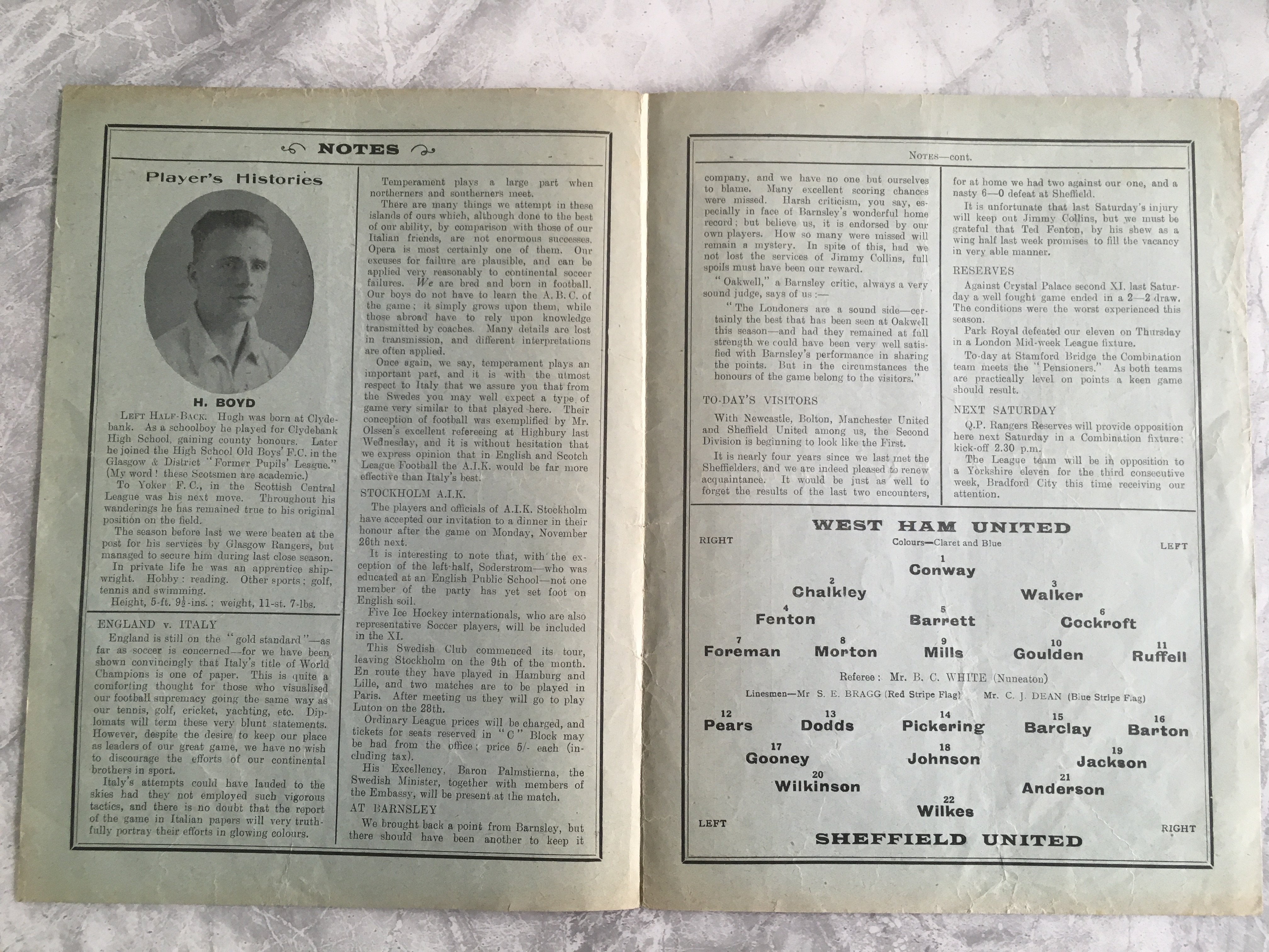 1934 - 1935 West Ham v Sheffield United Football Programme: Very good condition division two programme with no team changes.