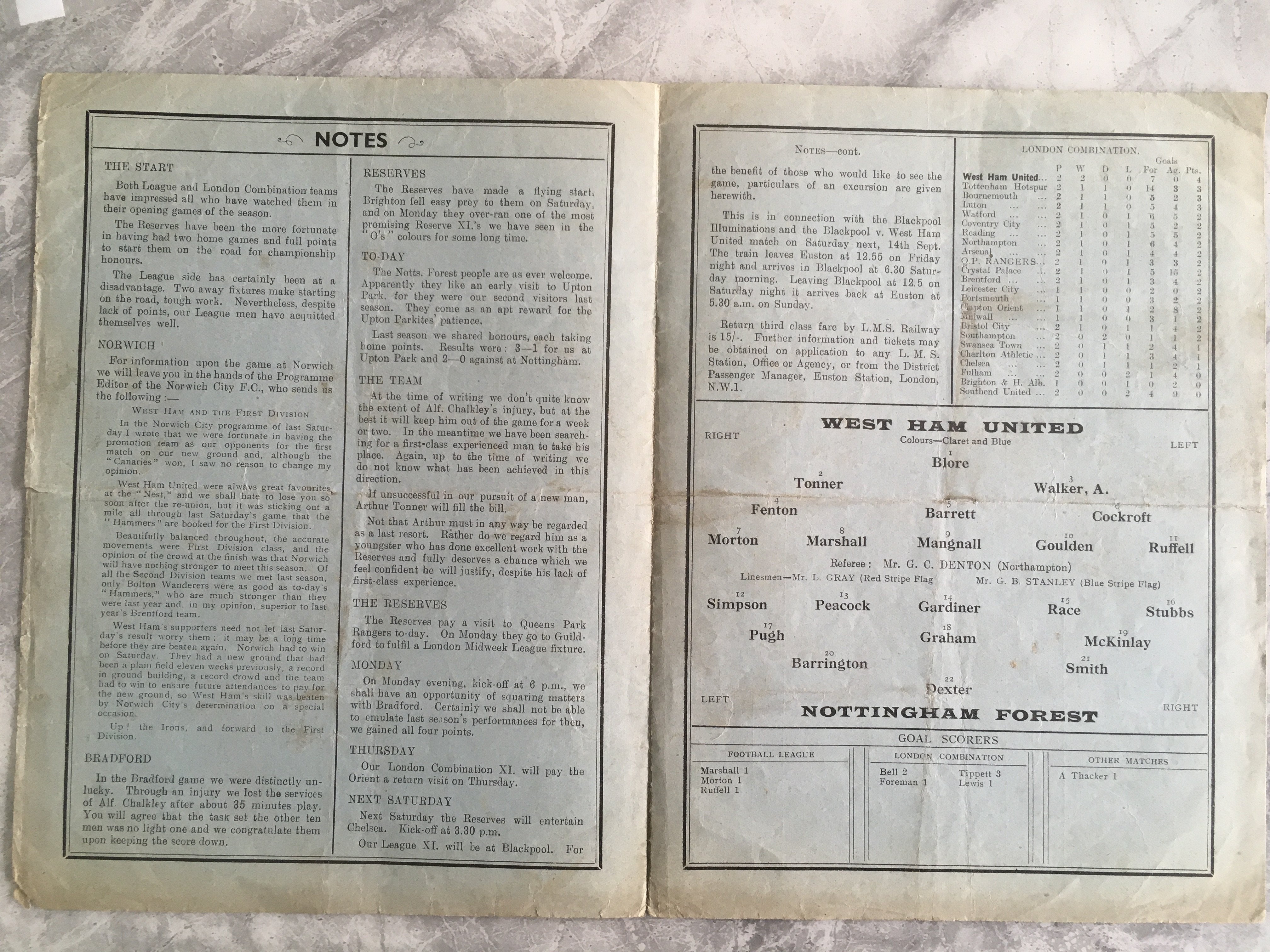 1935 - 1936 West Ham v Nottingham Forest Football Programme: Fair condition division two programme with no team changes. Tiny tear on folding.
