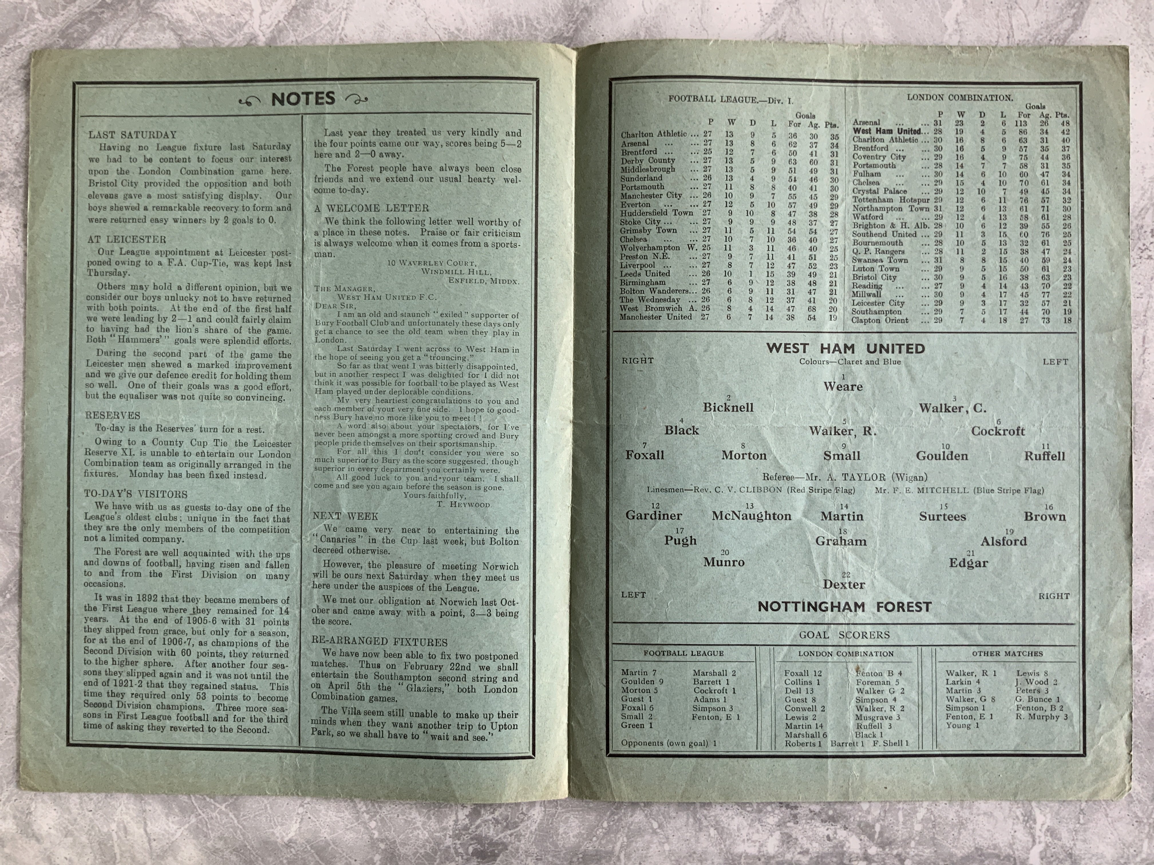 1936 - 1937 West Ham v Nottingham Forest Football Programme: Good condition division two programme with no team changes.