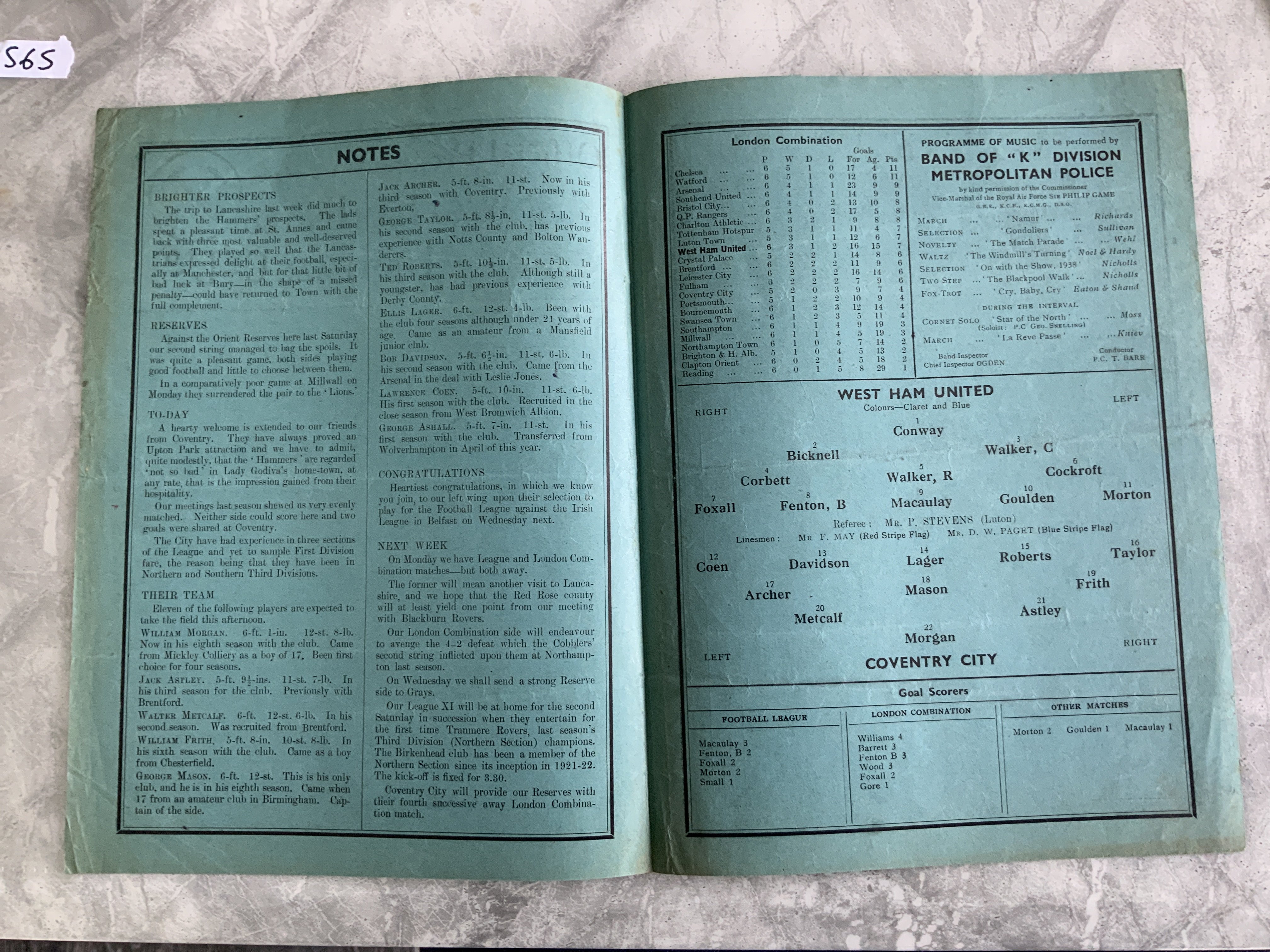 1938 - 1939 West Ham v Coventry City Football Programme: Good condition division two programme with no team changes.