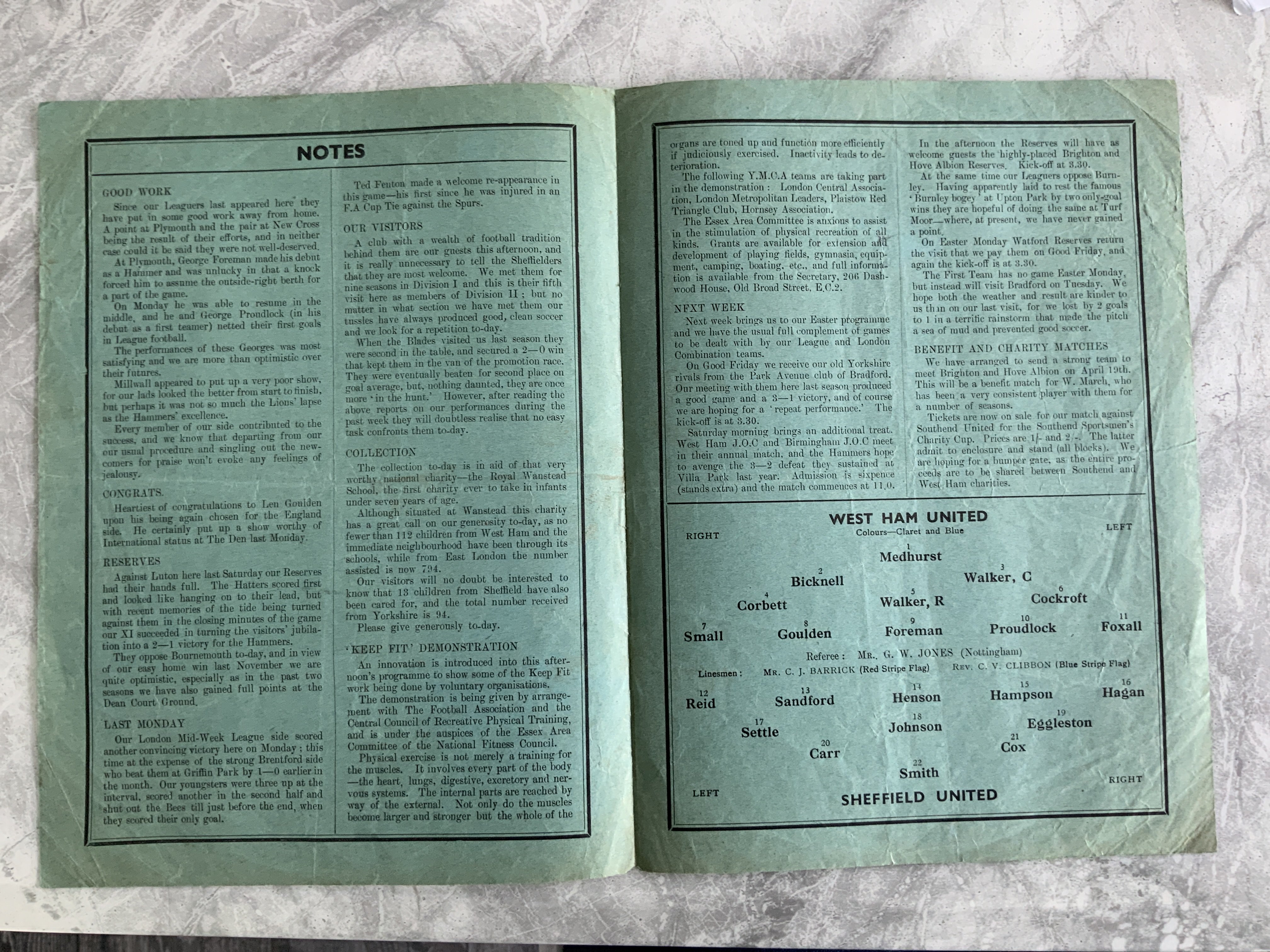 1938 - 1939 West Ham v Sheffield United Football Programme: Good condition division two programme with no team changes.