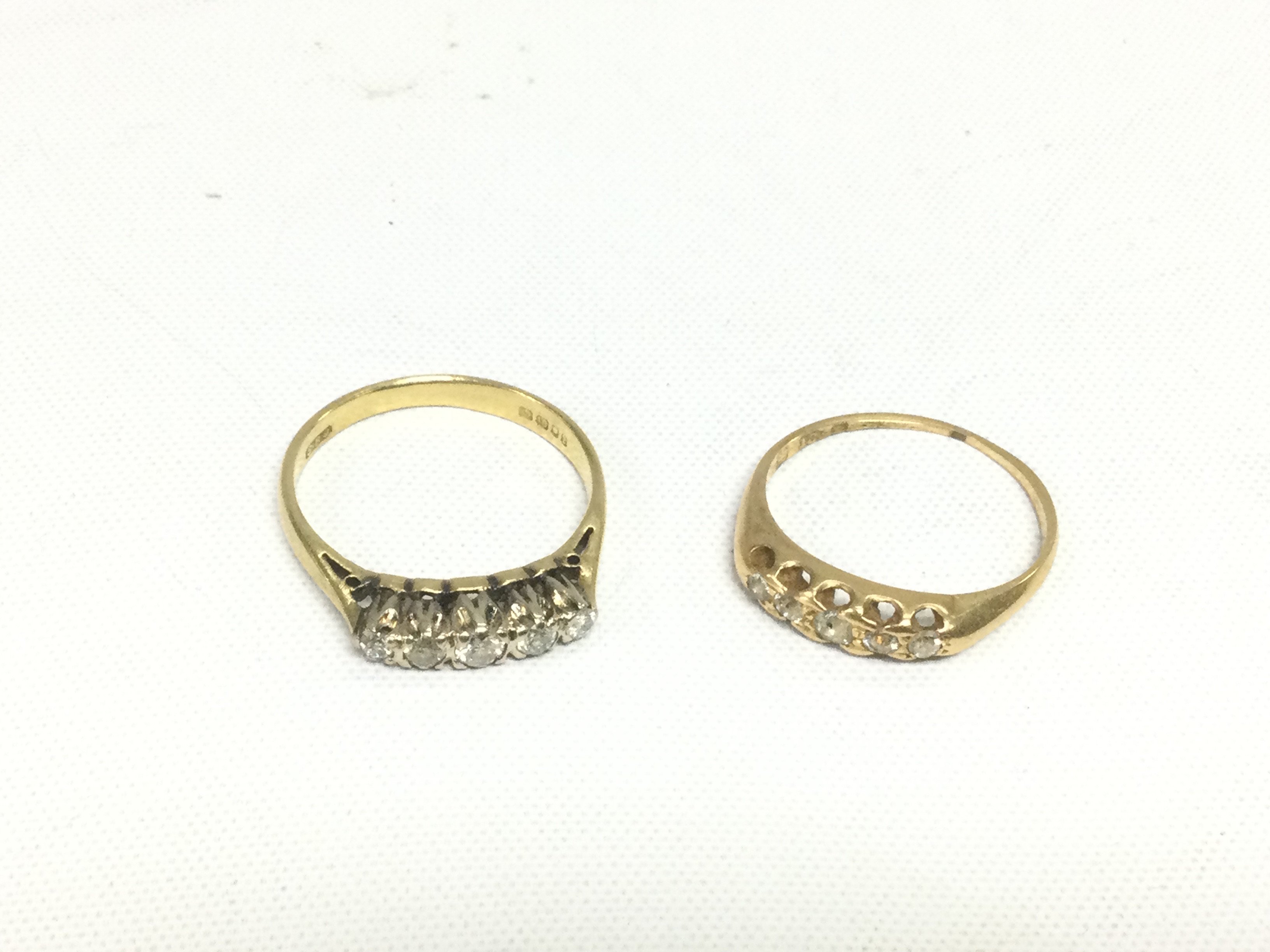 Two 18ct gold five stone diamond rings, approx total weight 5.4g and approx sizes M-N and P. Shipping category A.