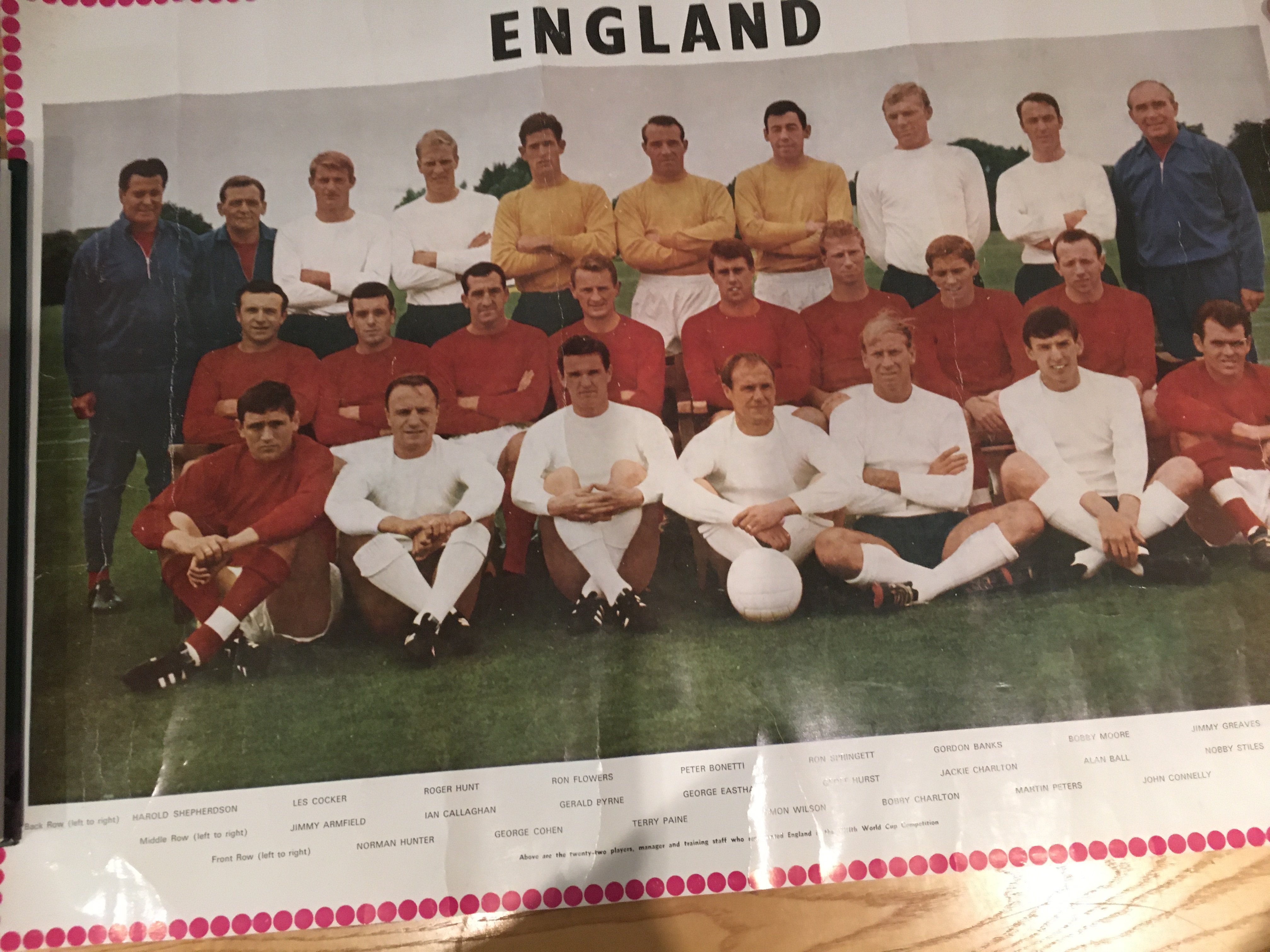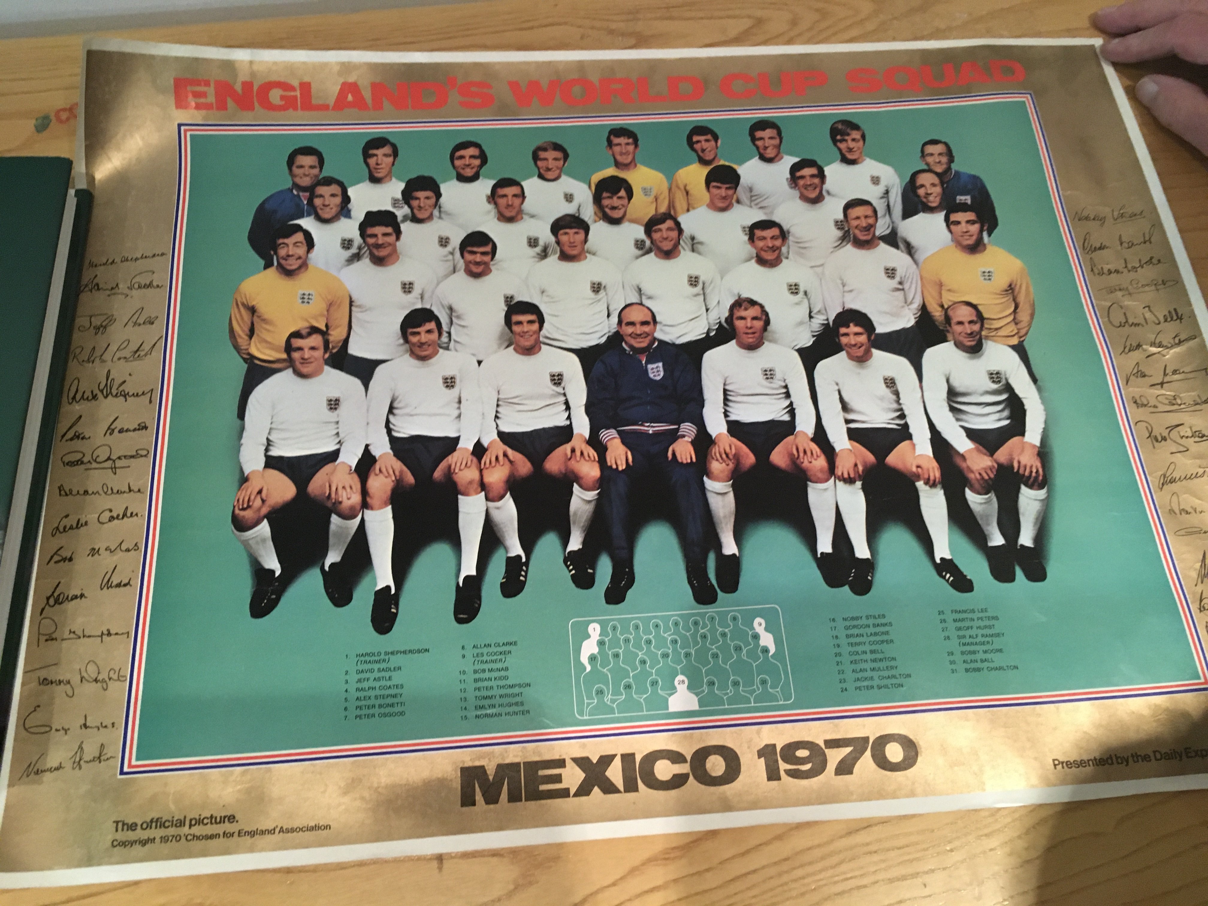 1978 England Squad Signed Football + More: White deflated panelled ball with around 18 autographs in green biro. Includes Shilton Latchford Brooking Coppell Keegan Neal and Kennedy. C/W original posters for World Cup England 1966 and 1970. Instructions to sell. (3)