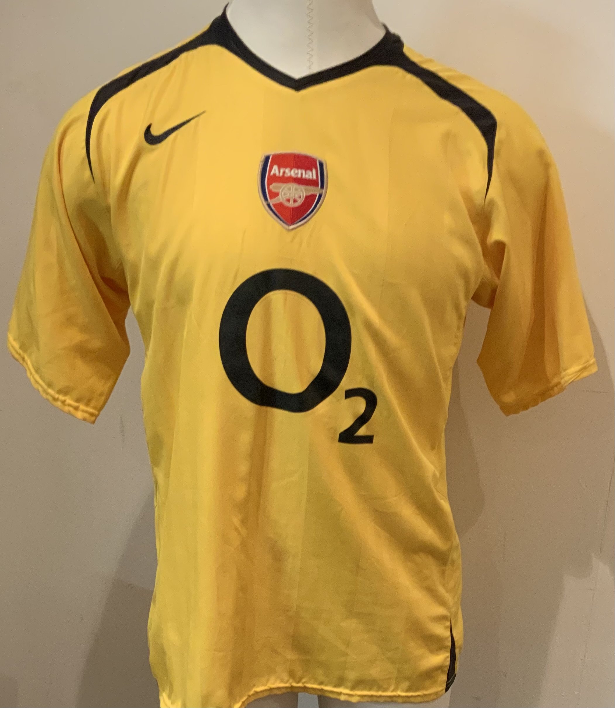 Arsenal 05 - 06 Away Football Shirt: Short sleeve yellow replica O2 in good condition. Size large. Some wear to number