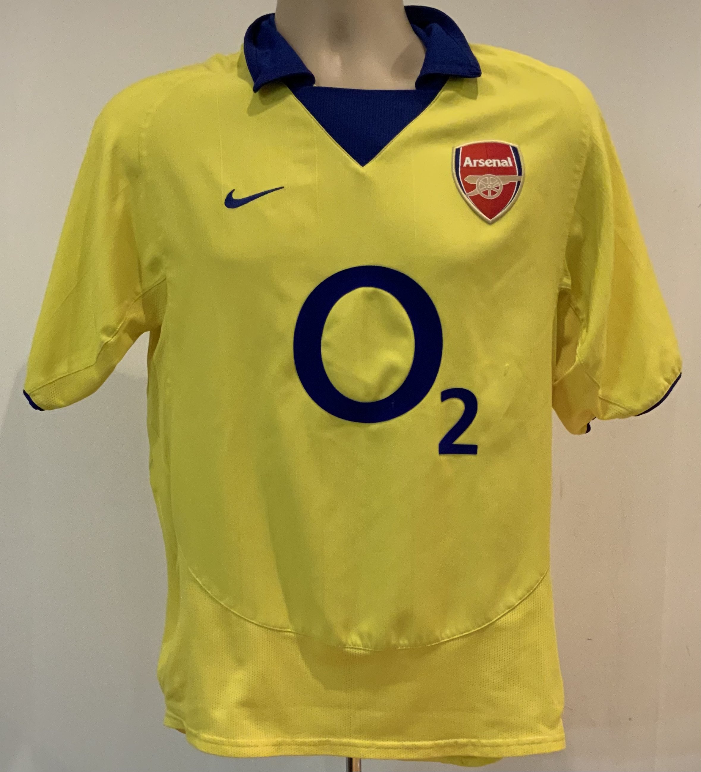 Arsenal 03 - 05 Away Football Shirt: Short sleeve yellow replica O2 in good condition. Size small. Henry 14 to rear.